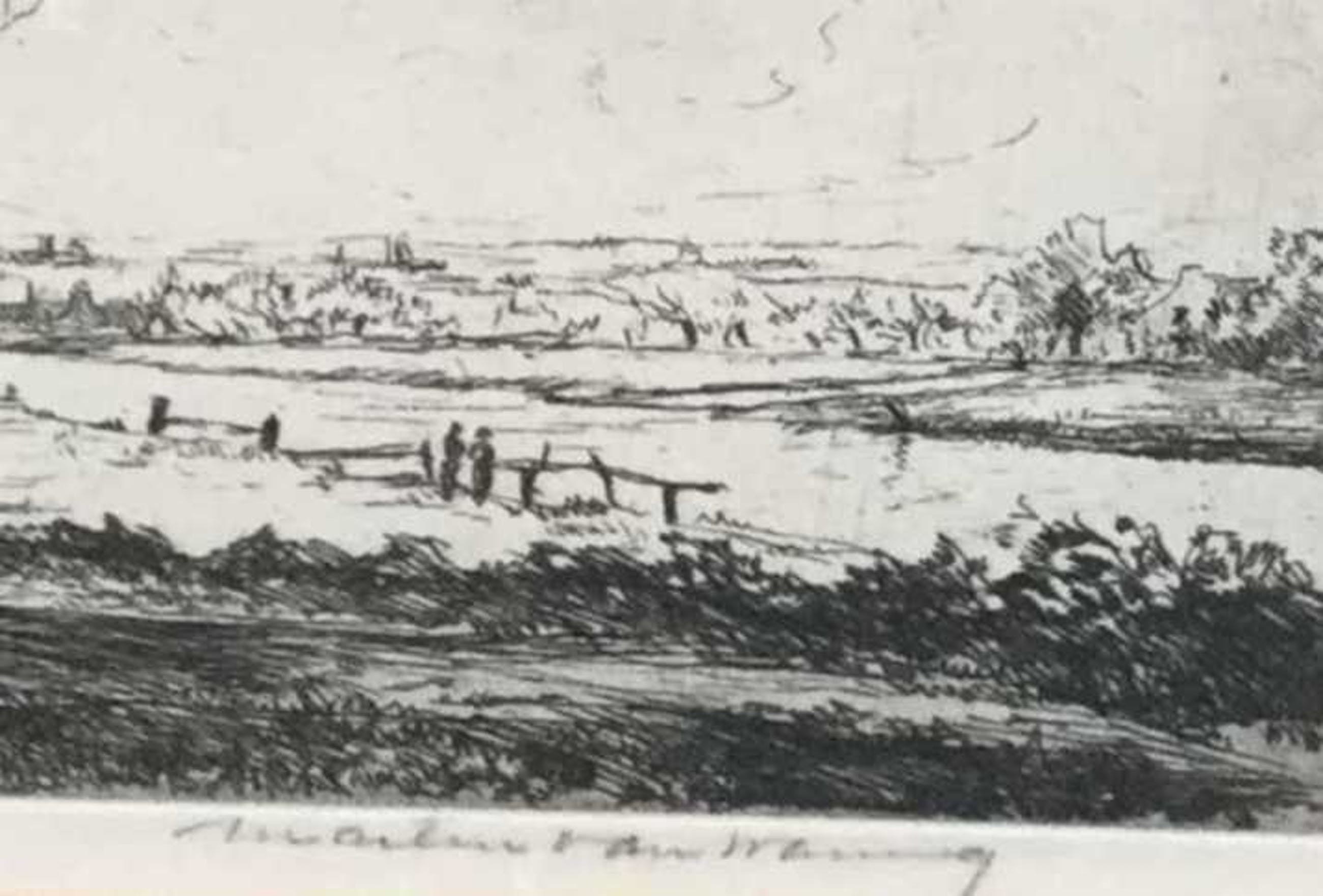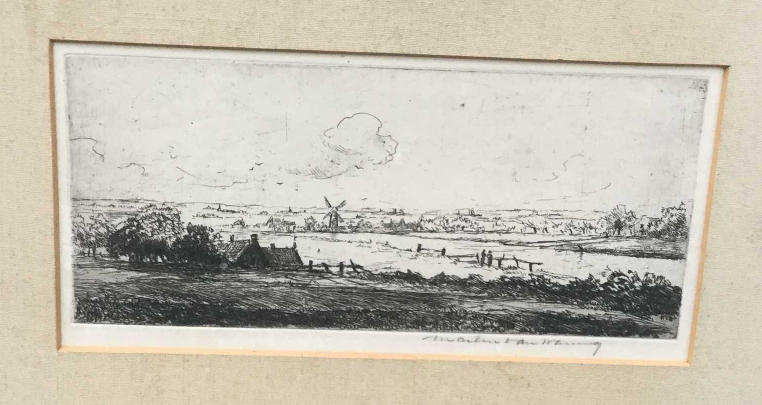 C4377-4, Martin van Waning waterlandschap ets, ro. gesigneerd beeldmaat 10 x 21 cm, lijstmaat 24 x 35 cm