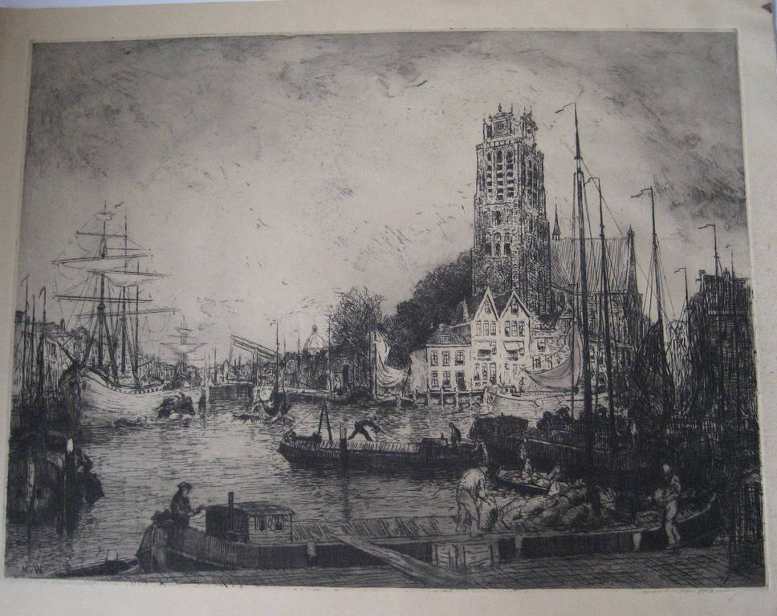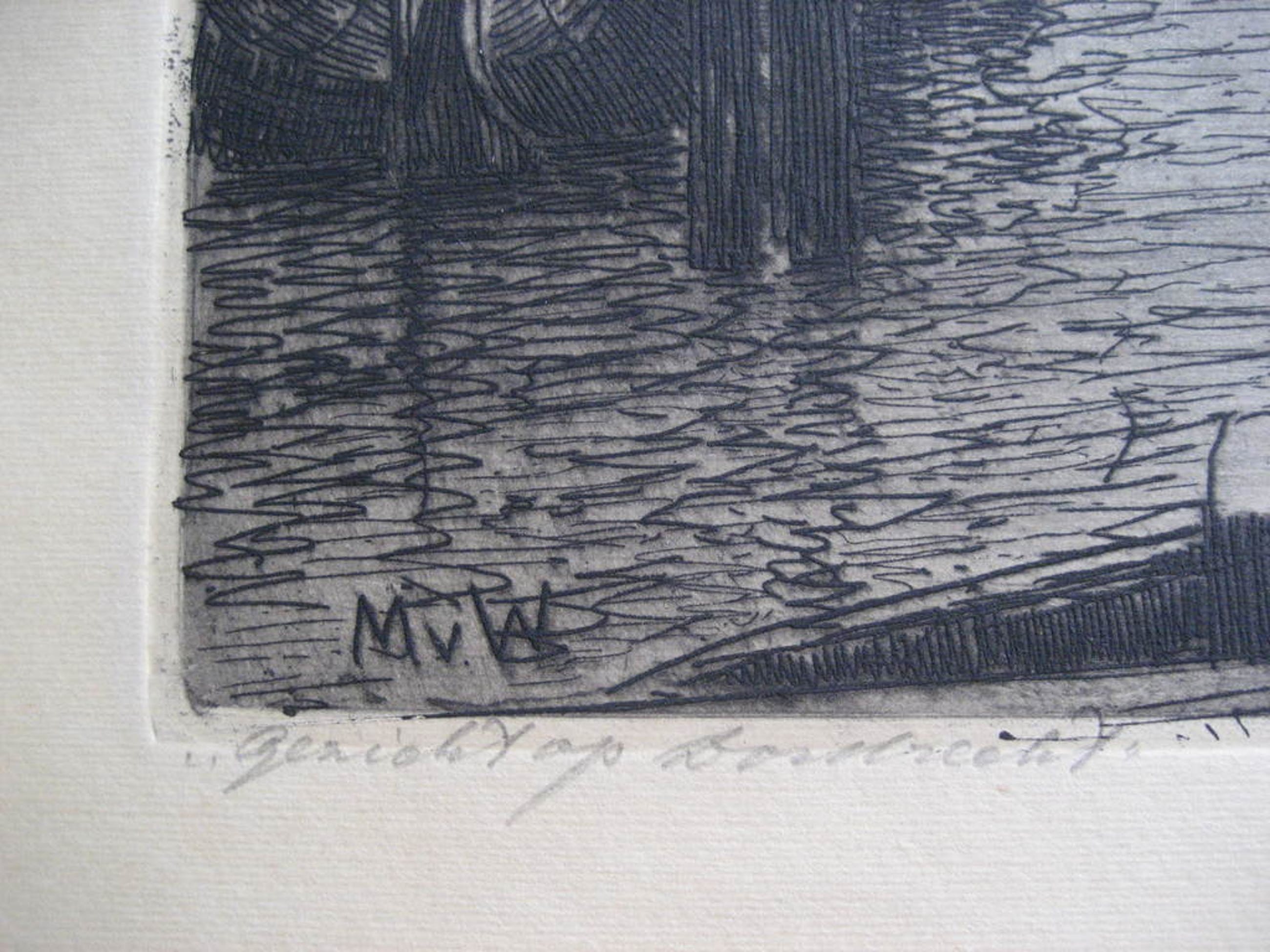 Gezicht op Dordrecht. Grote originele ets, hand gesigneerd. De ets heeft mooie brede randen .Afmetingen plaatrand: 55 x 65cm .