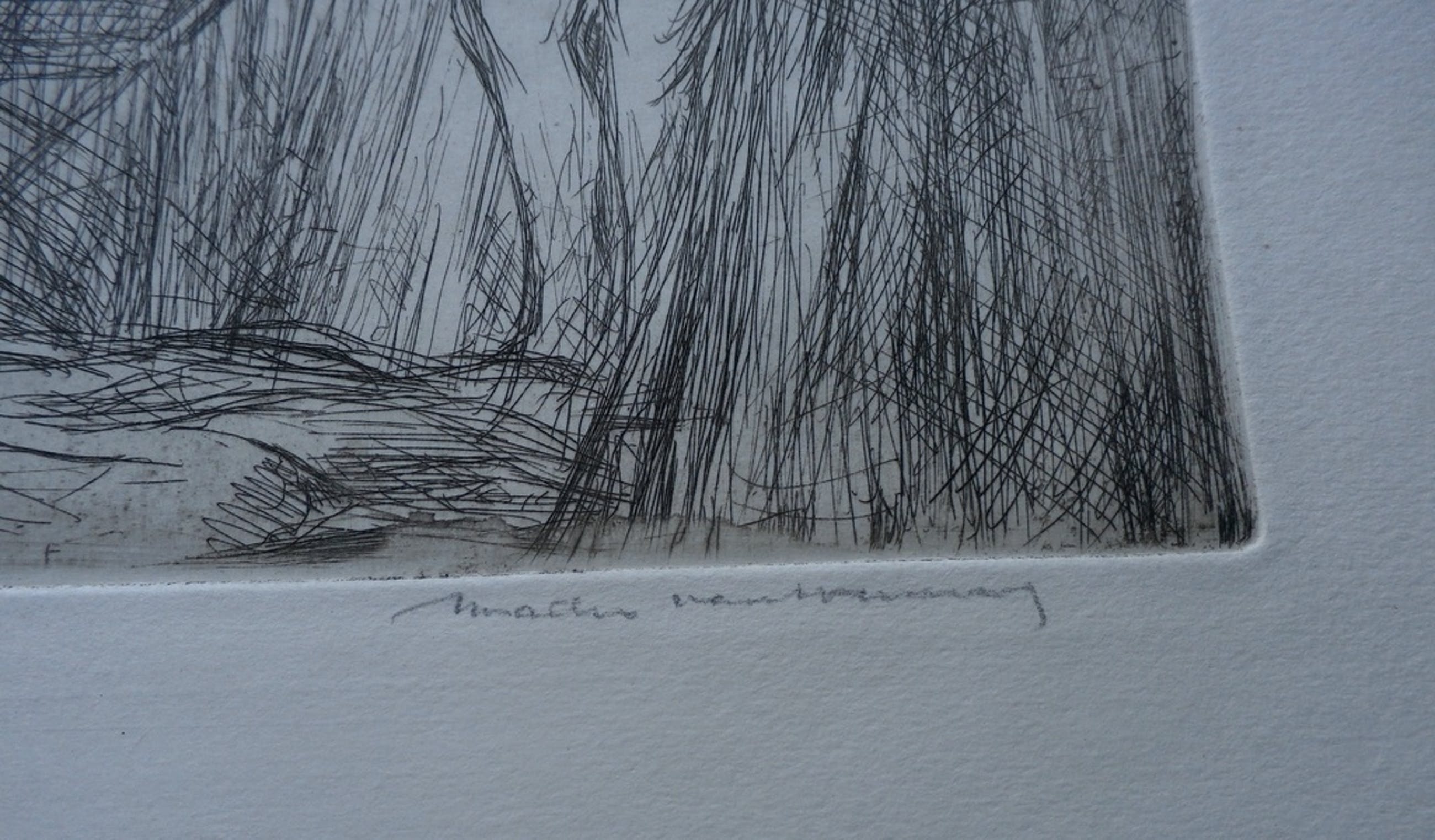 Ets van Martin van Waning. Het werk is rechtsonder, met potlood, gesigneerd door de kunstenaar. Afmetingen blad: H43 x b33cm. Afmetingen voorstelling: H22,4 x b15 cm. Conditie: in goede staat.