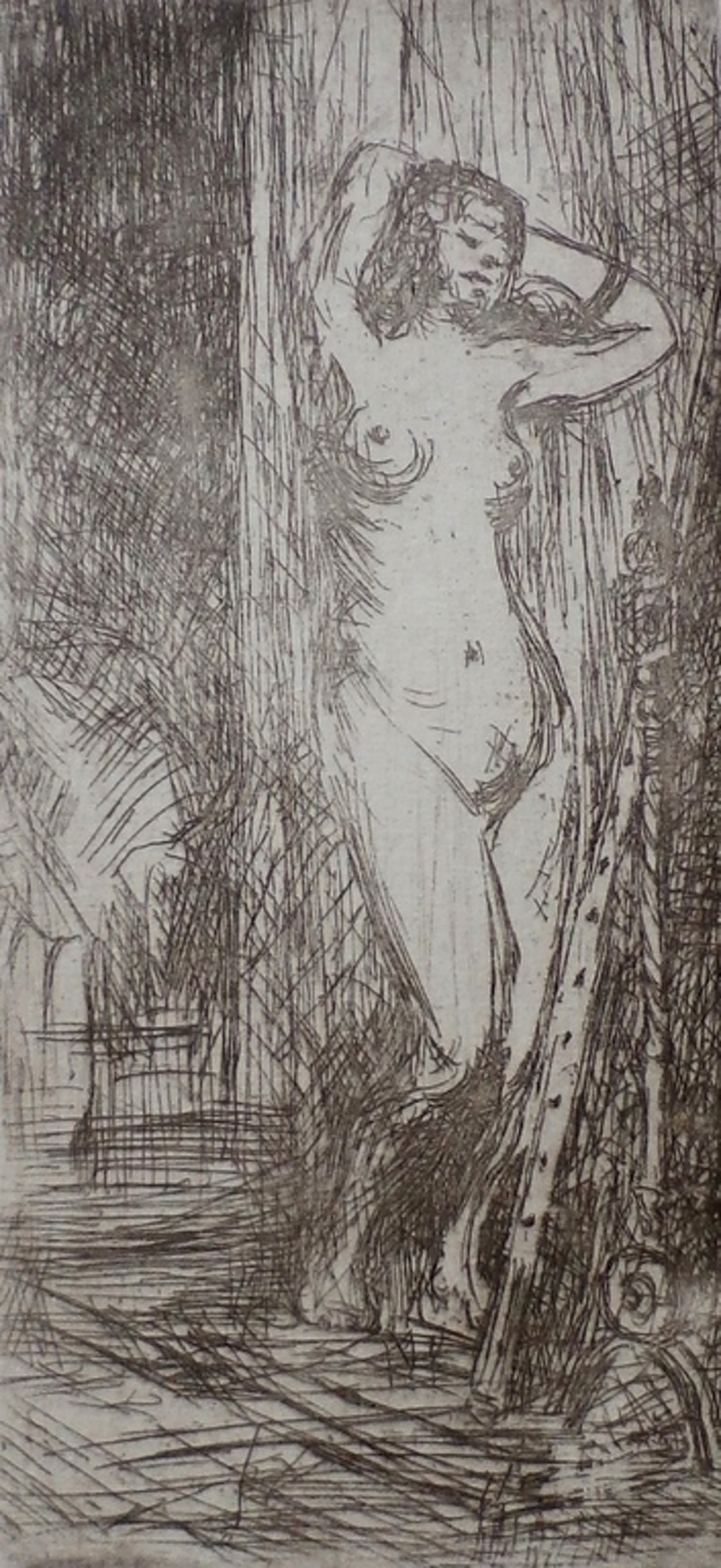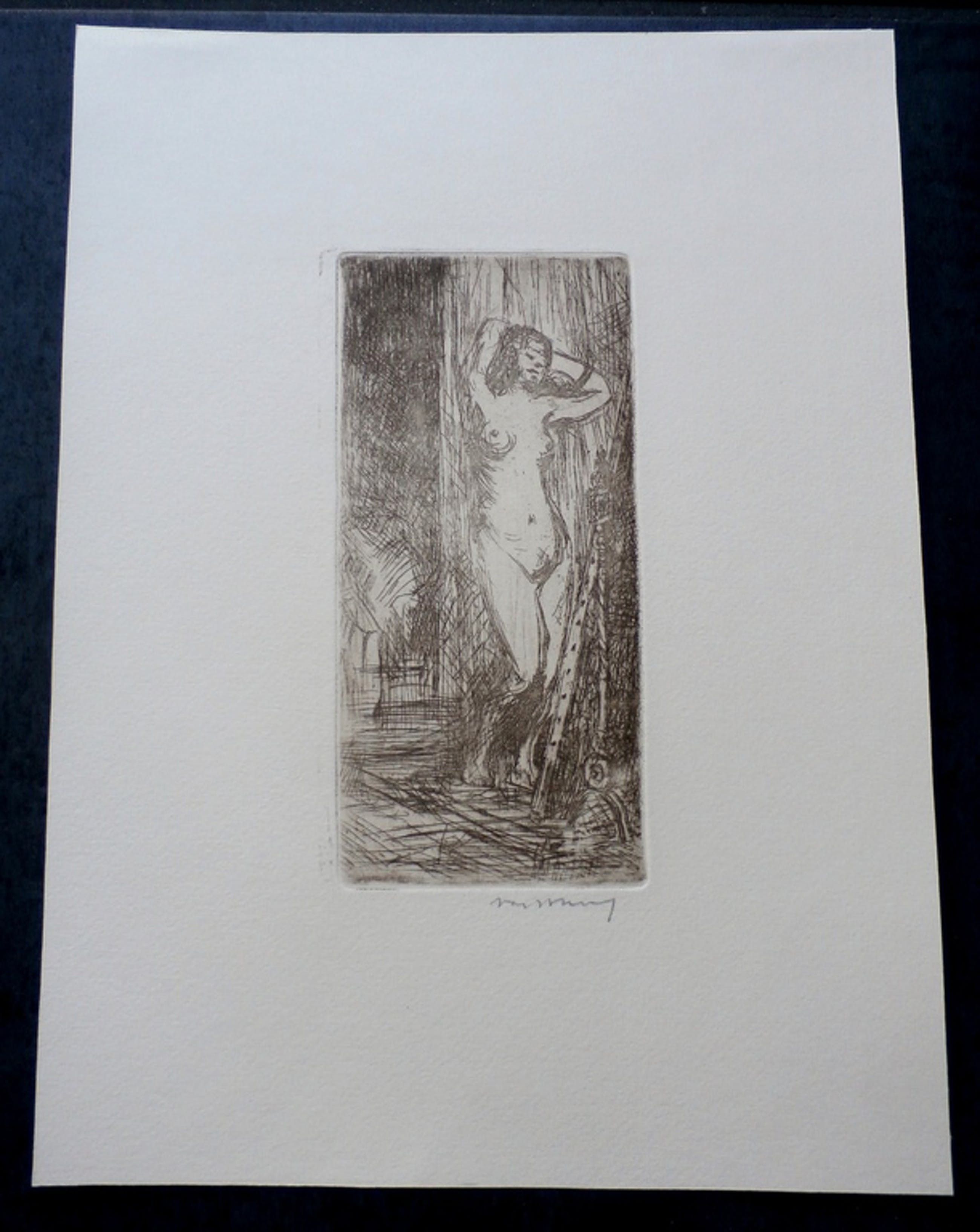 Ets van Martin van Waning. Titel: Naakt. Dit is weer eens iets anders dan de dorps- en stadsgezichten. Het werk is rechtsonder, met potlood, gesigneerd door de kunstenaar. Afmetingen blad: H43 x b33cm. Afmetingen voorstelling: H22,4 x b15 cm. Conditie: in goede staat. De authenciteit van het, aangeboden, werk wordt voor 100% gegarandeerd. Een certificaat van echtheid kan, op aanvraag, worden meegestuurd.