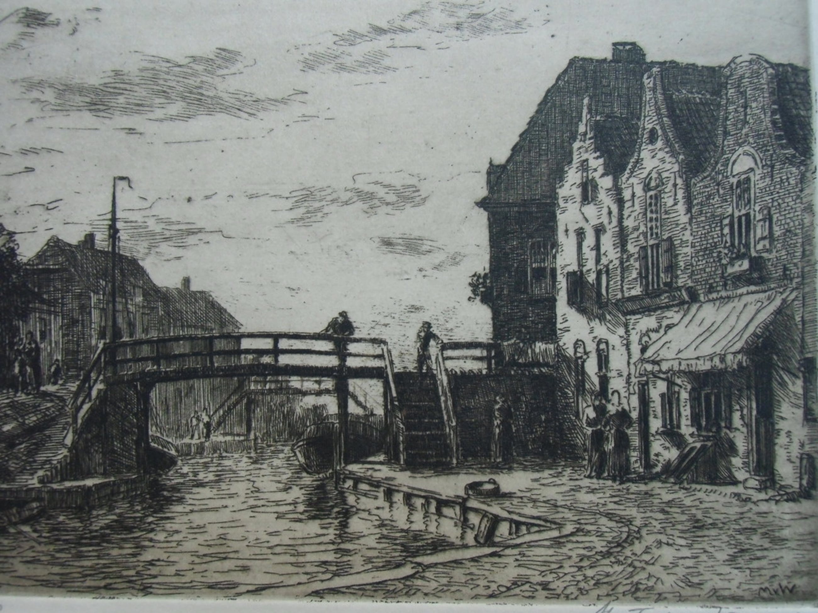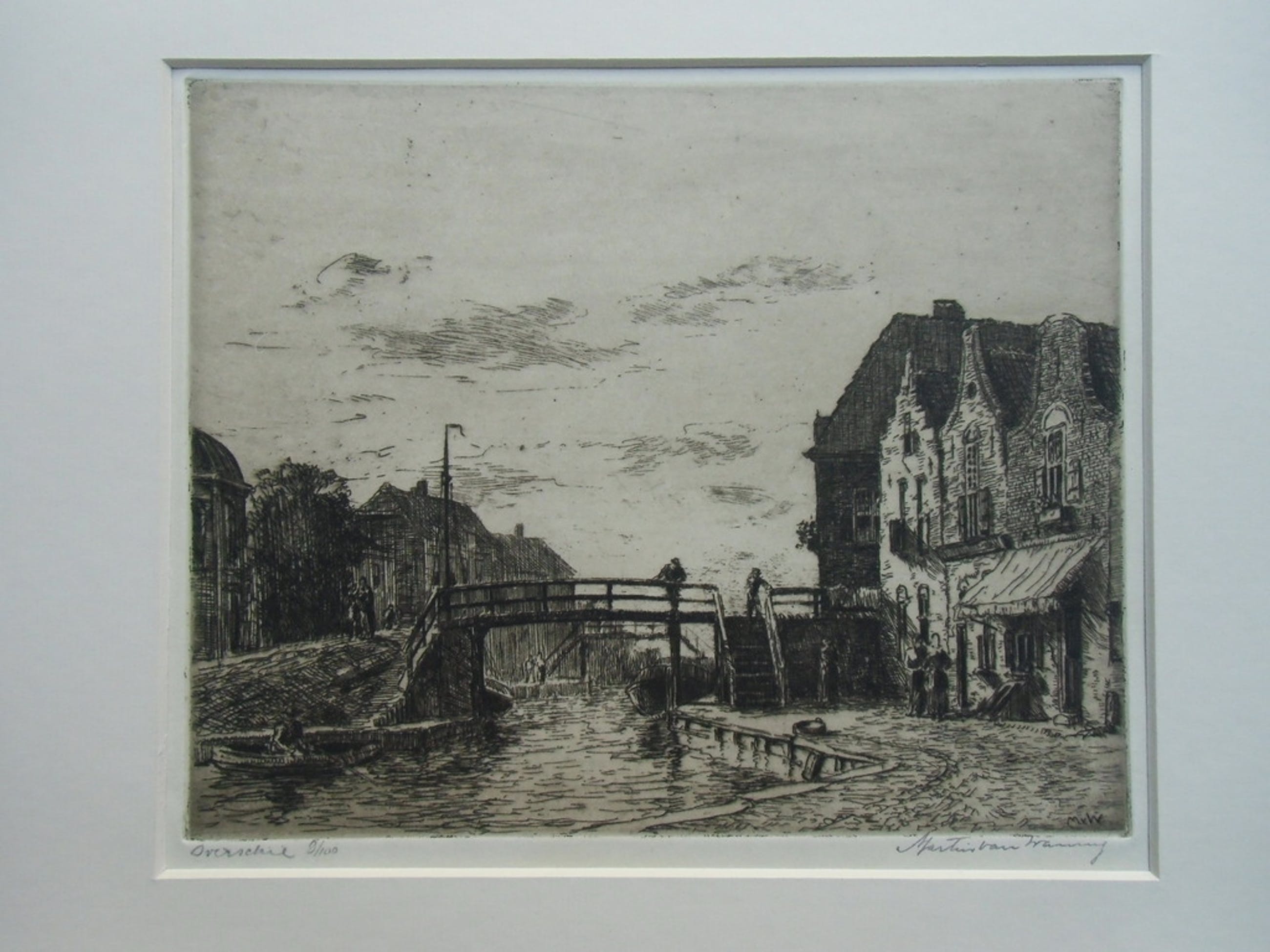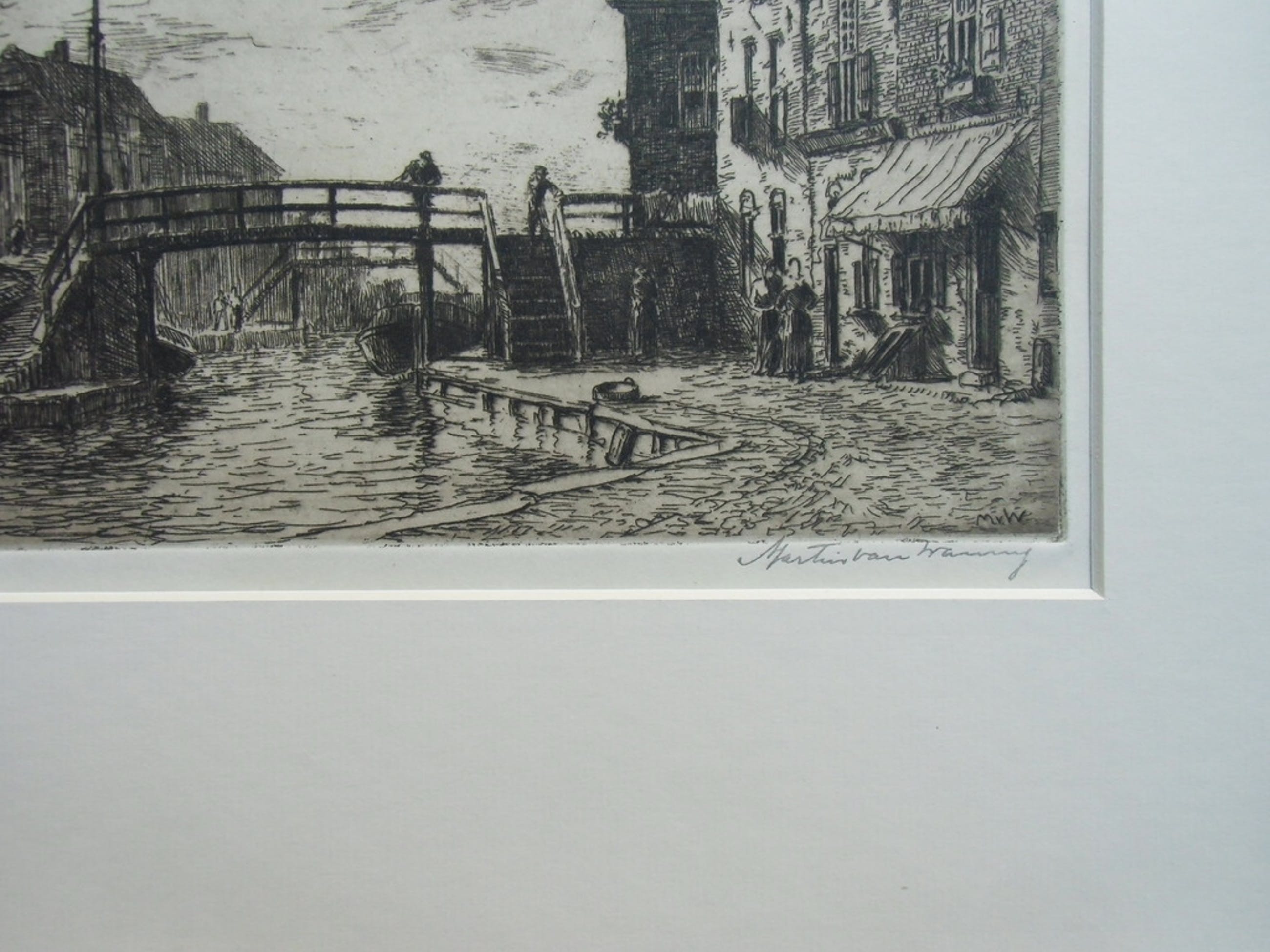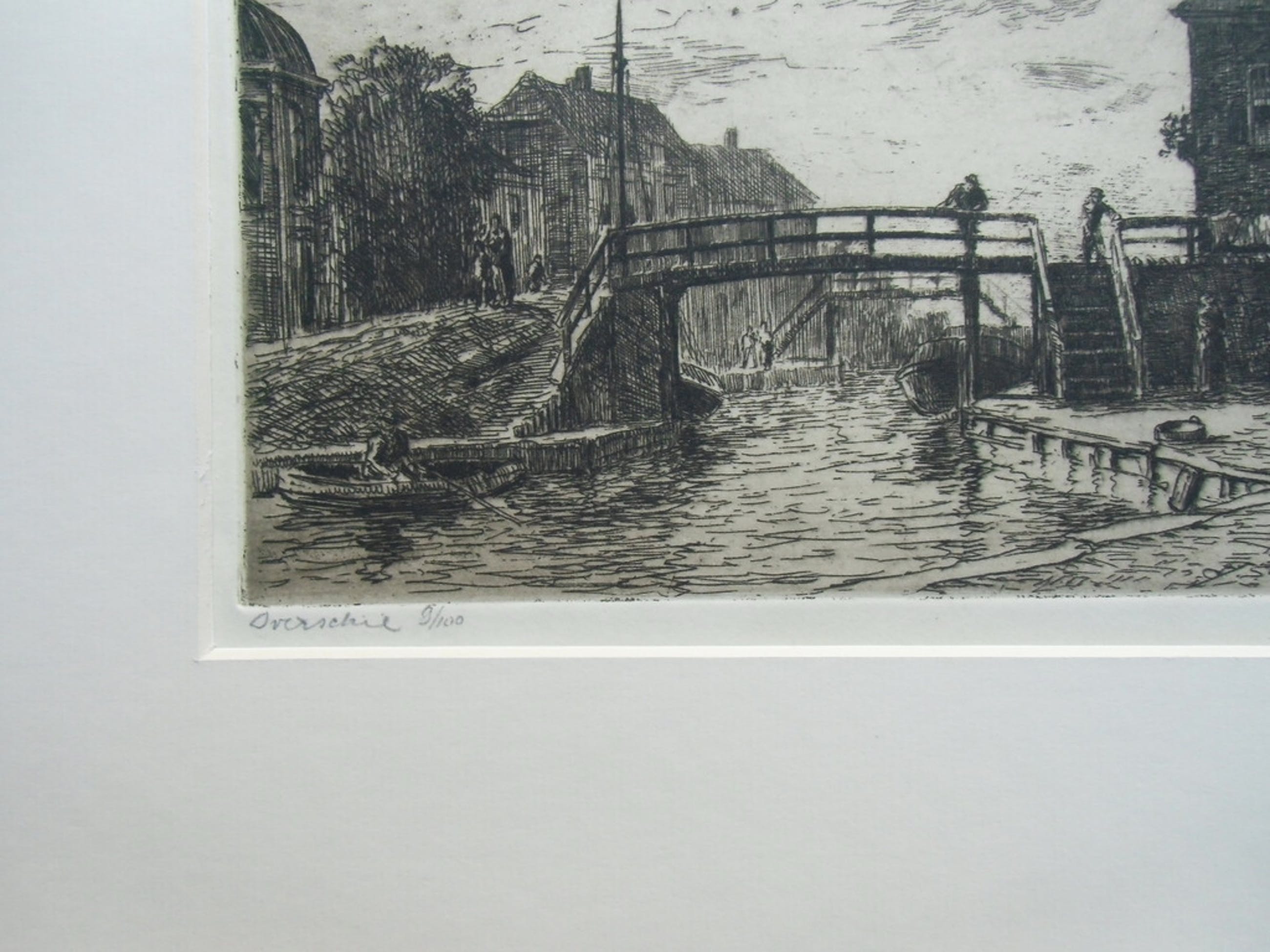 Deze ets met plaattoon op etspapier heeft een beeldformaat van 20 x 24.5 cm en is in uitstekende staat. Gesigneerd en betiteld met potlood. Oplage 9/100. Opgenomen in passepartout met achtervel.
