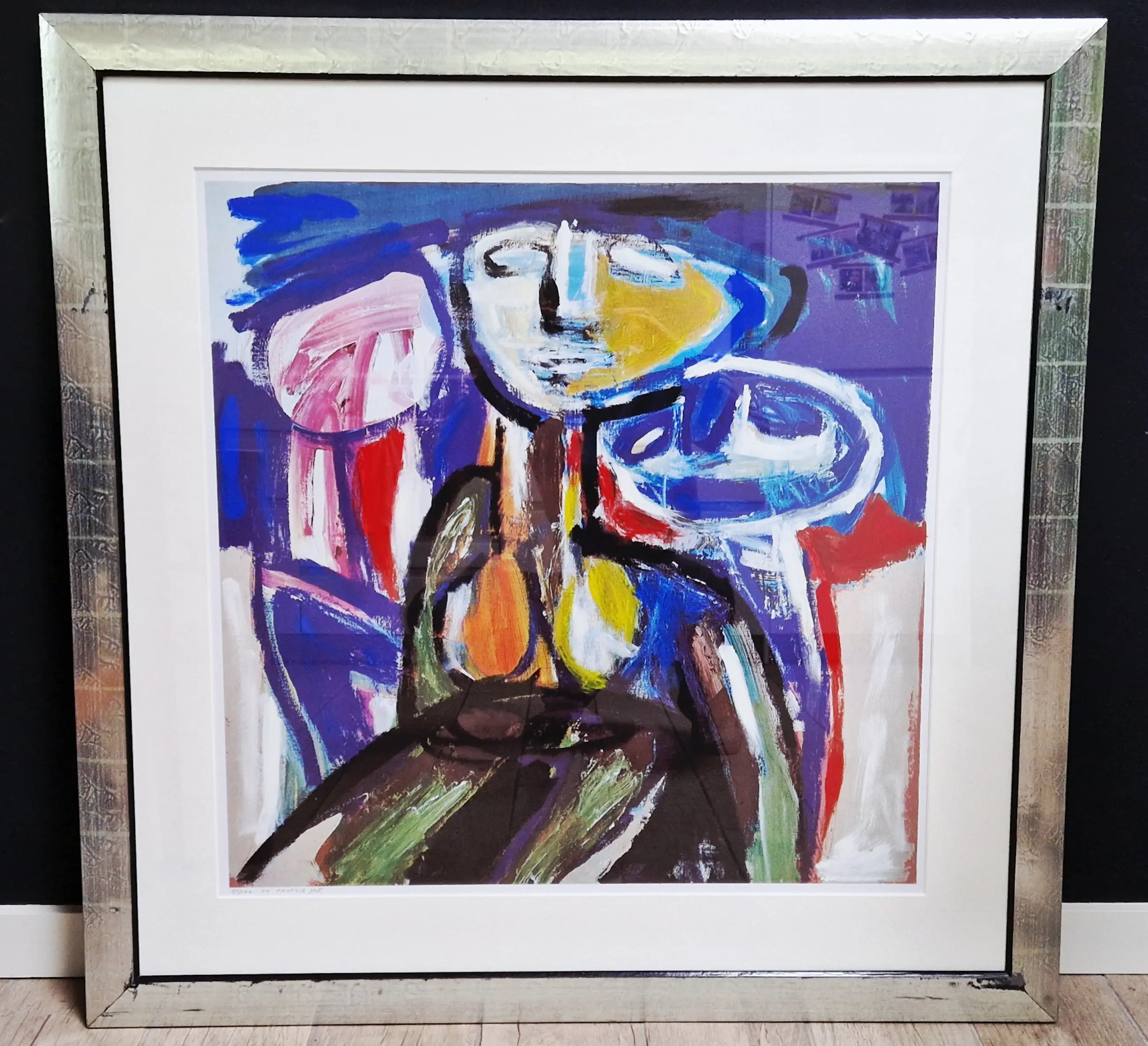 Fraaie en bijzonder grote zeefdruk (1 van de 5 bestaande) van de Nederlandse Cobra-kunstenaar Martin van Wordragen. Afmetingen 100x100, 73x73. Op gesatineerd papier.