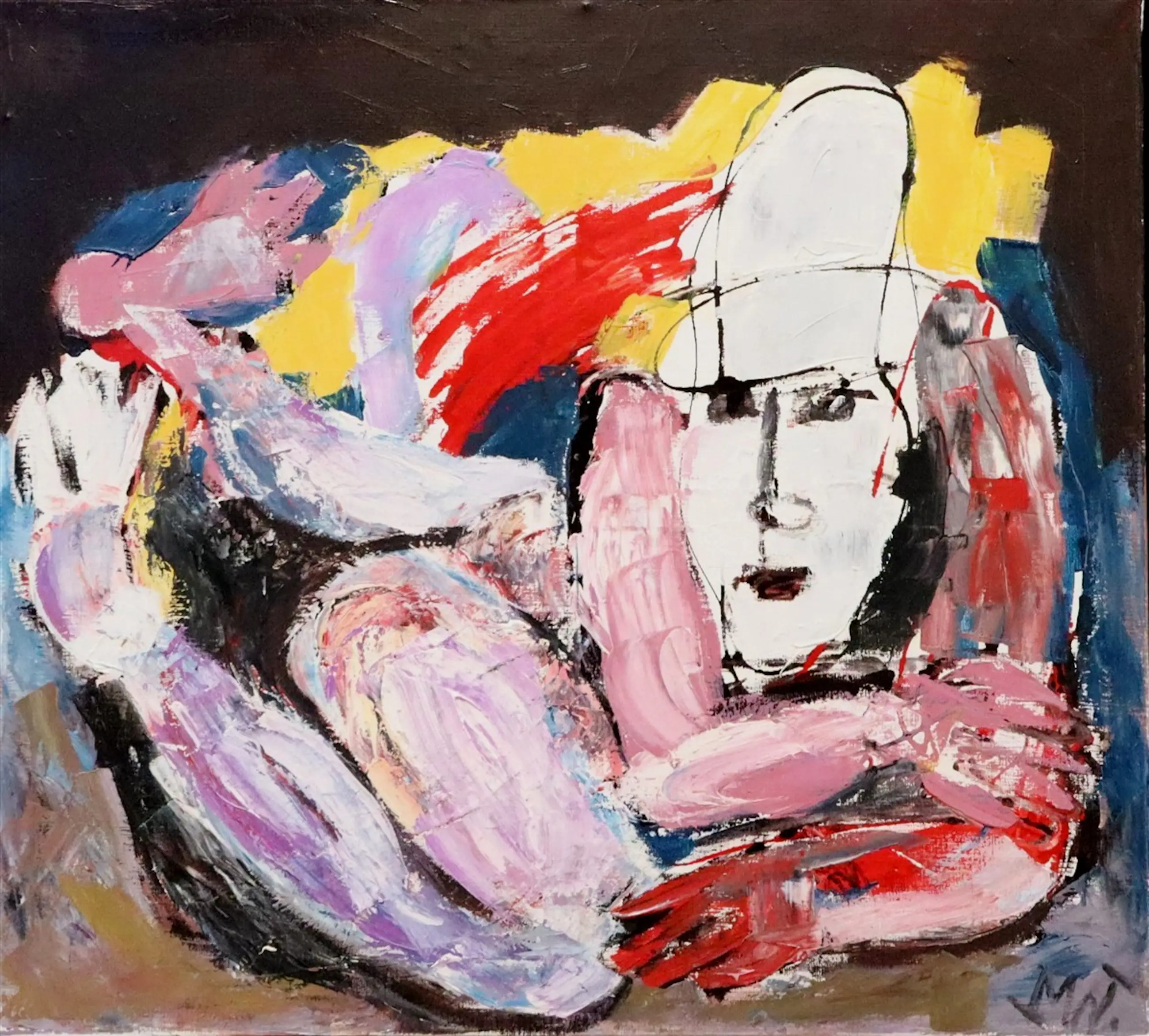 Martin van Wordragen met monogram r.o., titel: Voyeur, olieverf op doek