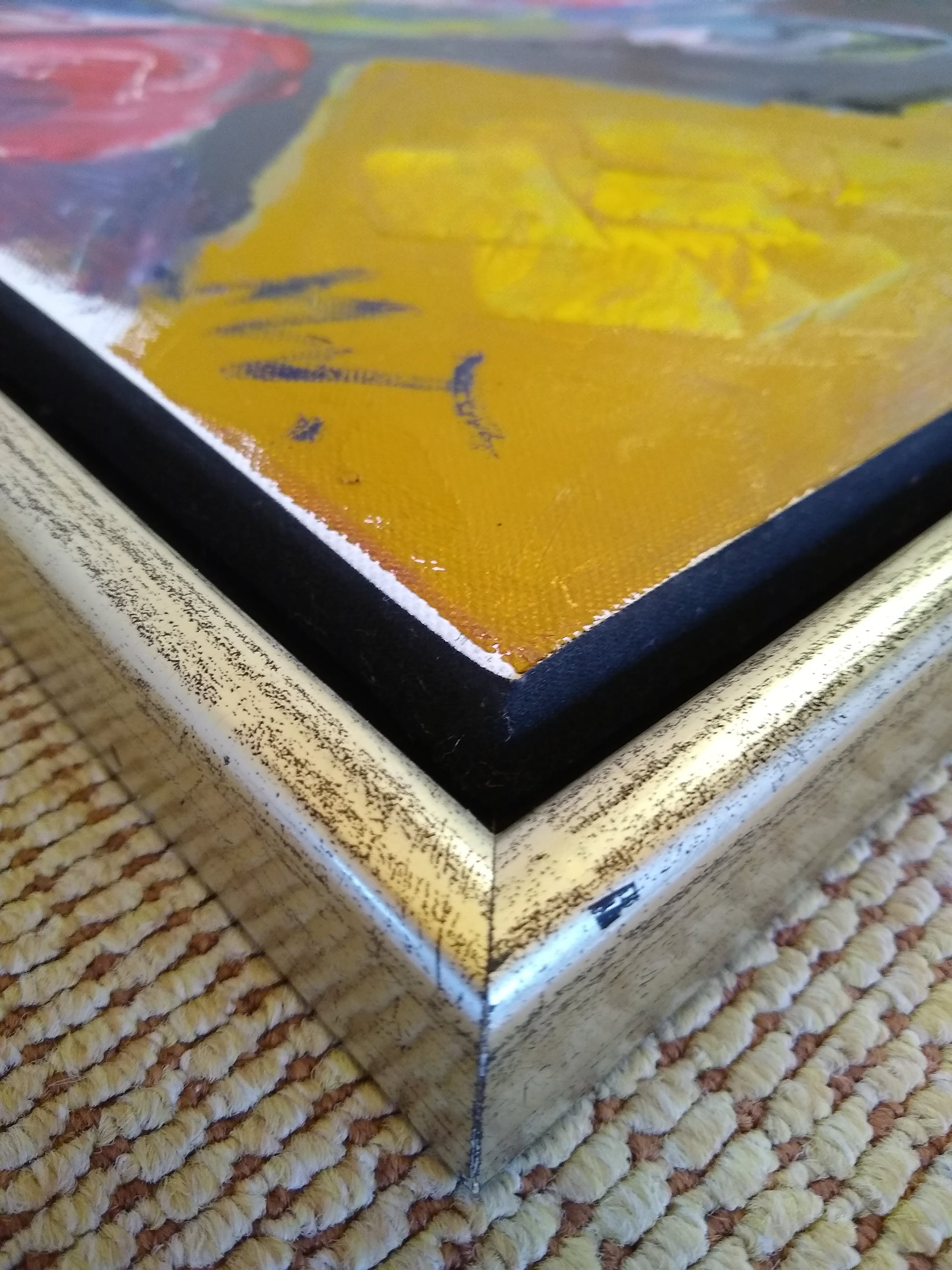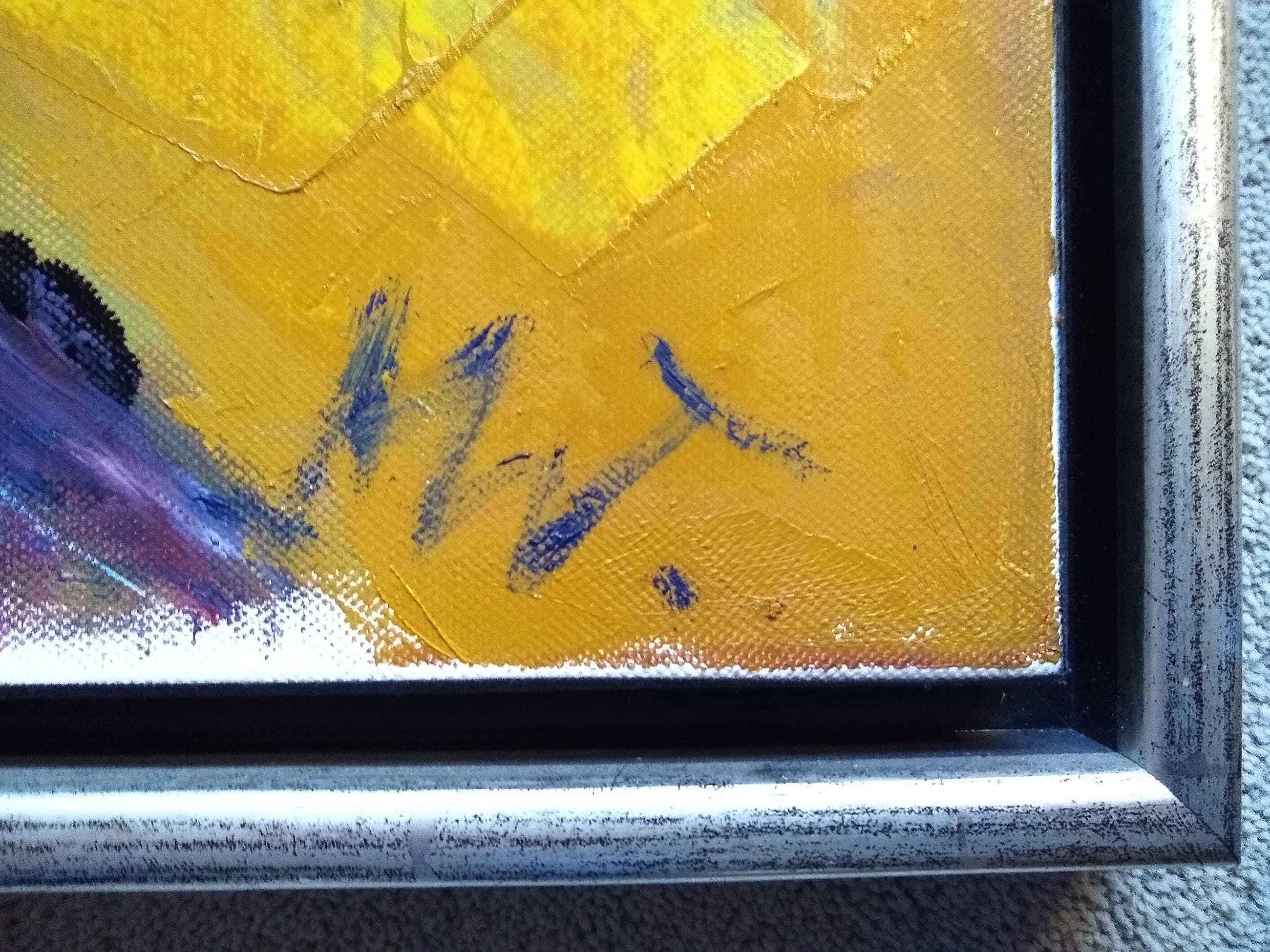 Dit vrolijke werk is in topconditie. Is ingelijst met prachtige zwart/zilver baklijst.