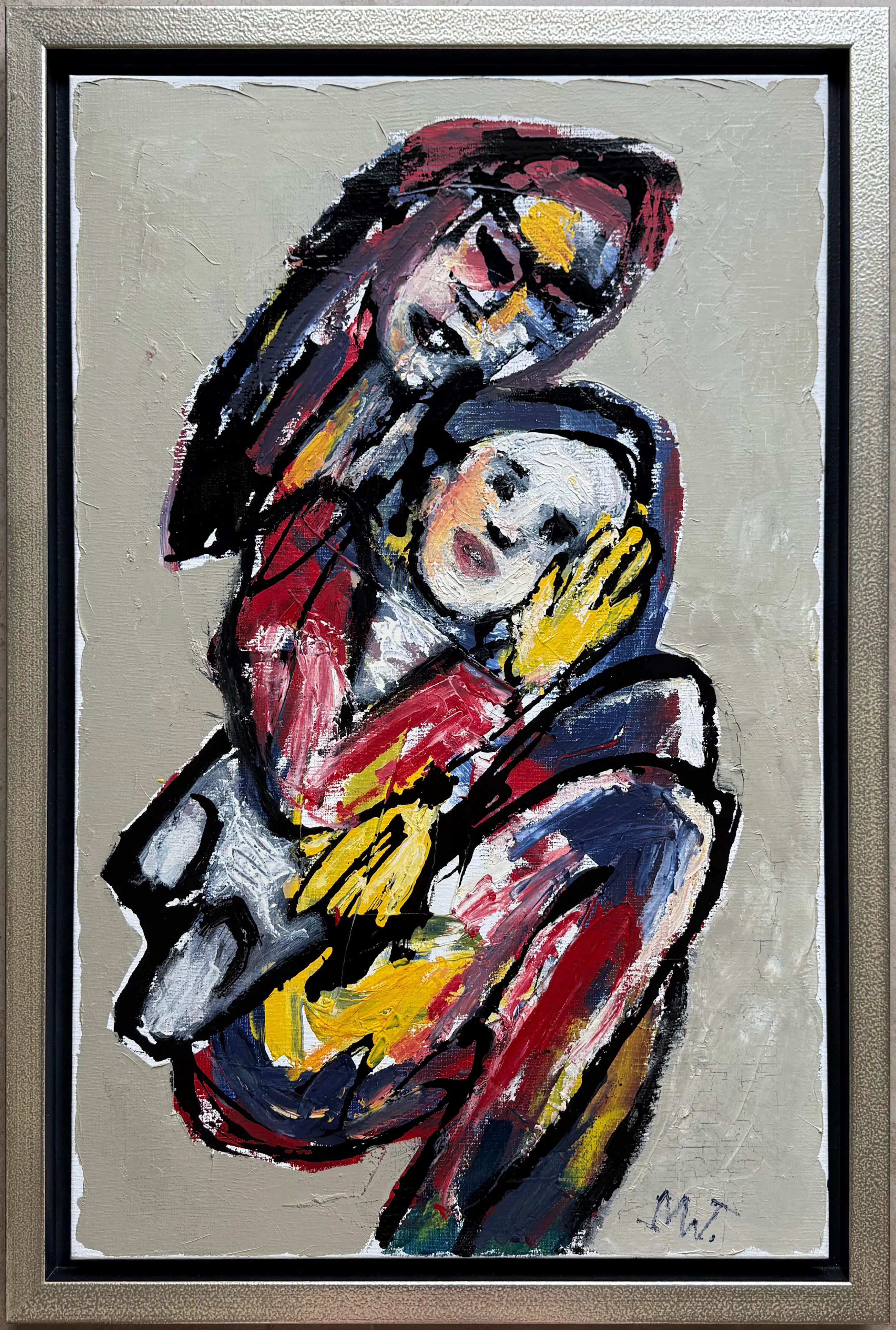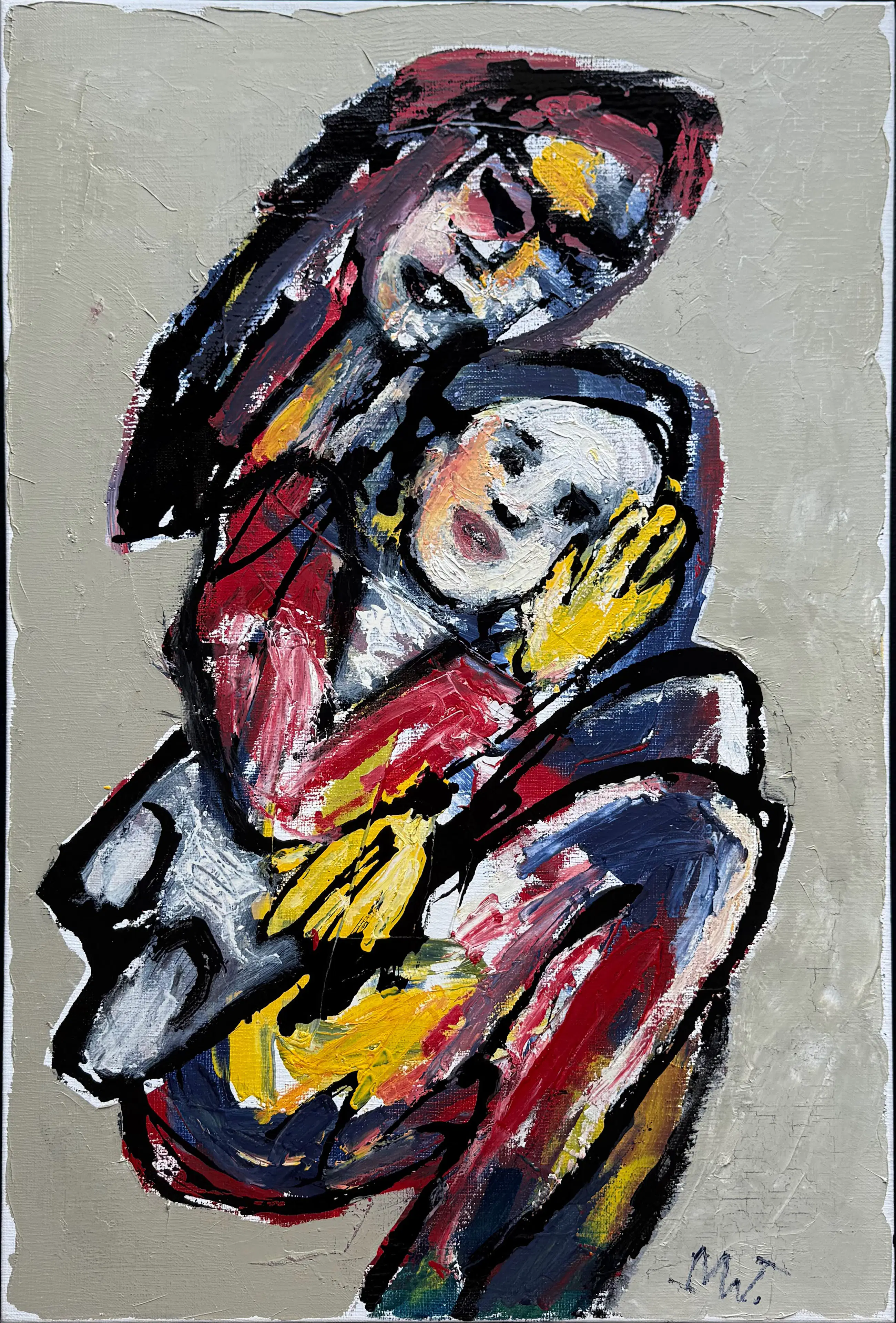 Olieverf op doek van Martin van Wordragen met de titel: 'Moeder met kind'. Het werk is rechtsonder met de hand gesigneerd door de kunstenaar.