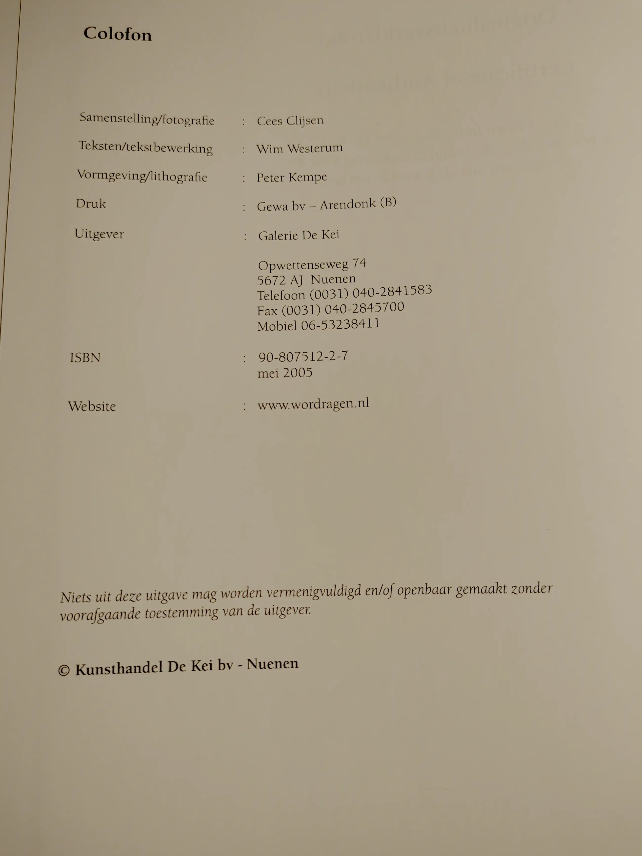 De verkoper neemt de volledige verantwoordelijkheid voor dit item. Kunstveiling biedt slechts het platform bij deze transactie, welke direct met de verkoper afgehandeld dient te worden. Meer informatie .