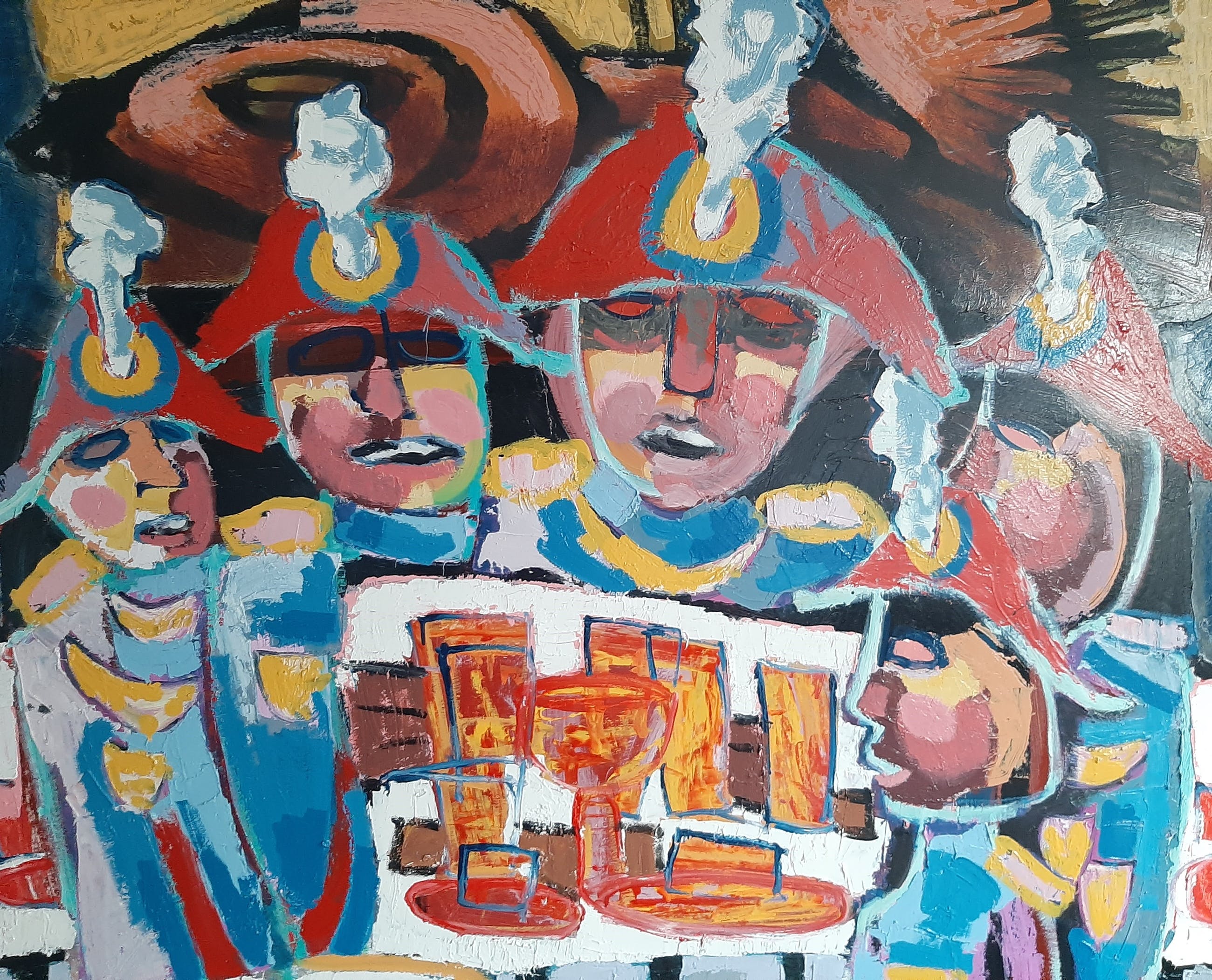 Martin van Wordragen (1928-2011) - SchuttersfeestOlieverf op paneel - Handgesigneerd - Origineel - 1995