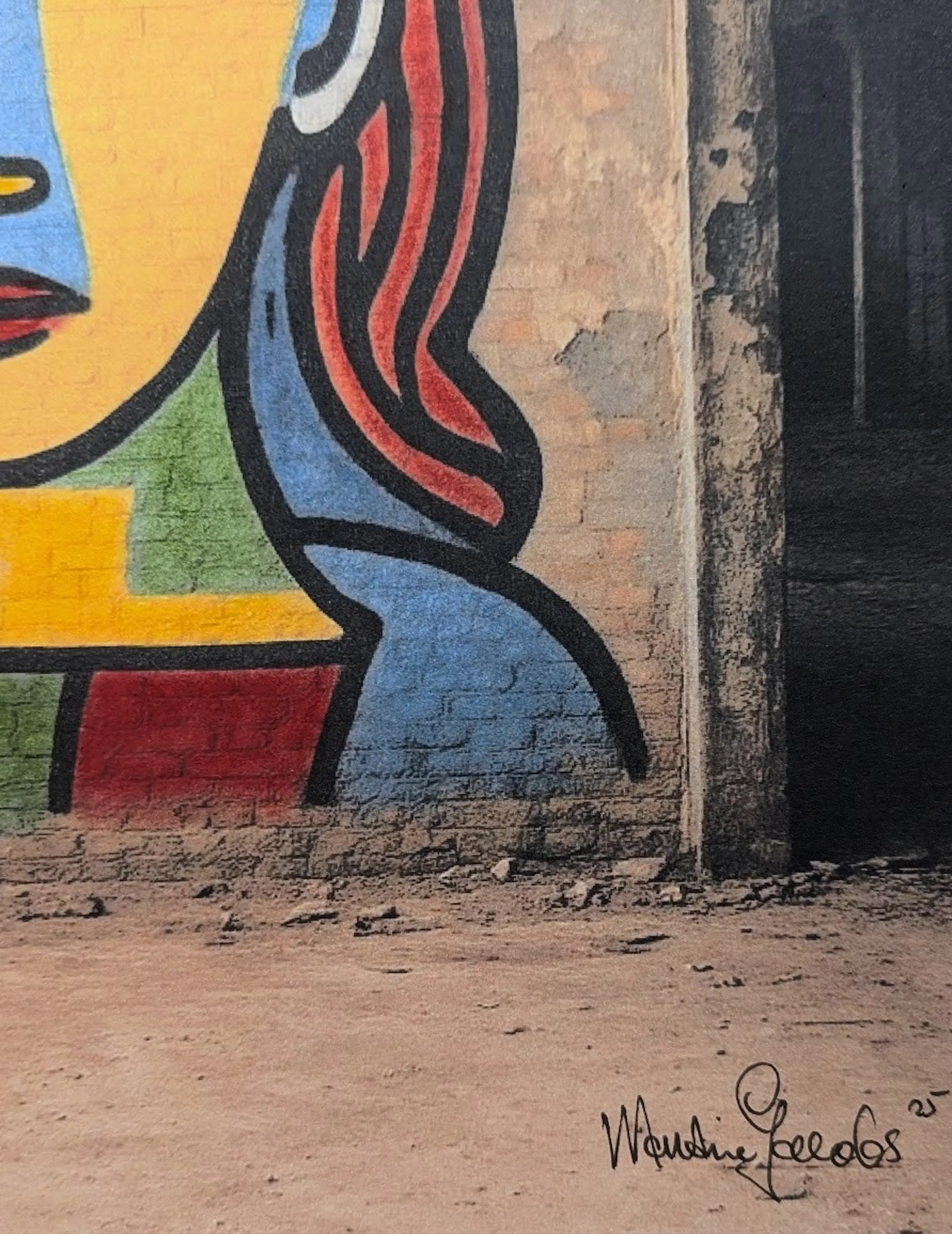 "Is het een dystopie? Misschien. Maar niet eentje van sciencefiction. Het is de dystopie van vergeten plekken, van menselijke gezichten die vervagen in de ruis van vooruitgang. Toch is er kleur. Toch is er vorm. Dat is mijn verzet. Mijn graffiti-geest." incl. certificaat