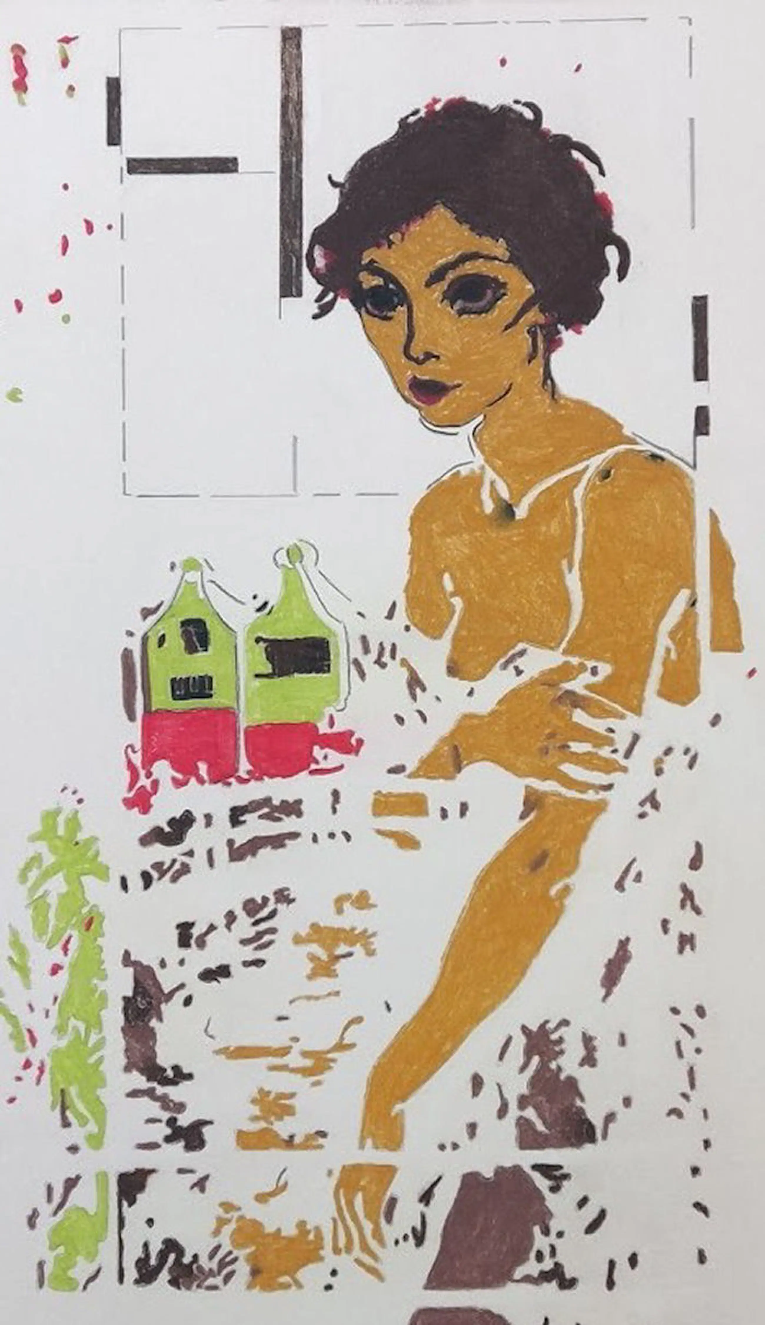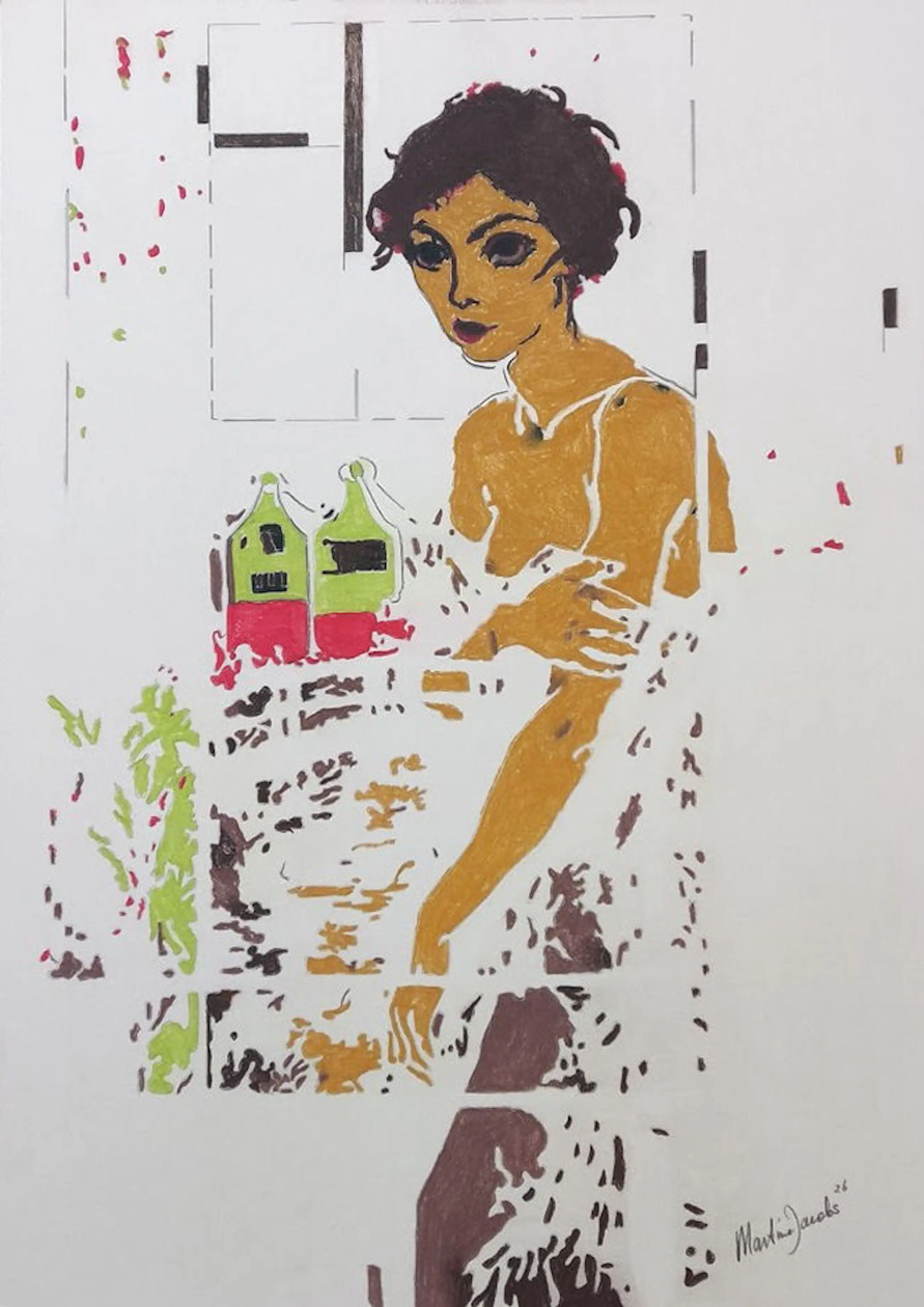 De zachte kleuren en open compositie geven het beeld een kwetsbare en persoonlijke sfeer. Het werk gaat over groei, zelfreflectie en de manier waarop het verleden altijd aanwezig blijft in het creatieve proces. incl.certificaat