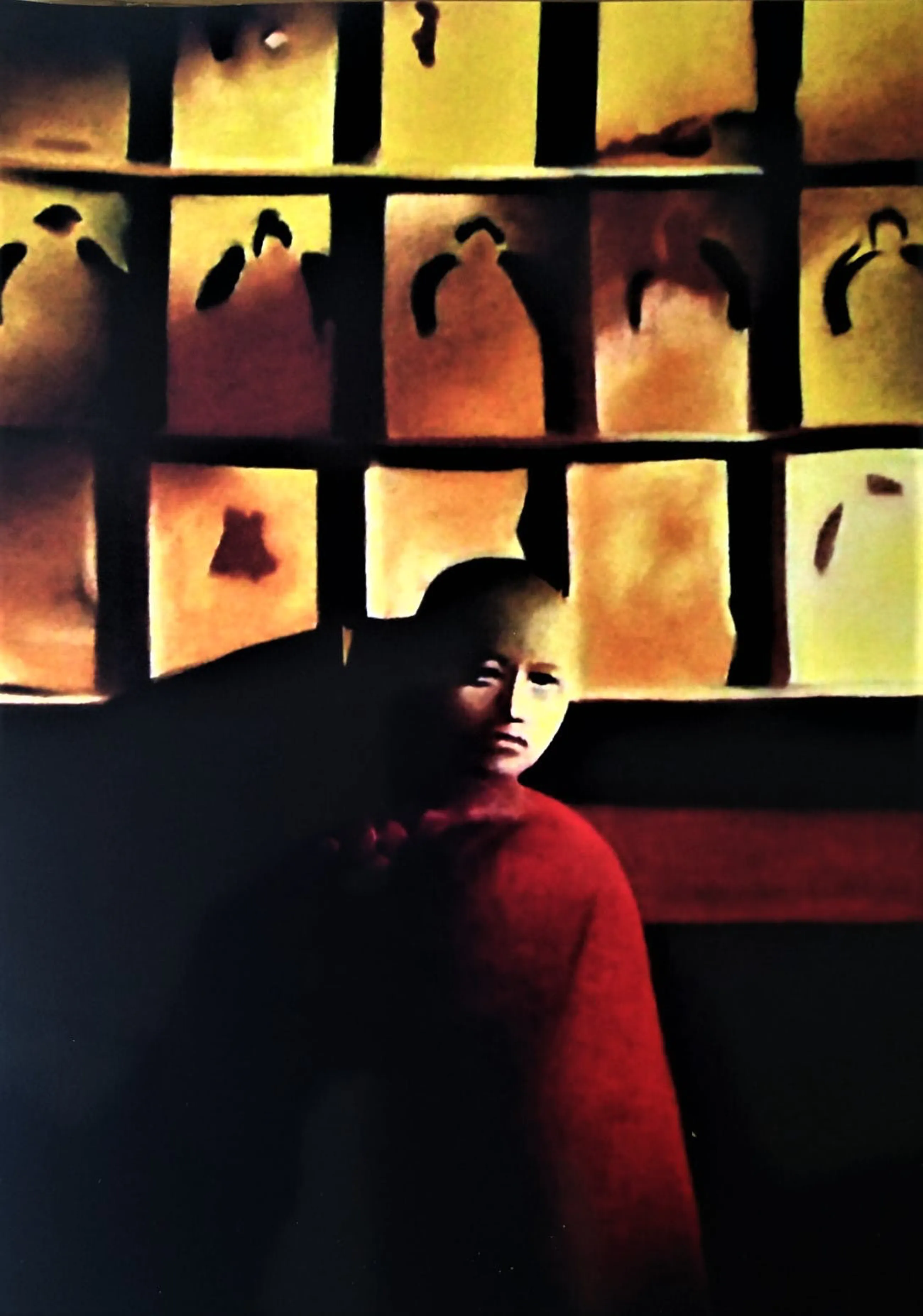 Dit is een gesigneerde print nummer 01 van 20 uit het werk van Martine Jacobs. Titel Boeddhistische monnik na een pastel tekening uit 2019
