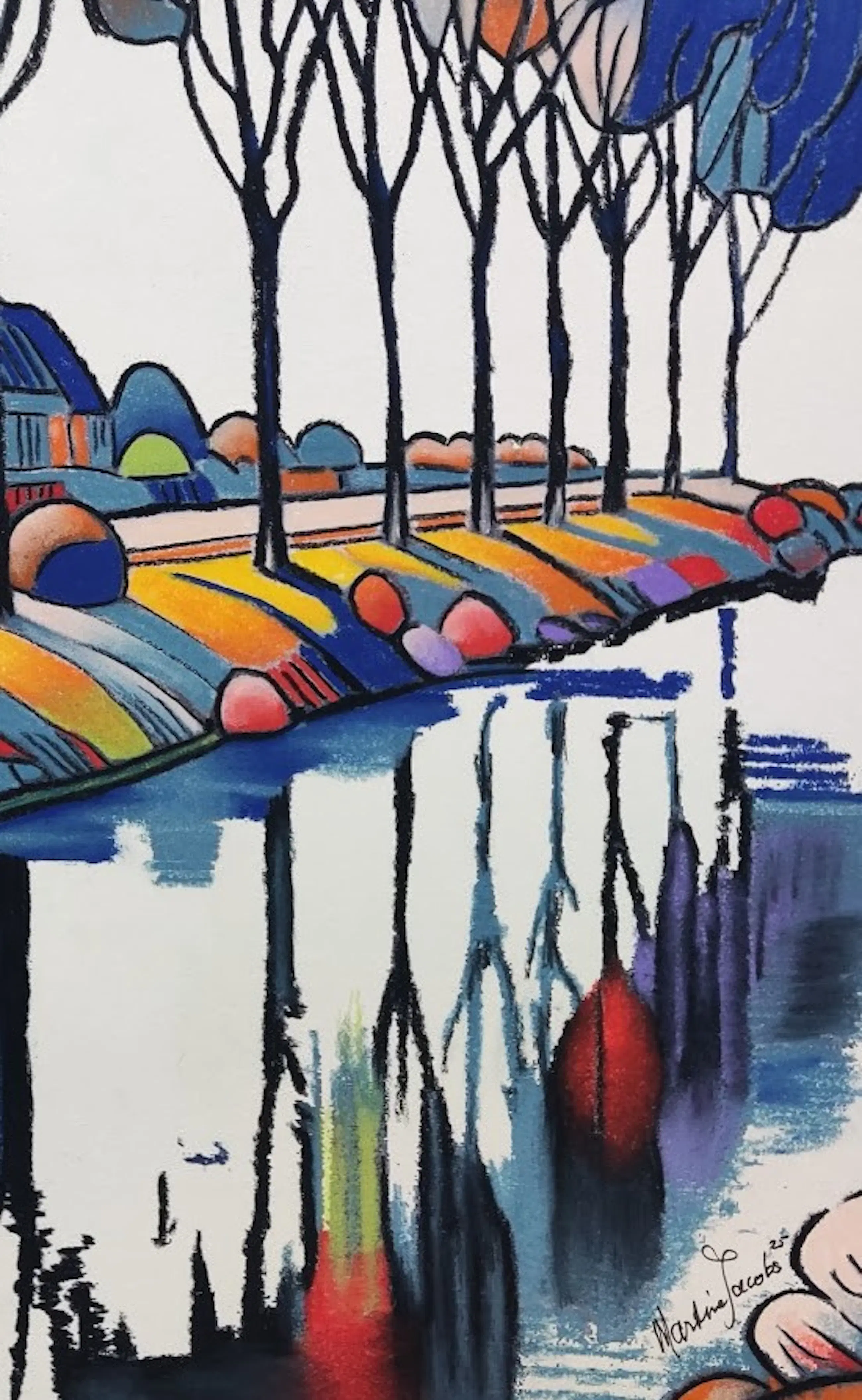 Martine Jacobs, geboren in 1956 Amsterdam, is een bekende pastelkunstenaar die zich heeft gespecialiseerd in het creëren van kleurrijke pasteltekeningen. Haar werk kenmerkt zich door levendige kleuren en de zachte, dromerige kwaliteit.