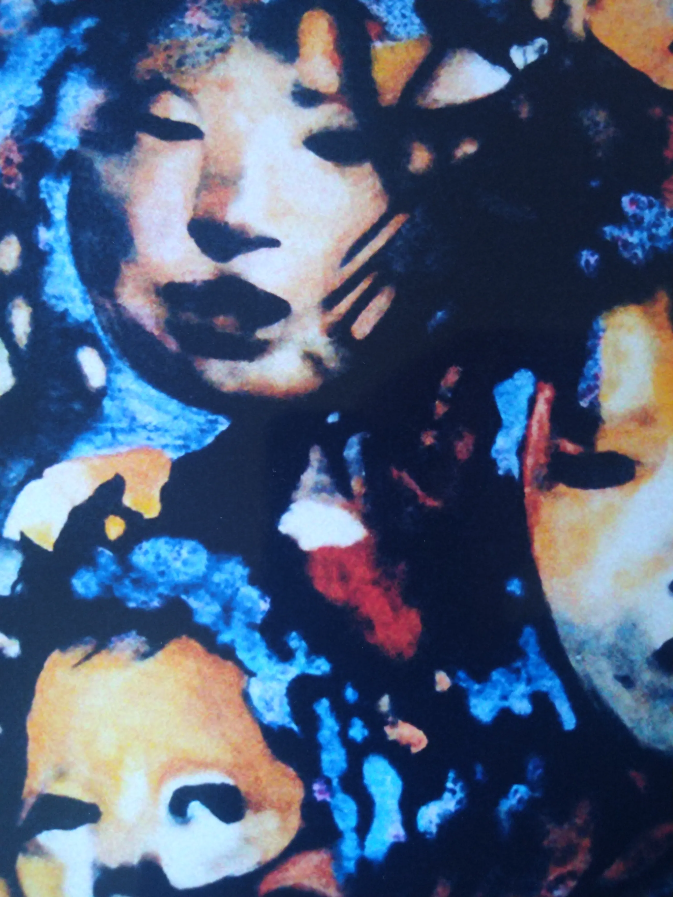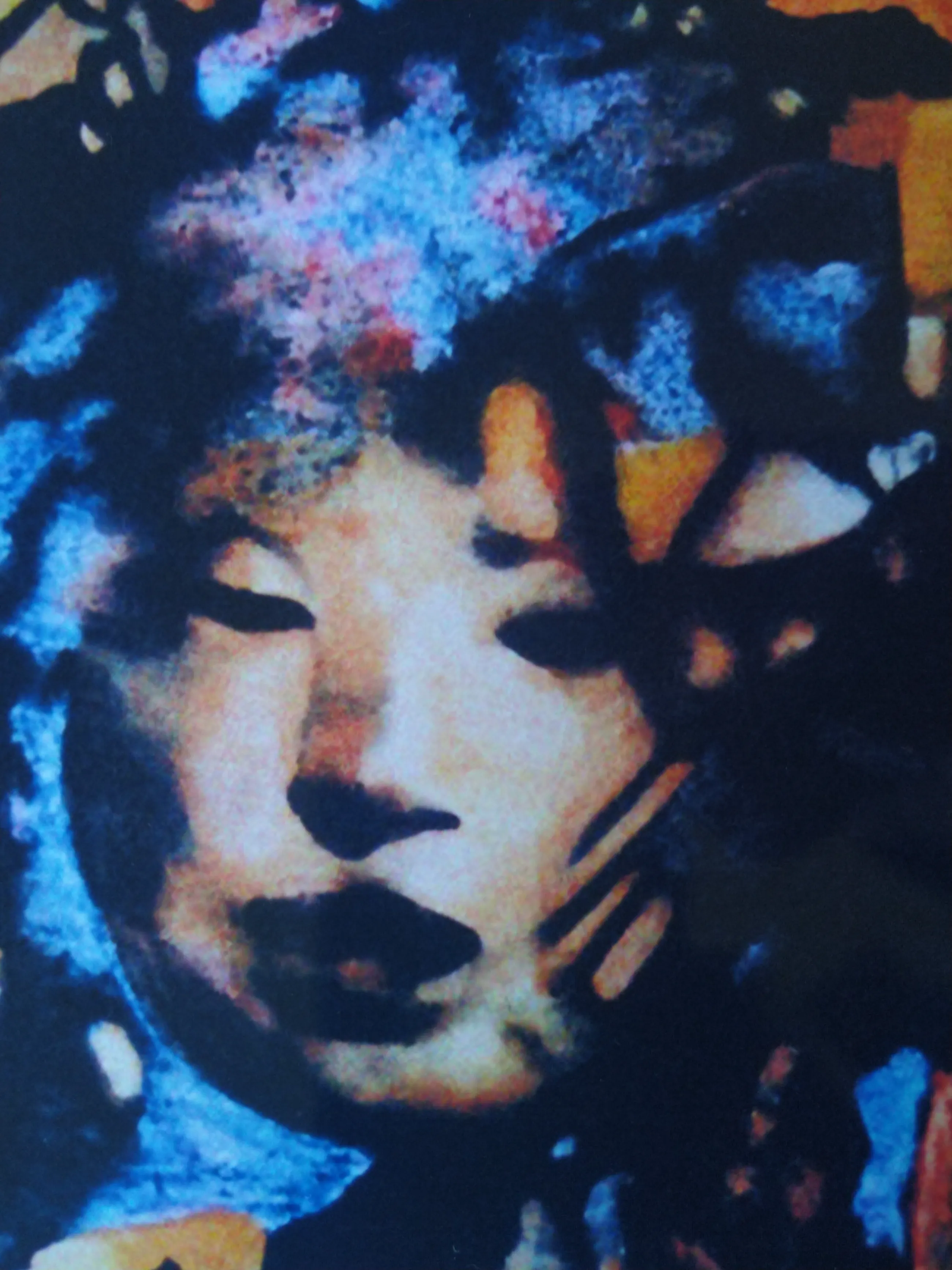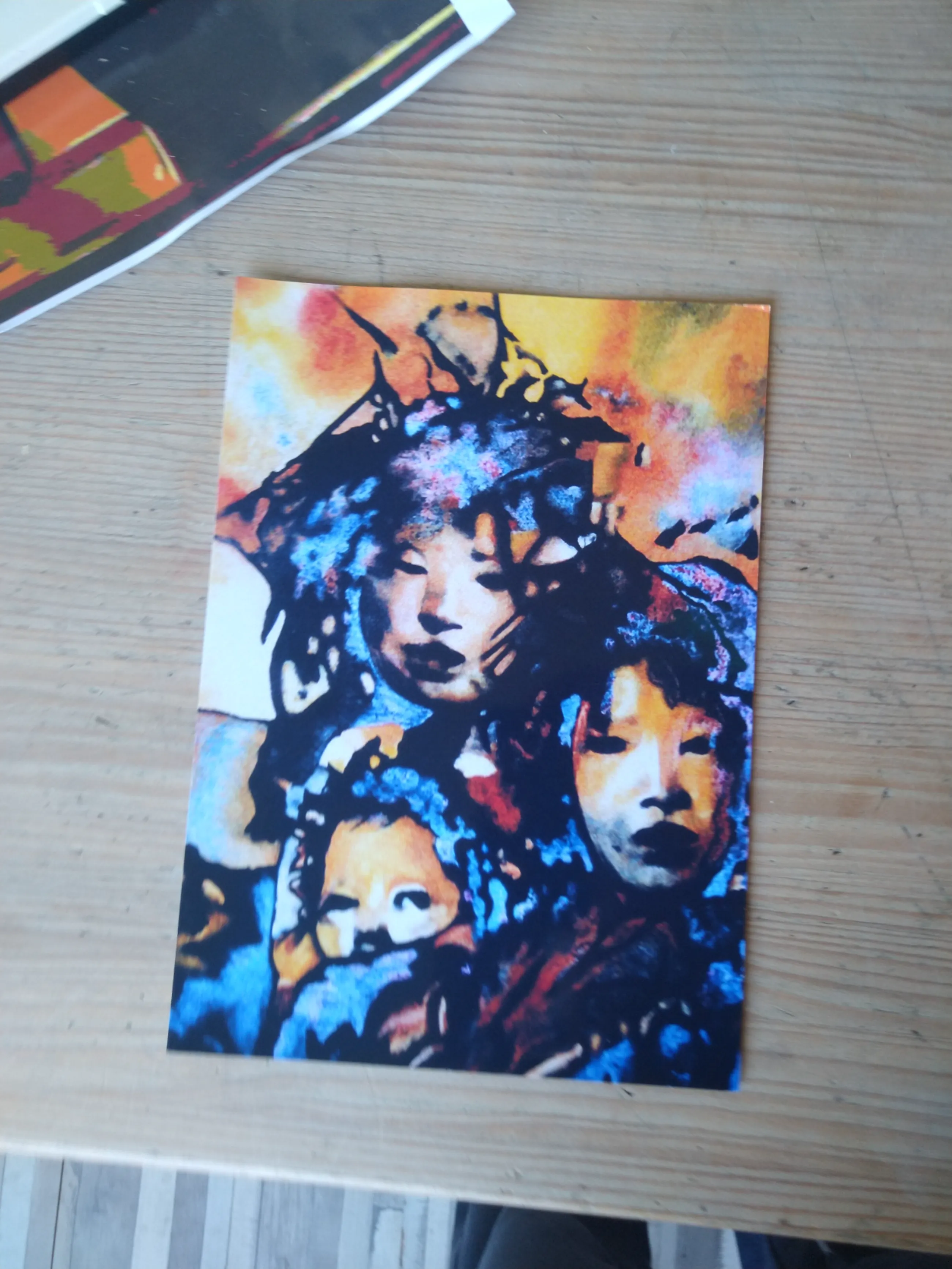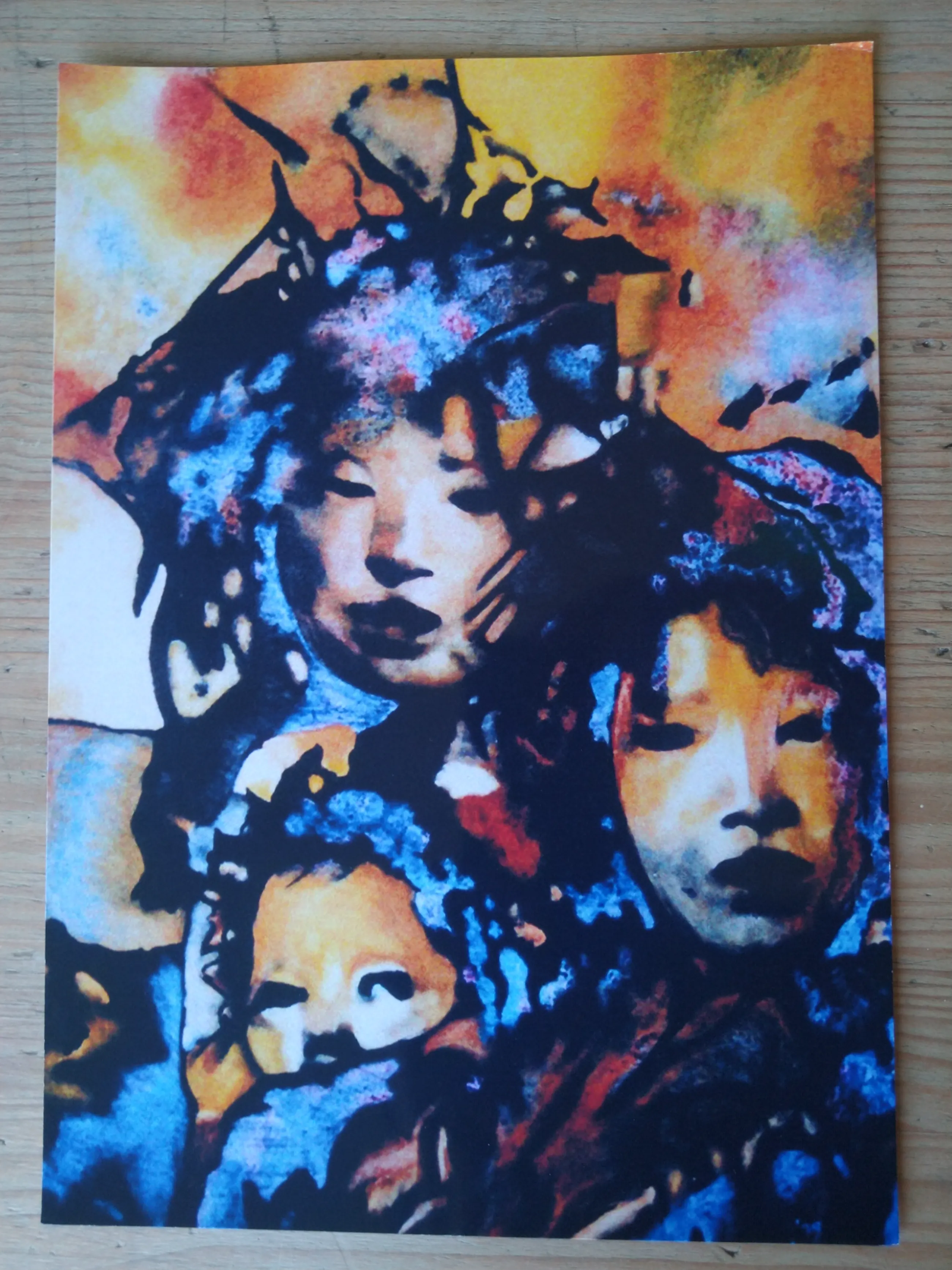 Print na een origineel pastel Tibetaanse gezichten van Martine Jacobs Opbergmap is Offset gedrukt Afbeelding map Bewerkte Maria postzegel uit de serie StampArt van Martine en Hans Jacobs Map uit 1998