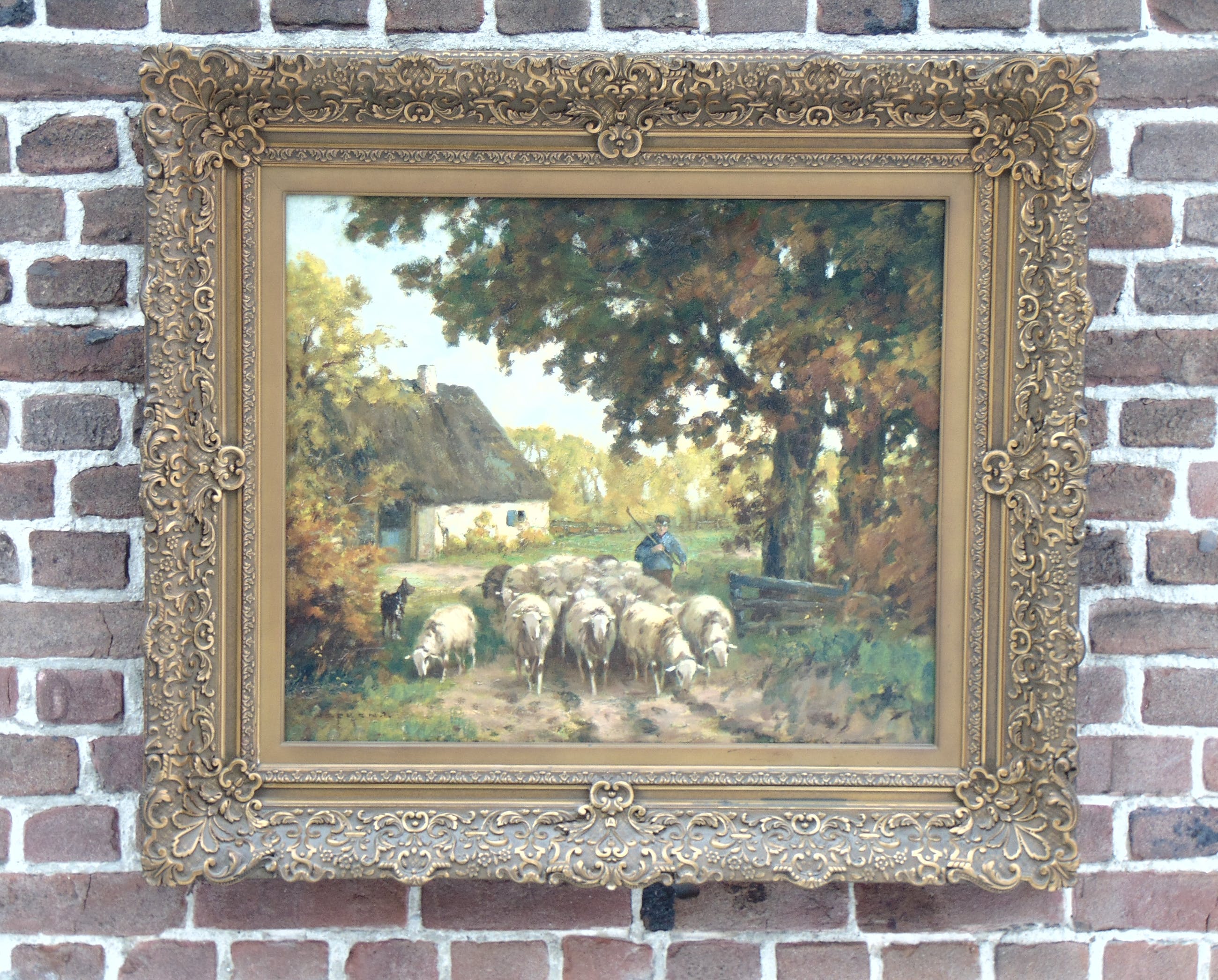 Dit werk is linksonder gesigneerd. Het werk is ingelijst in een ornament lijst.