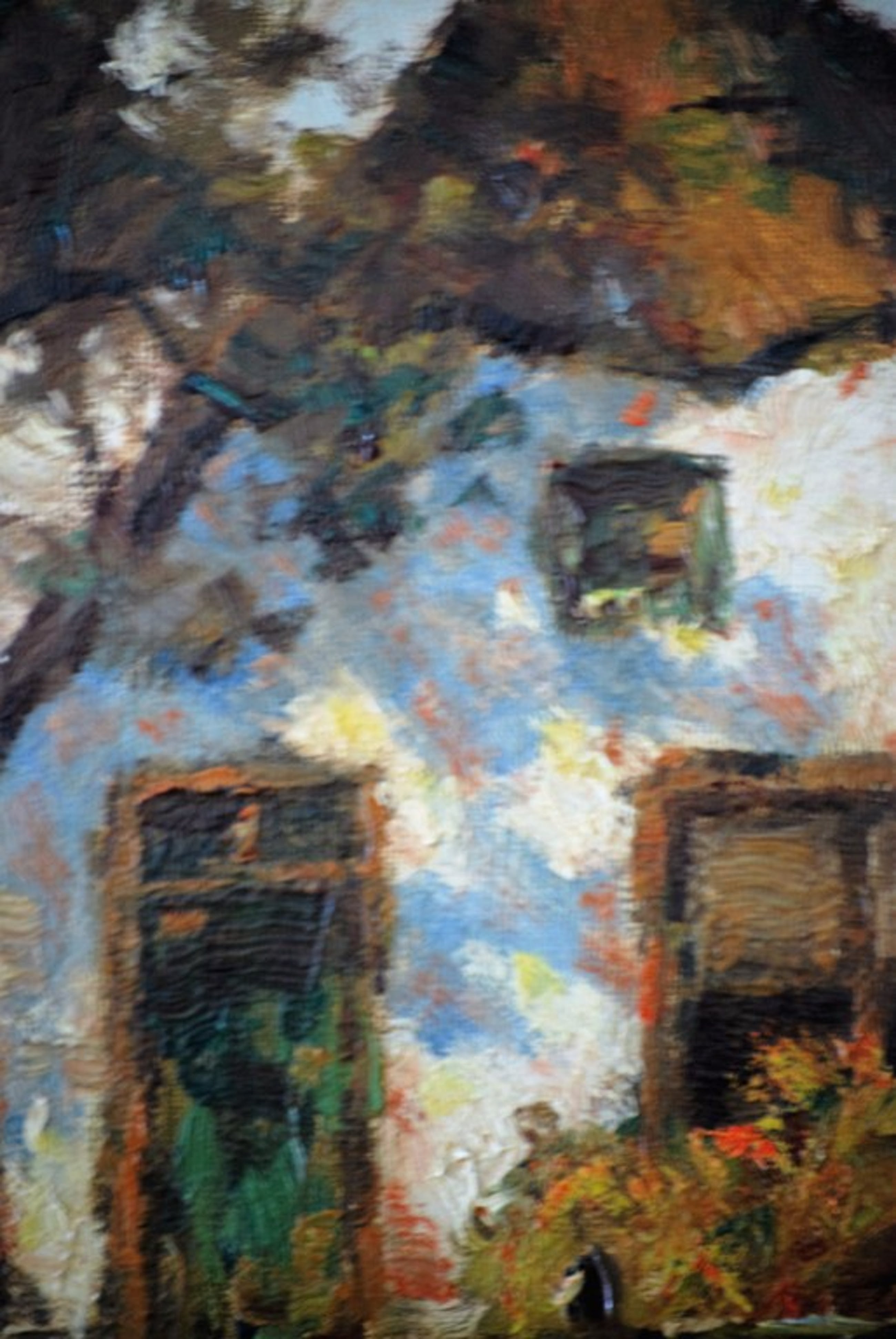 Nefkens woonde en werkte in Antwerpen, Amsterdam, Gorkum, Den Haag en Lunteren. Nefkens schilderde en aquarelleerde geheel in de trant van de Haagse School, voornamelijk landschappen en heidegezichten met schapen. De schaduw die de schilder op het huis heeft overgebracht geeft een bijzondere uitstraling aan dit schilderij. Om het doek is een nieuwe lijst professioneel aangebracht. Achter op het werk staat het jaartal 1939 met potlood geschreven (zie foto's). Schilderij verkeerd in goede staat. Afmeting schilderij: 29 cm breed, 38 cm hoog.