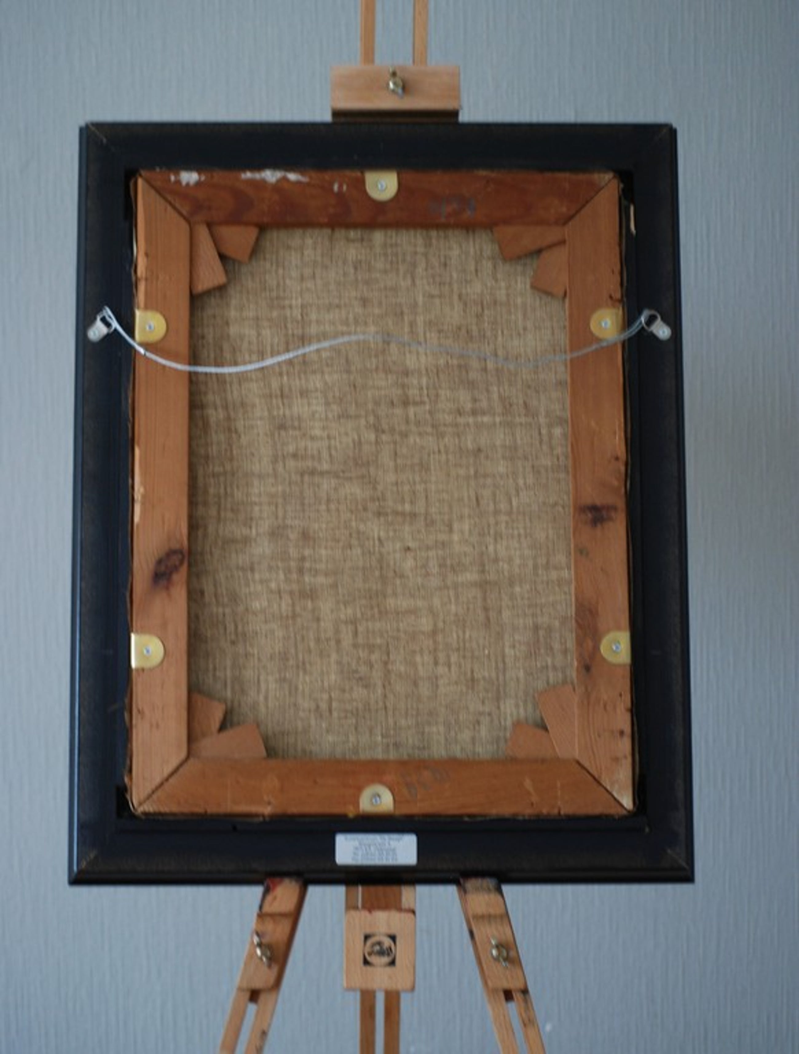 Afmeting inclusief lijst: 40 cm breed, 49 cm hoog. Om het schilderij zit een nieuwe lijst proffesioneeel aangebracht.