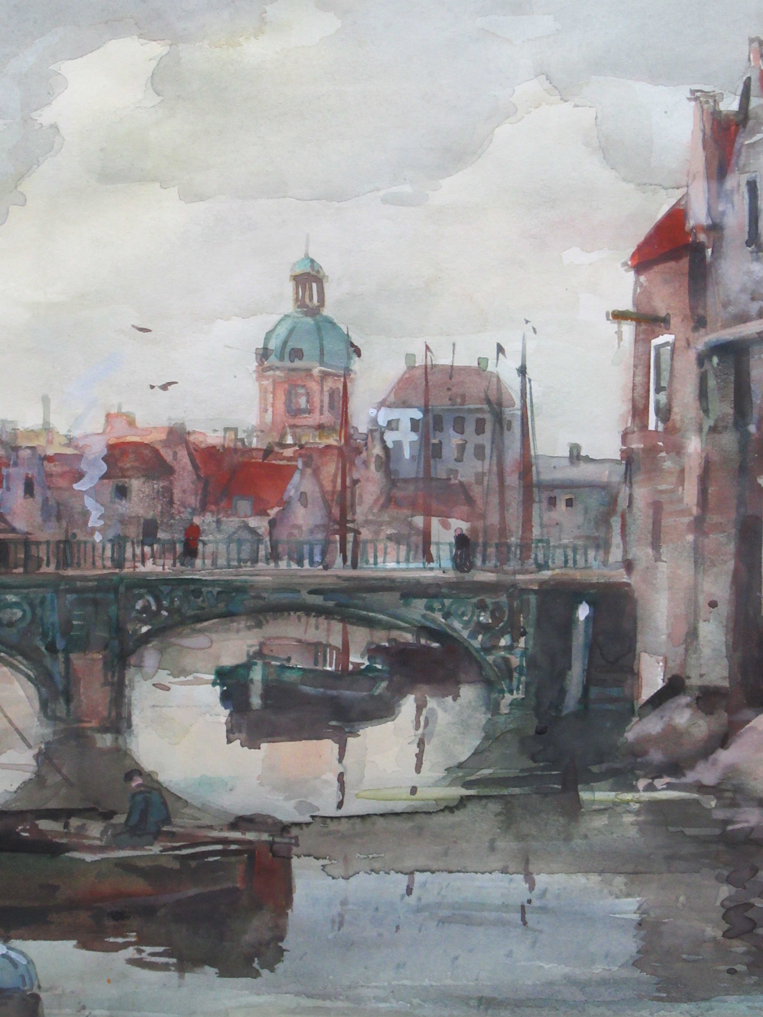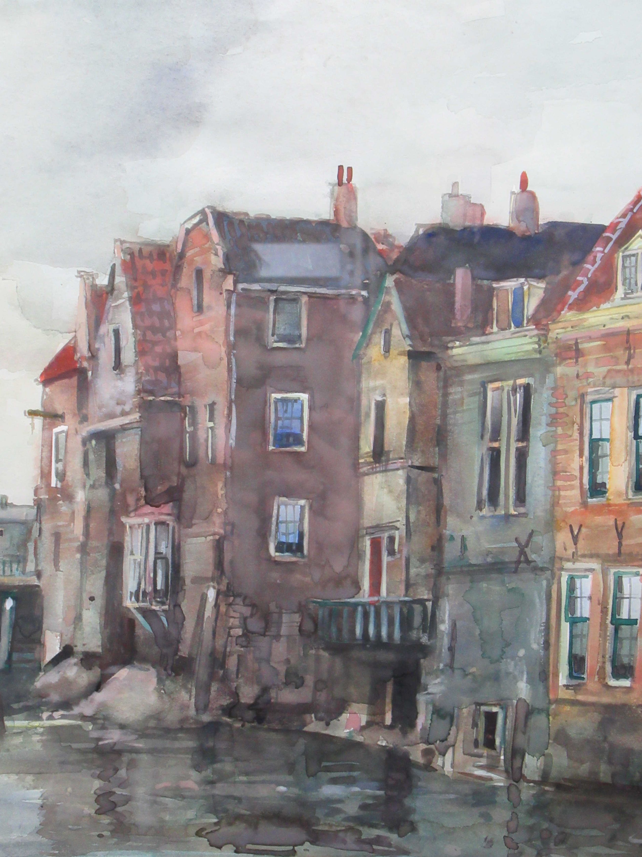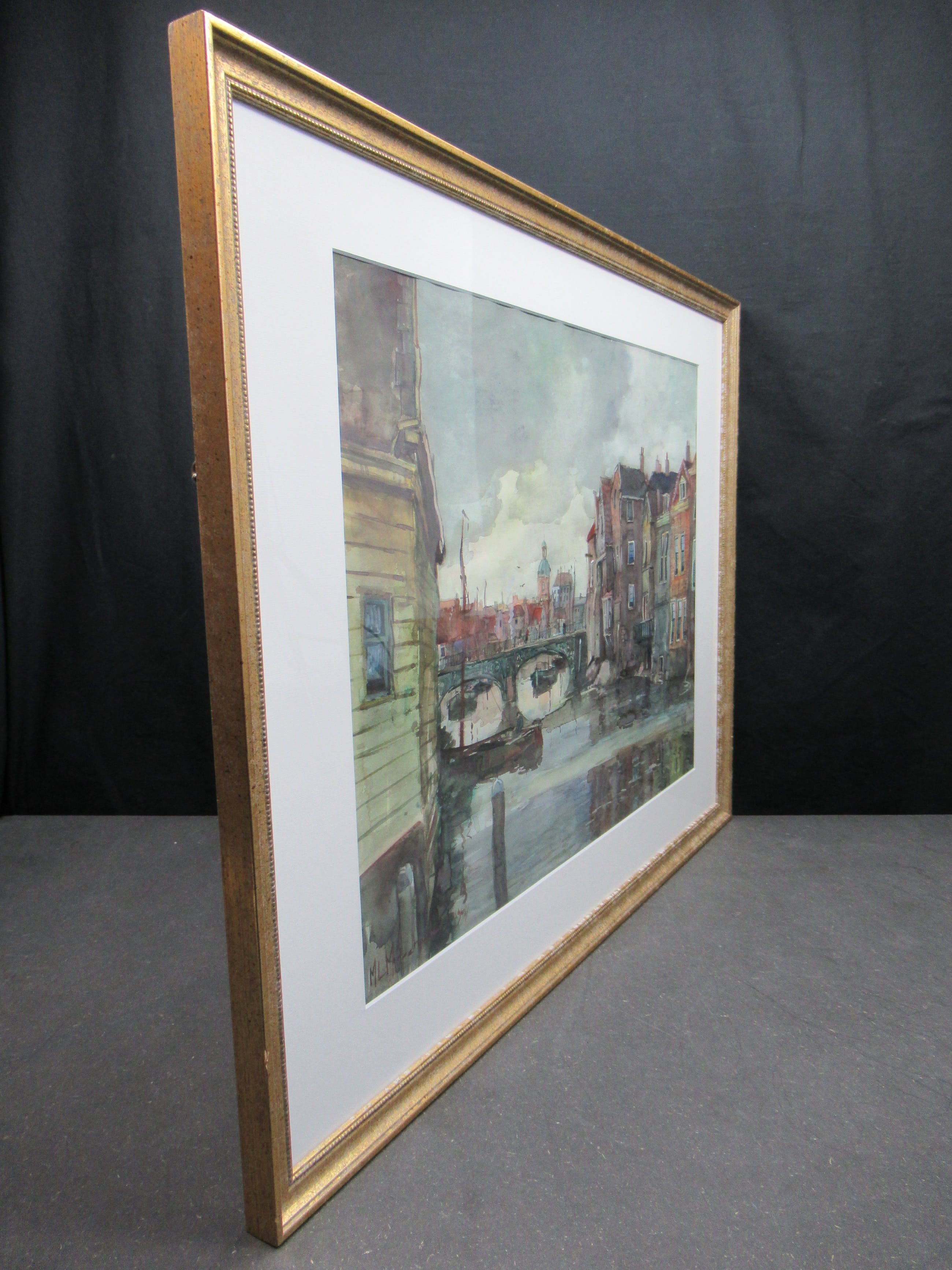 Mooie aquarel, in zeer goede staat, van de Voorstraathaven te Dordrecht. Het werkt is professioneel ingelijst met een nette passe-partout.