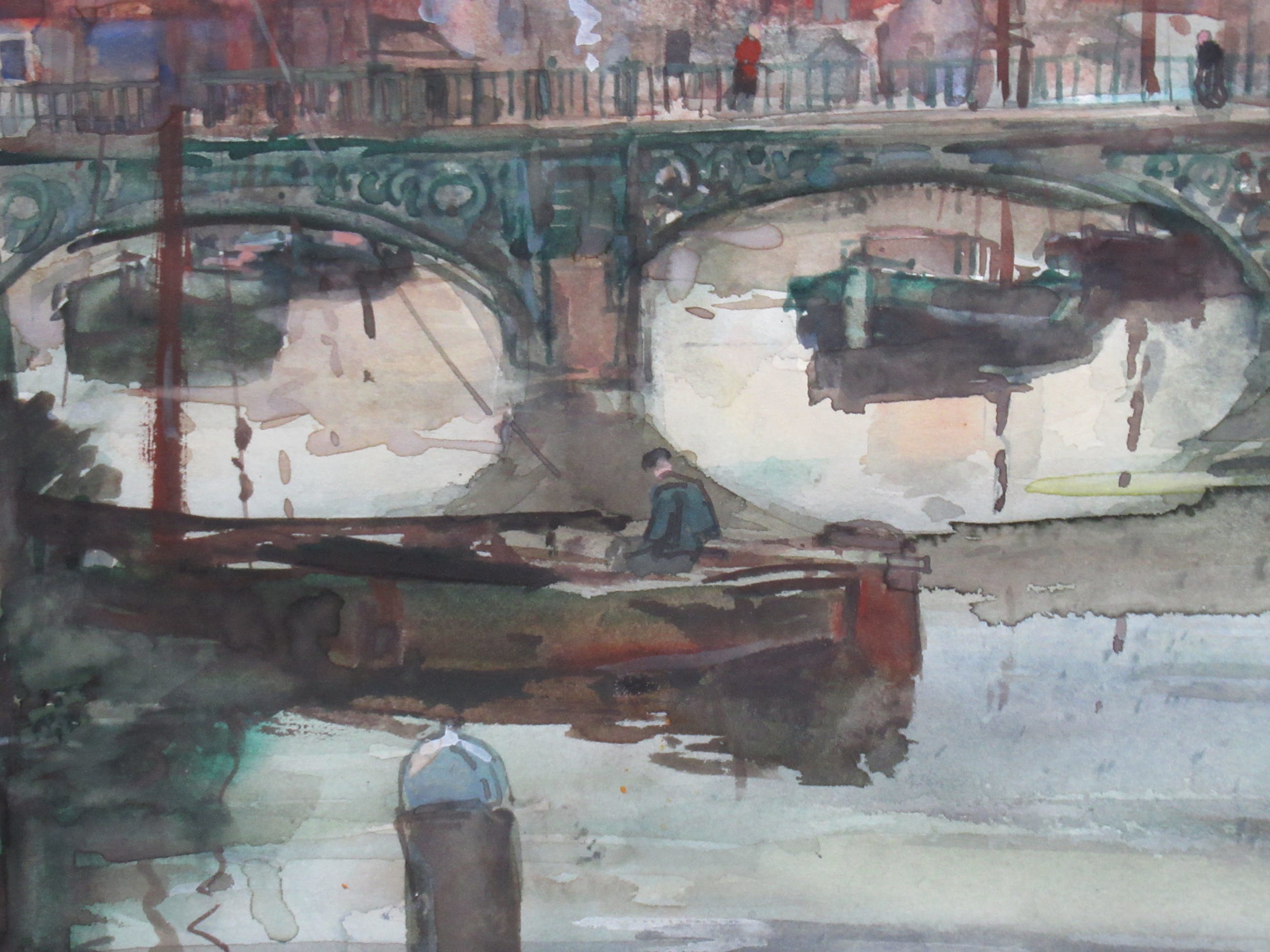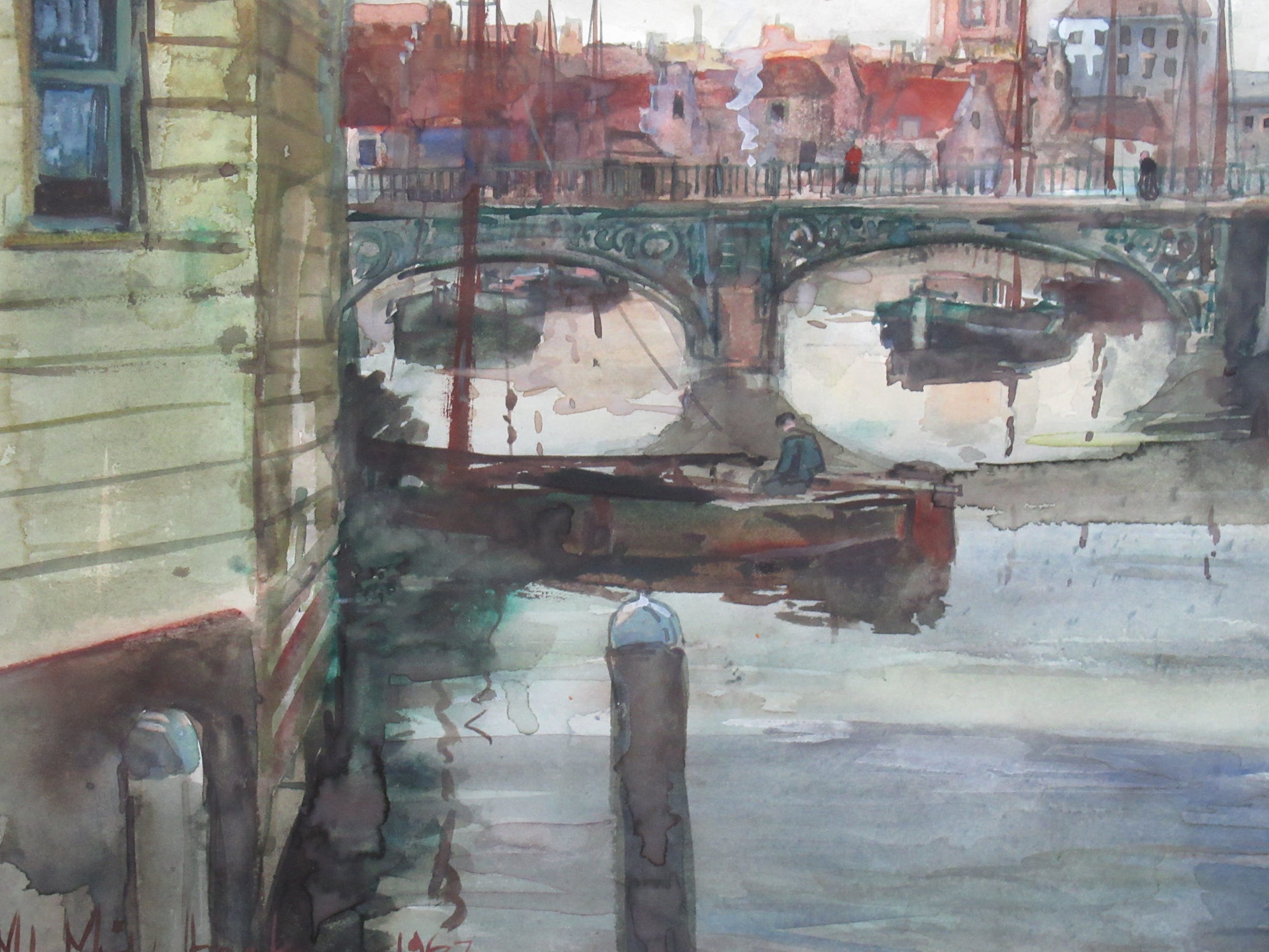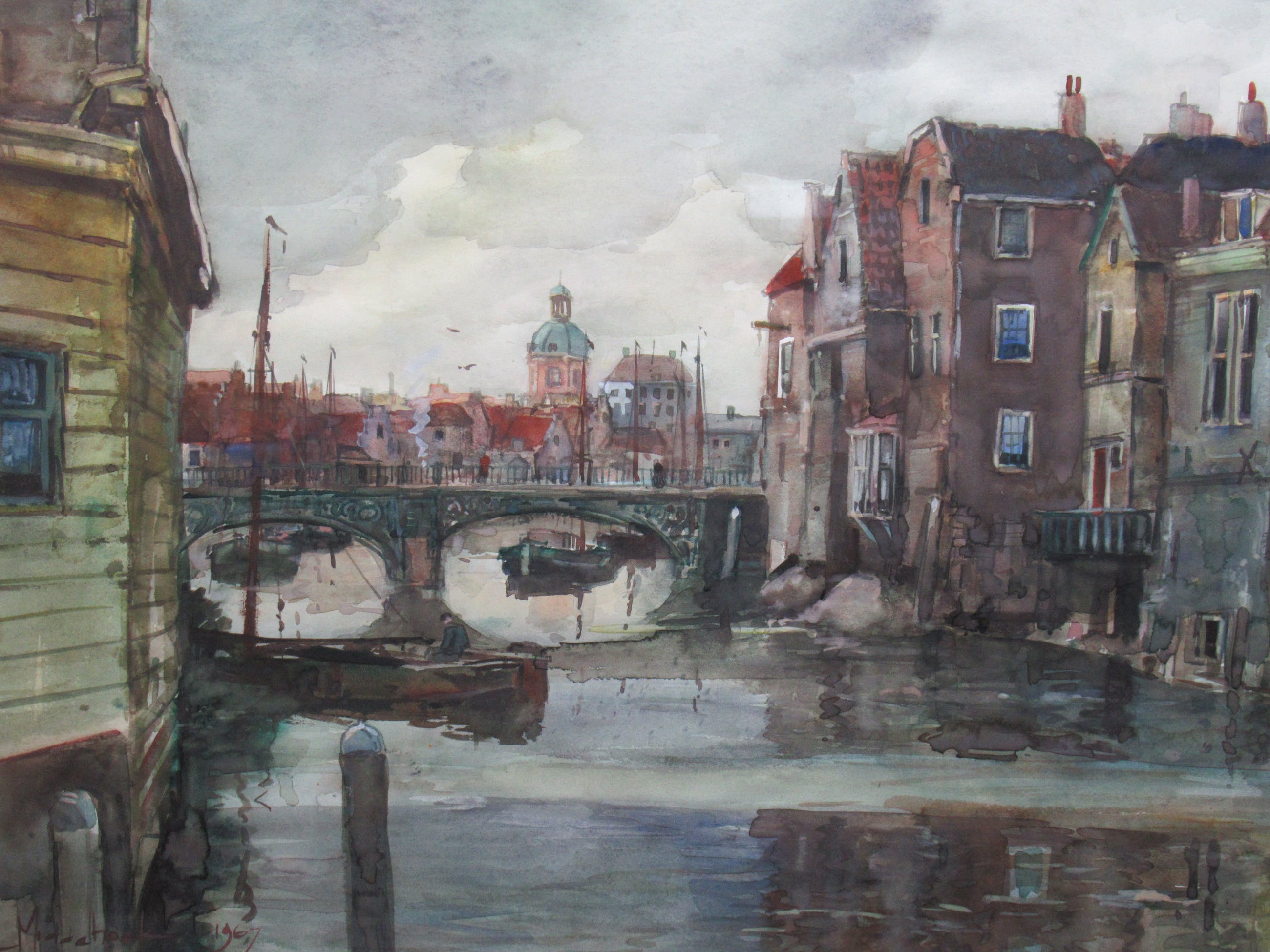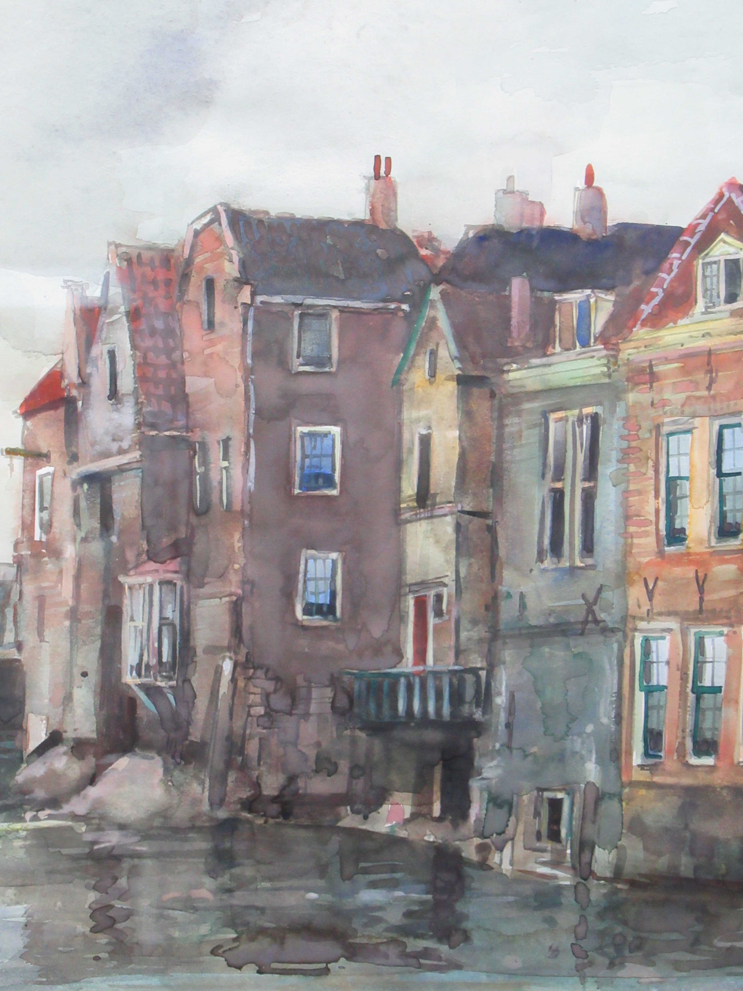 Mooie aquarel, in zeer goede staat, van de Voorstraathaven te Dordrecht. Het werkt is professioneel ingelijst met een nette passe-partout.