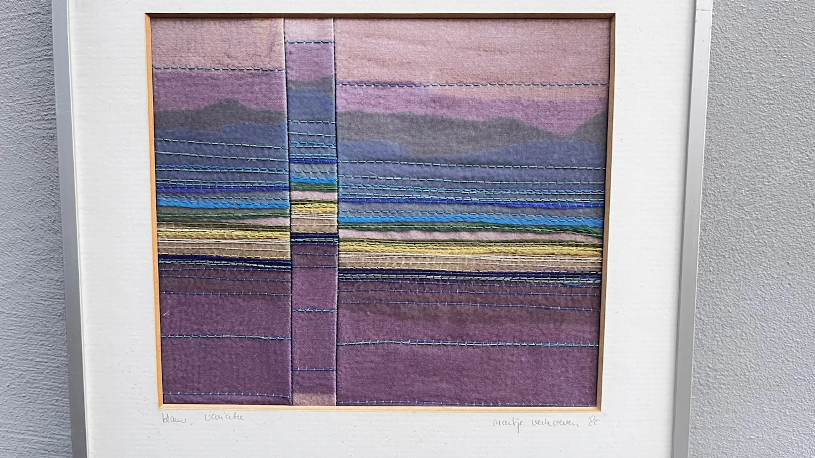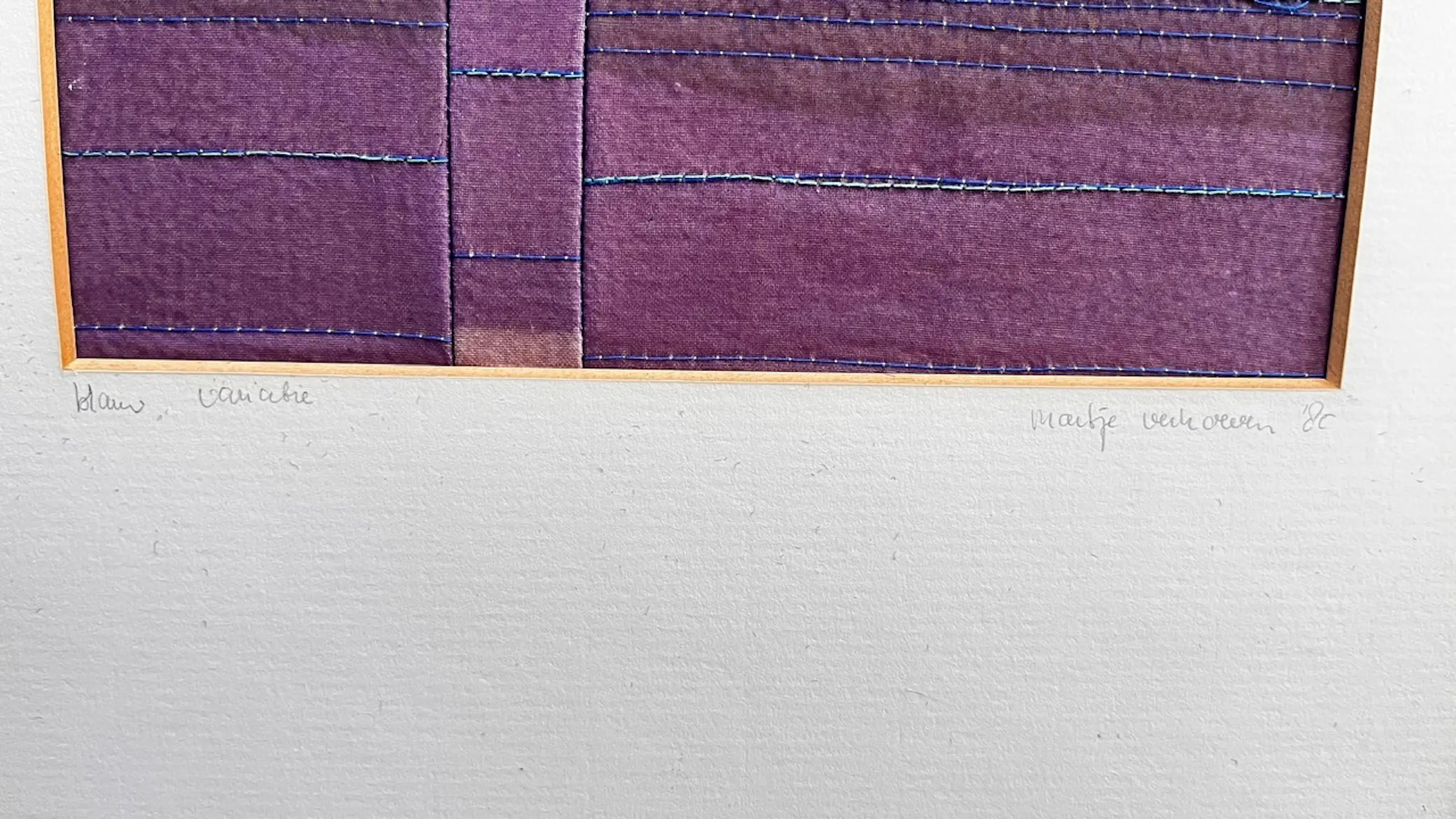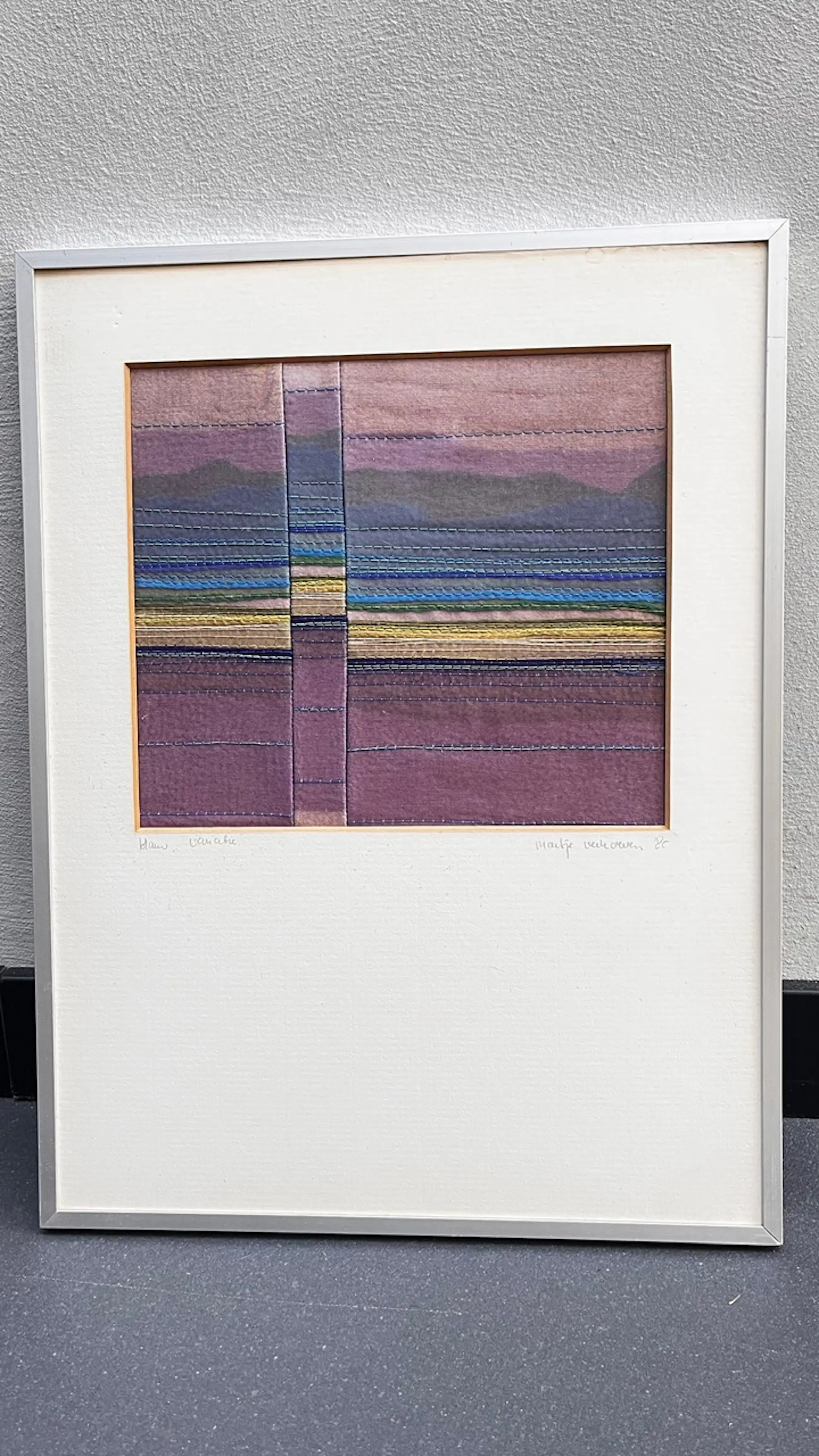 Het is een klein sfeervol borduur/naaiwerk in een passe-partout. Oorspronkelijke Gallerieprijs was FL400,- In de jaren 80 aangekocht van de Dienst Beeldende Kunst Den Bosch