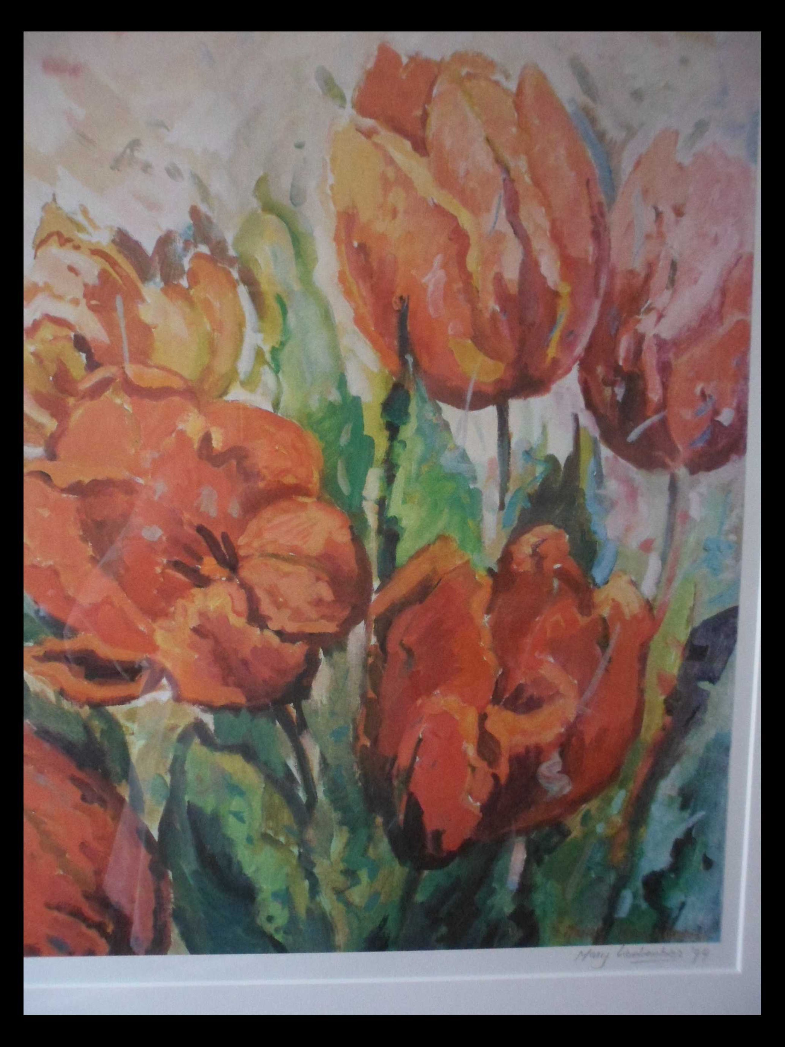 Bosje tulpen van Mary koekenbier met fraaie Barth-lijst zo goed als nieuw. Kan zo aan de muur