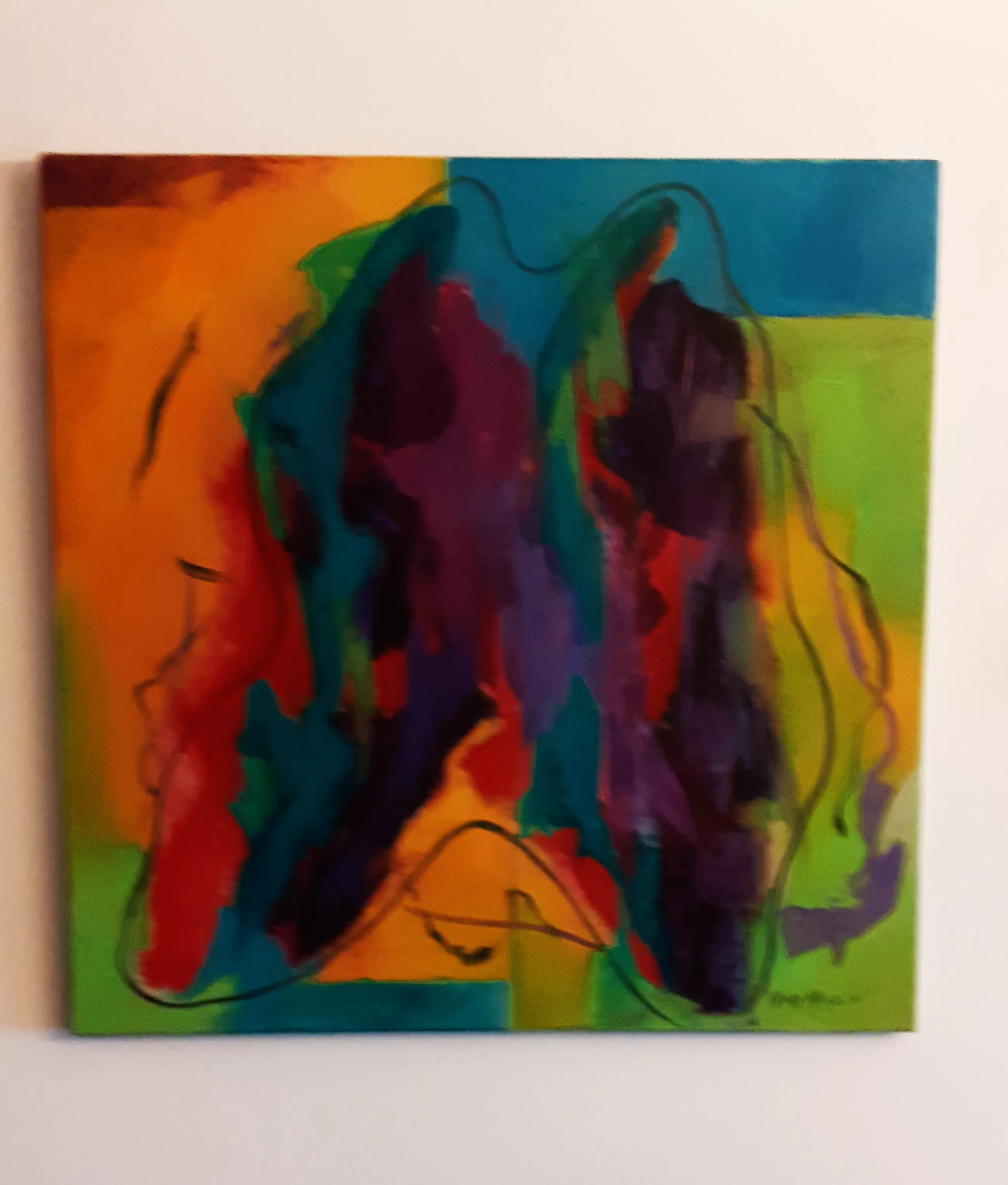 Acryl/olieverf op Talensdoek, opgespannen op houten spielijst