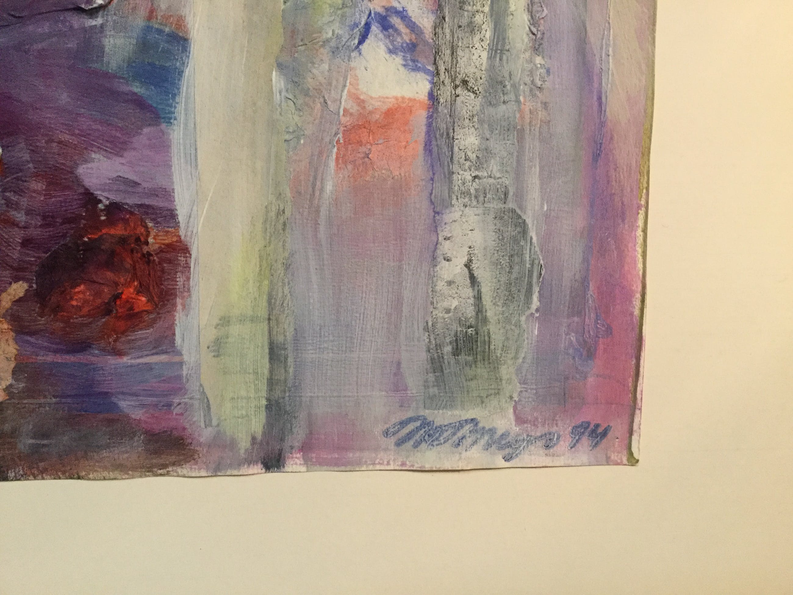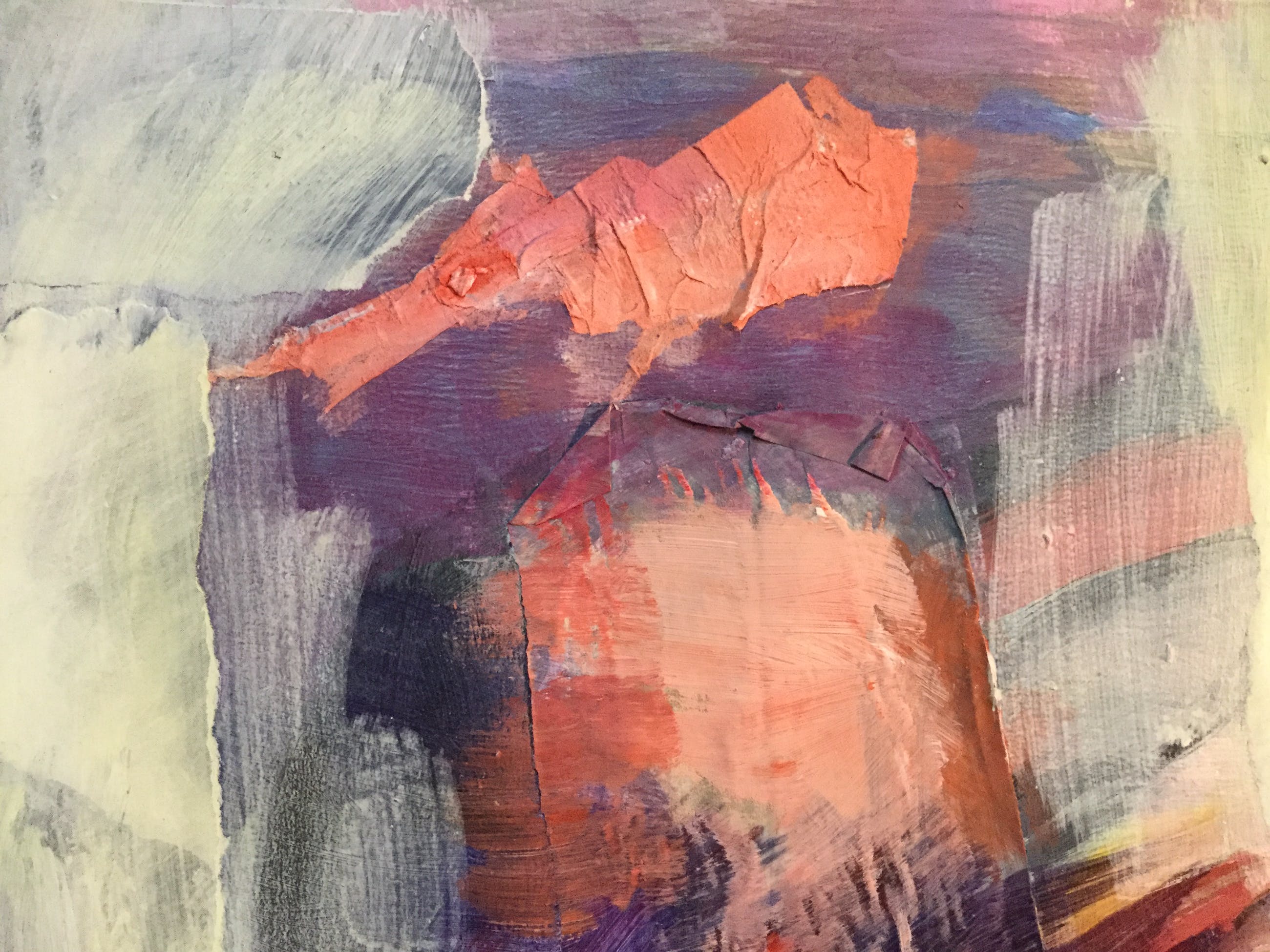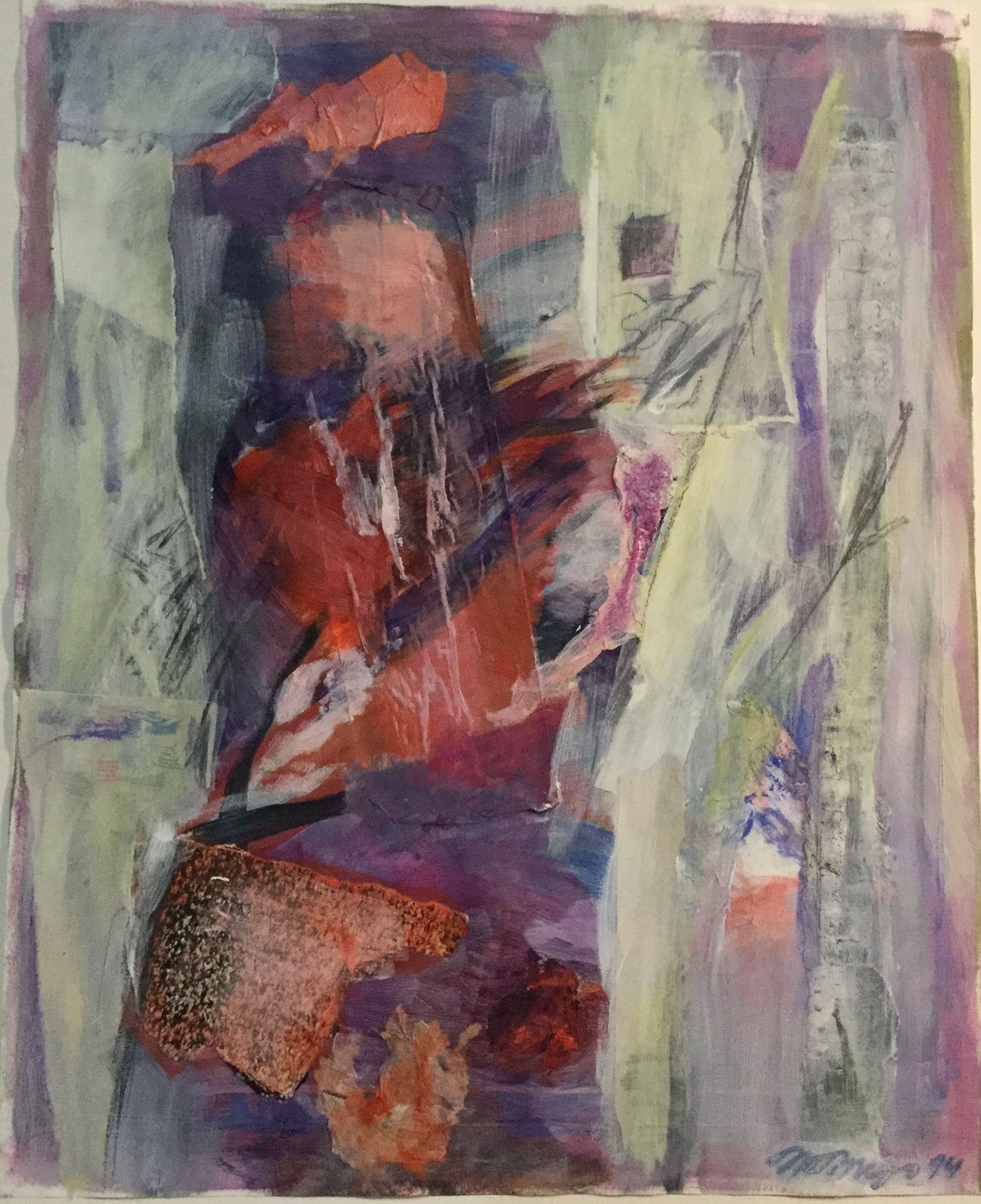 Het schilderij is met een gemengde techniek van acryl en papier gemaakt door Mary Meijs in 1994.