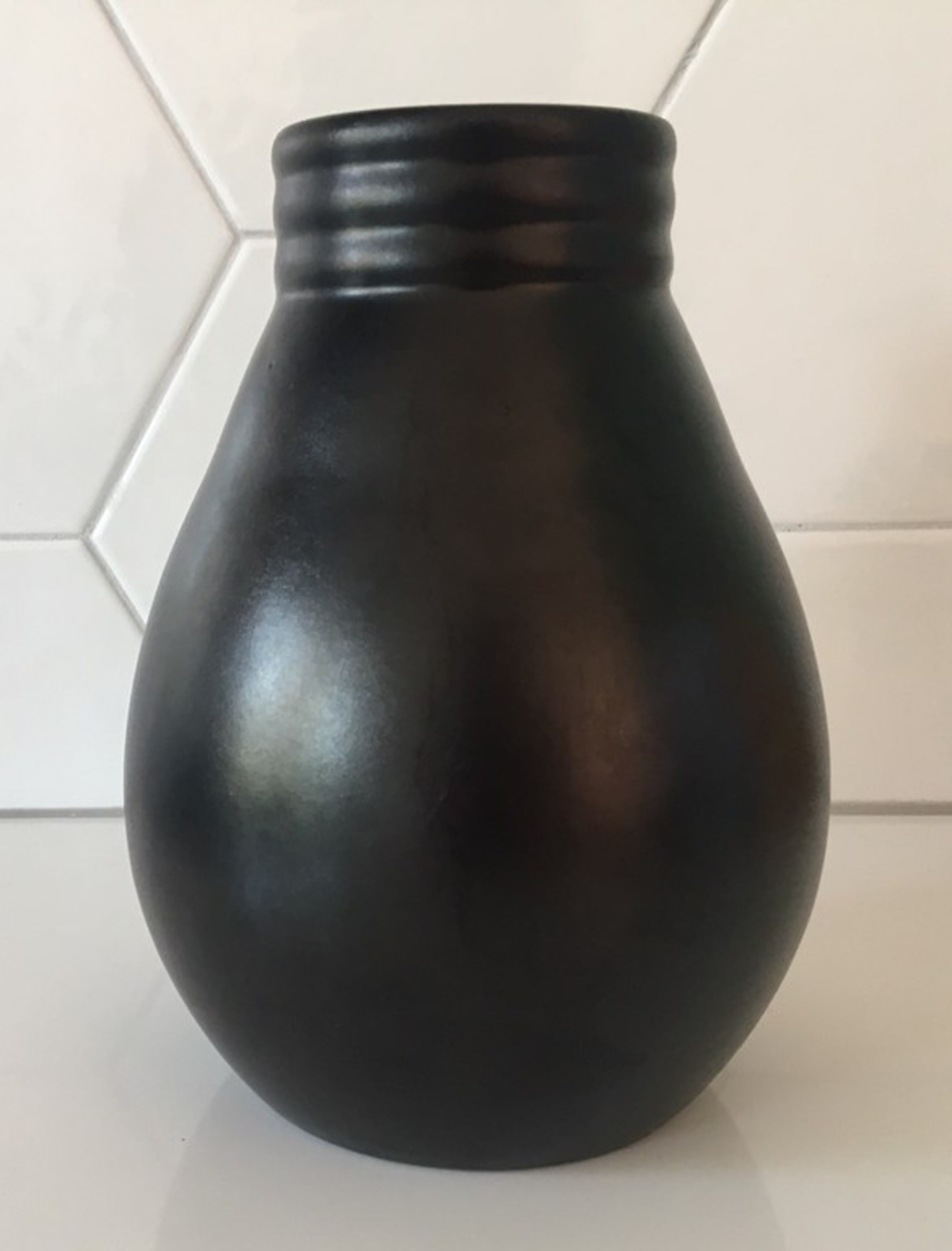 Mat zwarte art deco platelen vaas