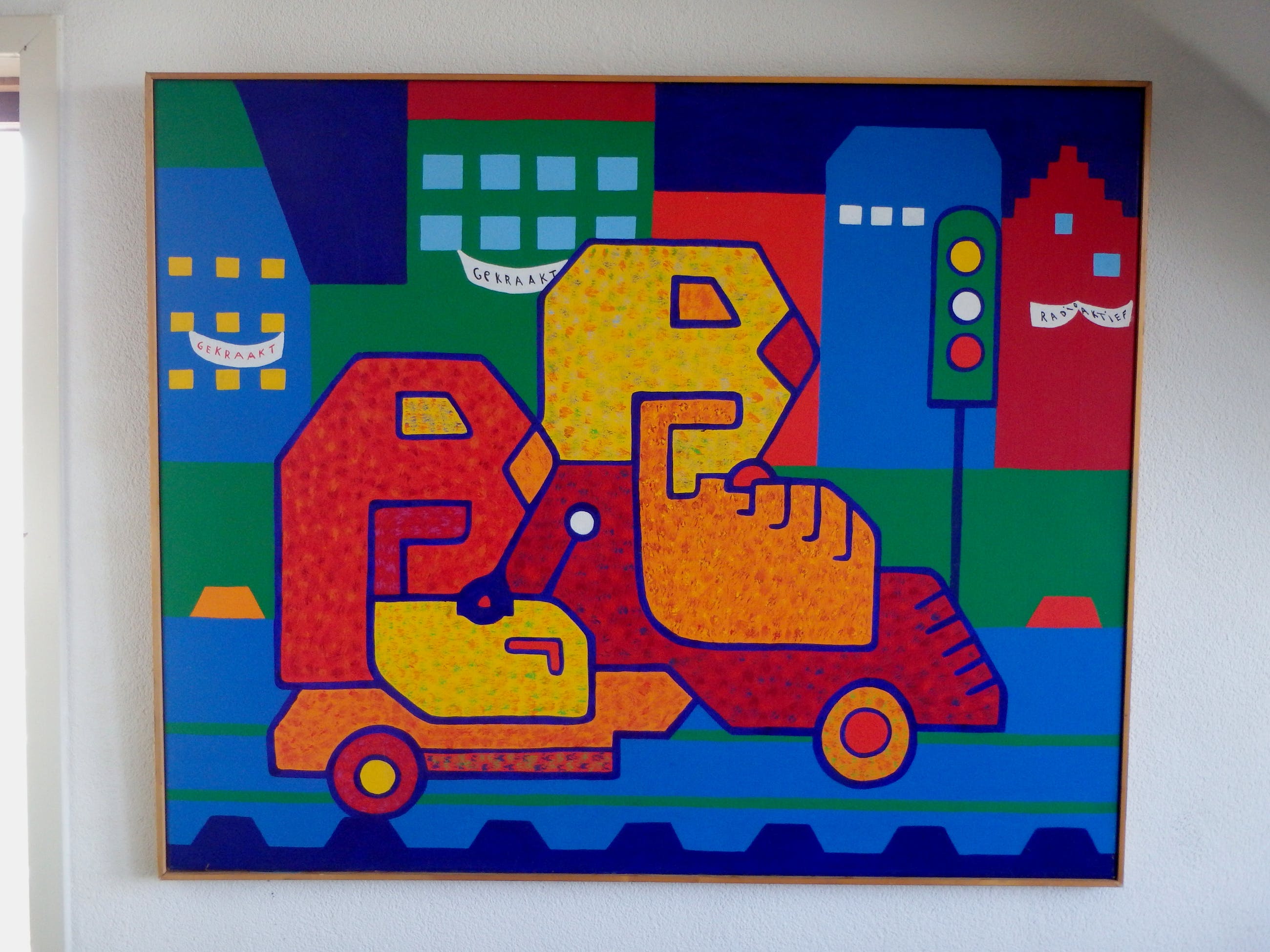 Het werk is af te halen op locatie. Als koper dient u zelf verpakkingsmateriaal mee te nemen. De locatie is: Alblasserdam, Nederland
