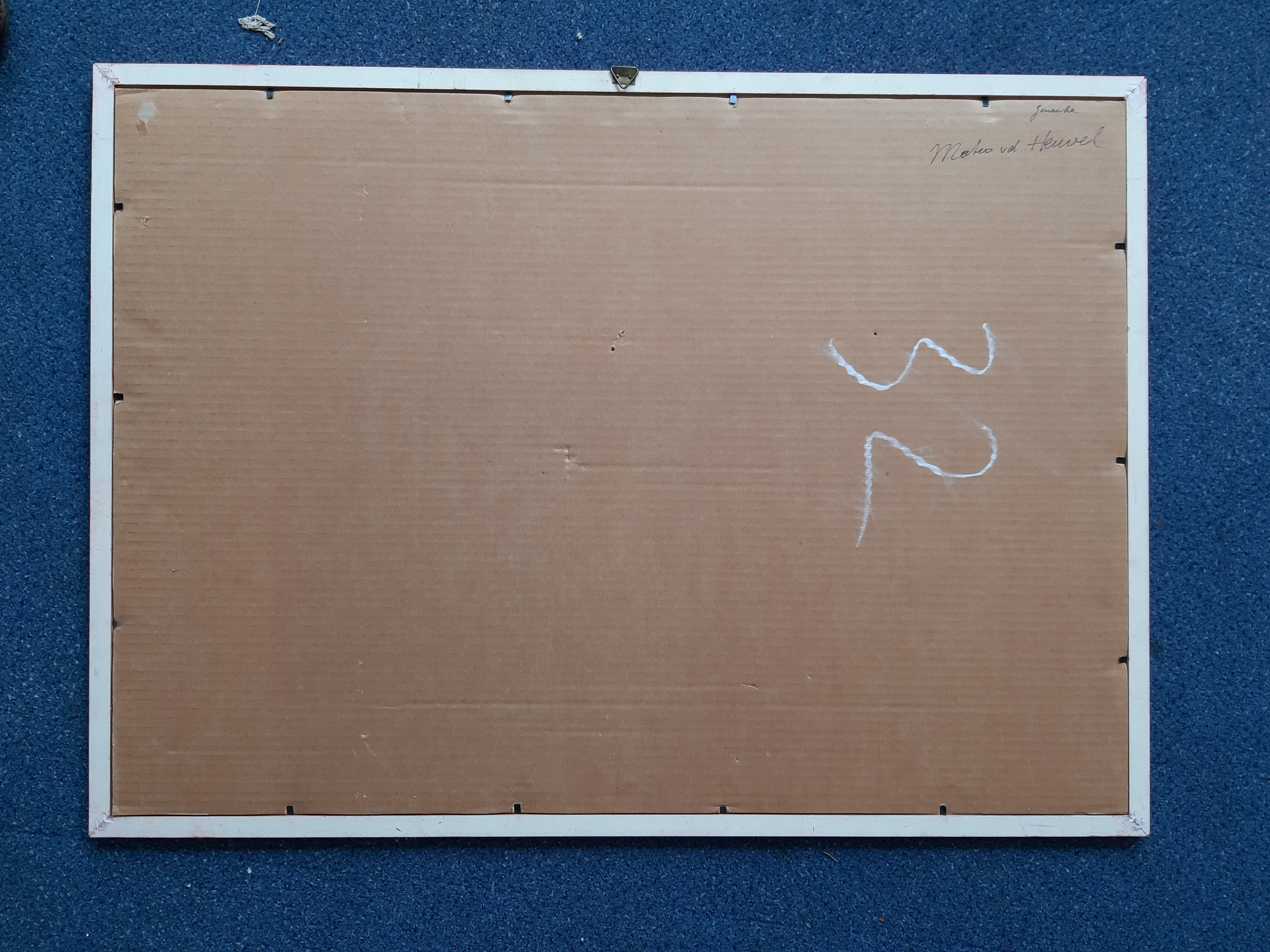 Leuk werk van deze reeds overleden Amsterdamse kunstenaar die in de jaren 70 en 80 actief was in de Amsterdamse kunstscene. Het werk is uit 1979 en achter perspex ingelijst in bijpassende rode lijst met lichte gebruiksschade.