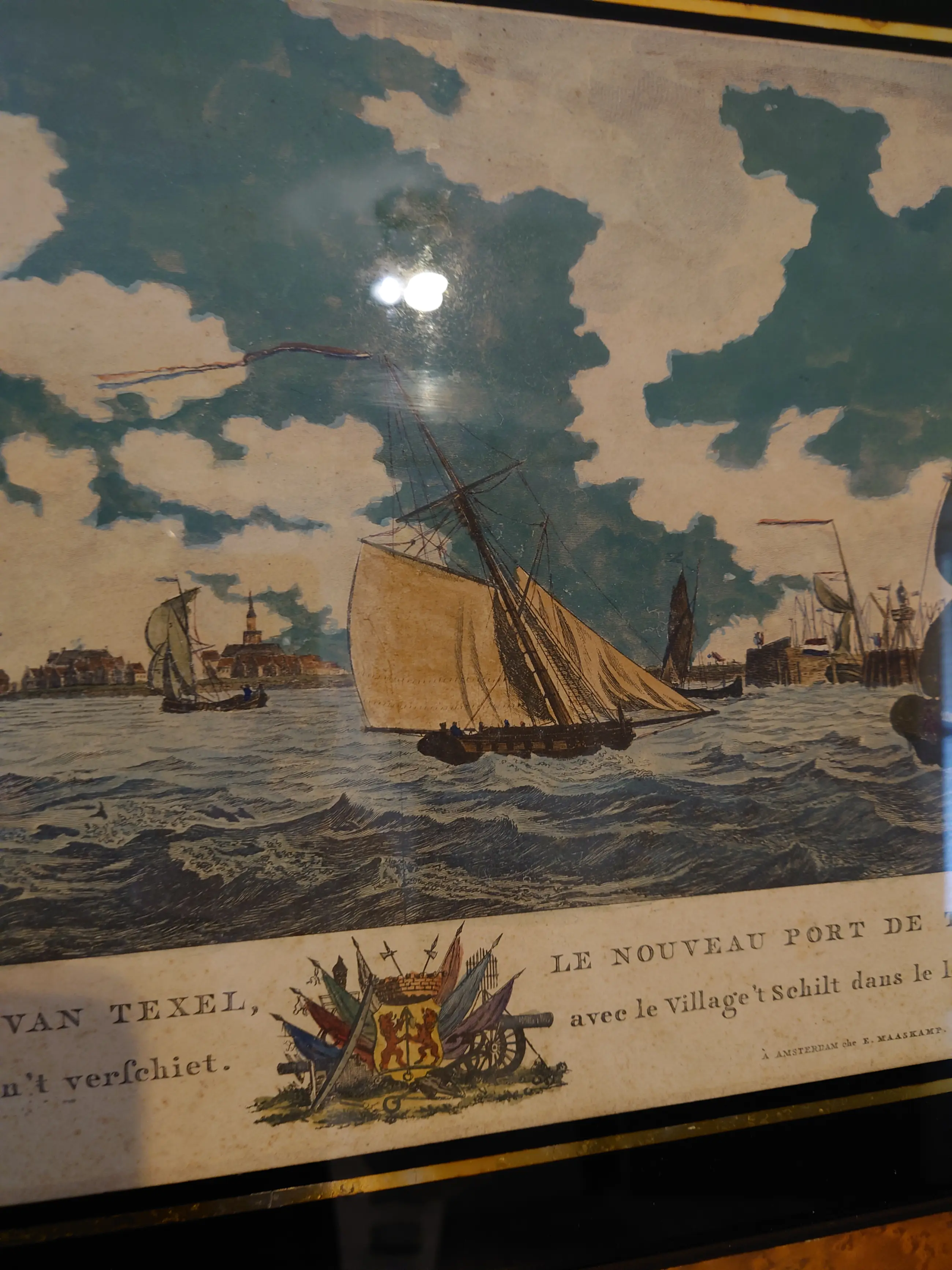 Naar het origineel van Dirk de Jong, M. Sallieth. Kopergravure, ingekleurd. Jaartal onbekend Uitgegeven door E. Maaskamp , Amsterdam Ingelijst achter glas.
