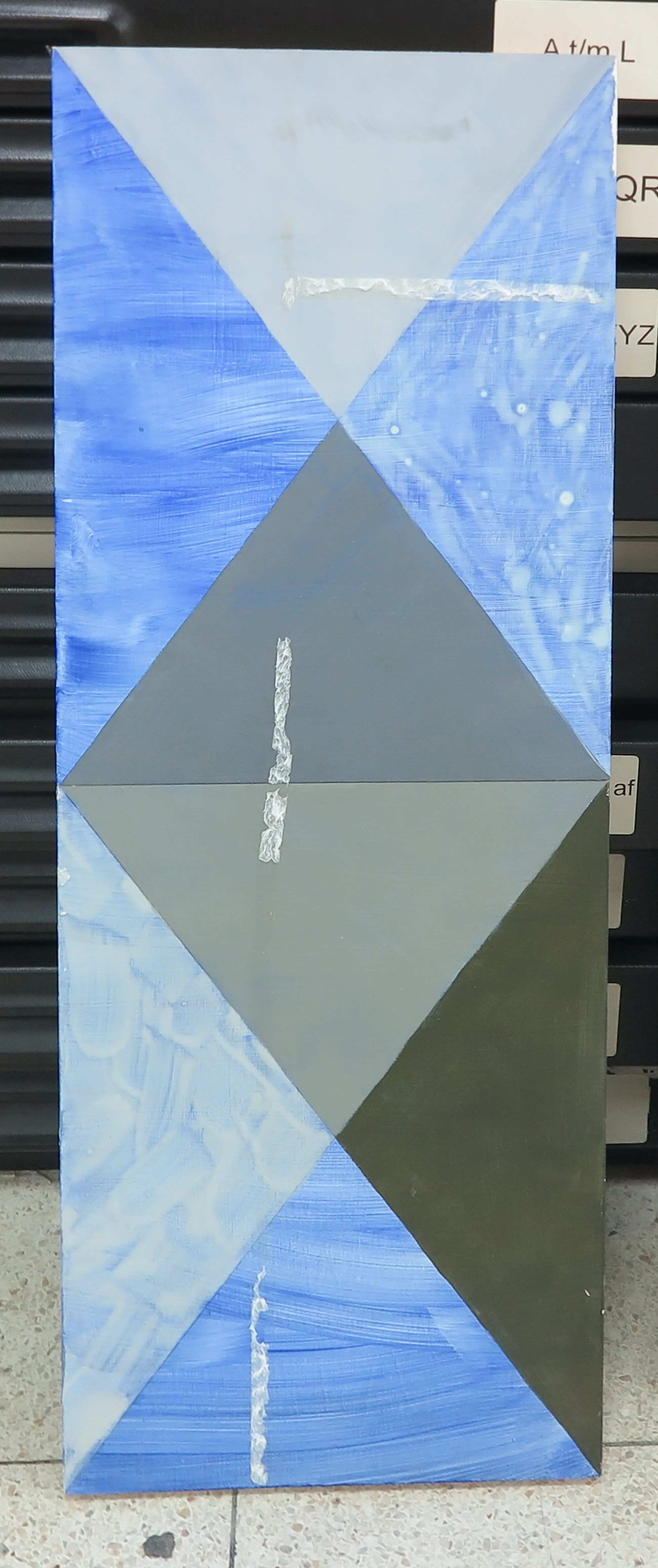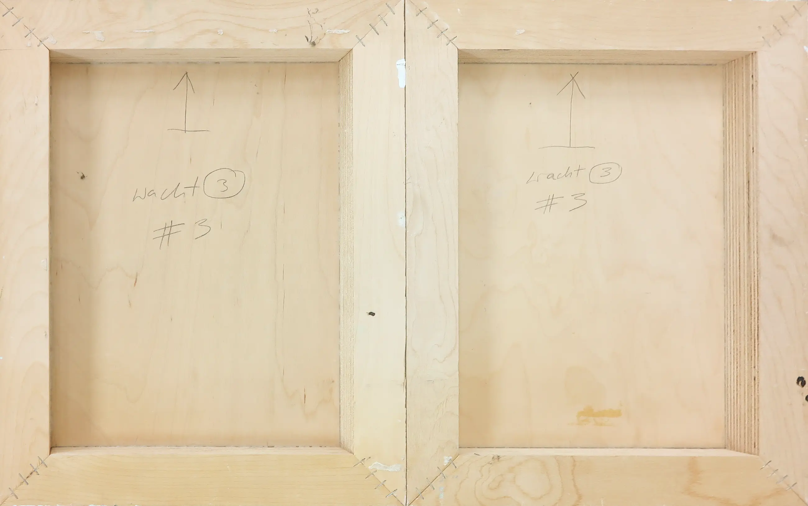 Let op: onduidelijk hoe het werk dient te worden opgesteld. De gegeven maten zijn van het bovenste paneel, het onderste luik heeft de volgende afmetingen: 40 x 64.5 cm. Het tweeluik tezamen is: 70 x 80.5 cm.