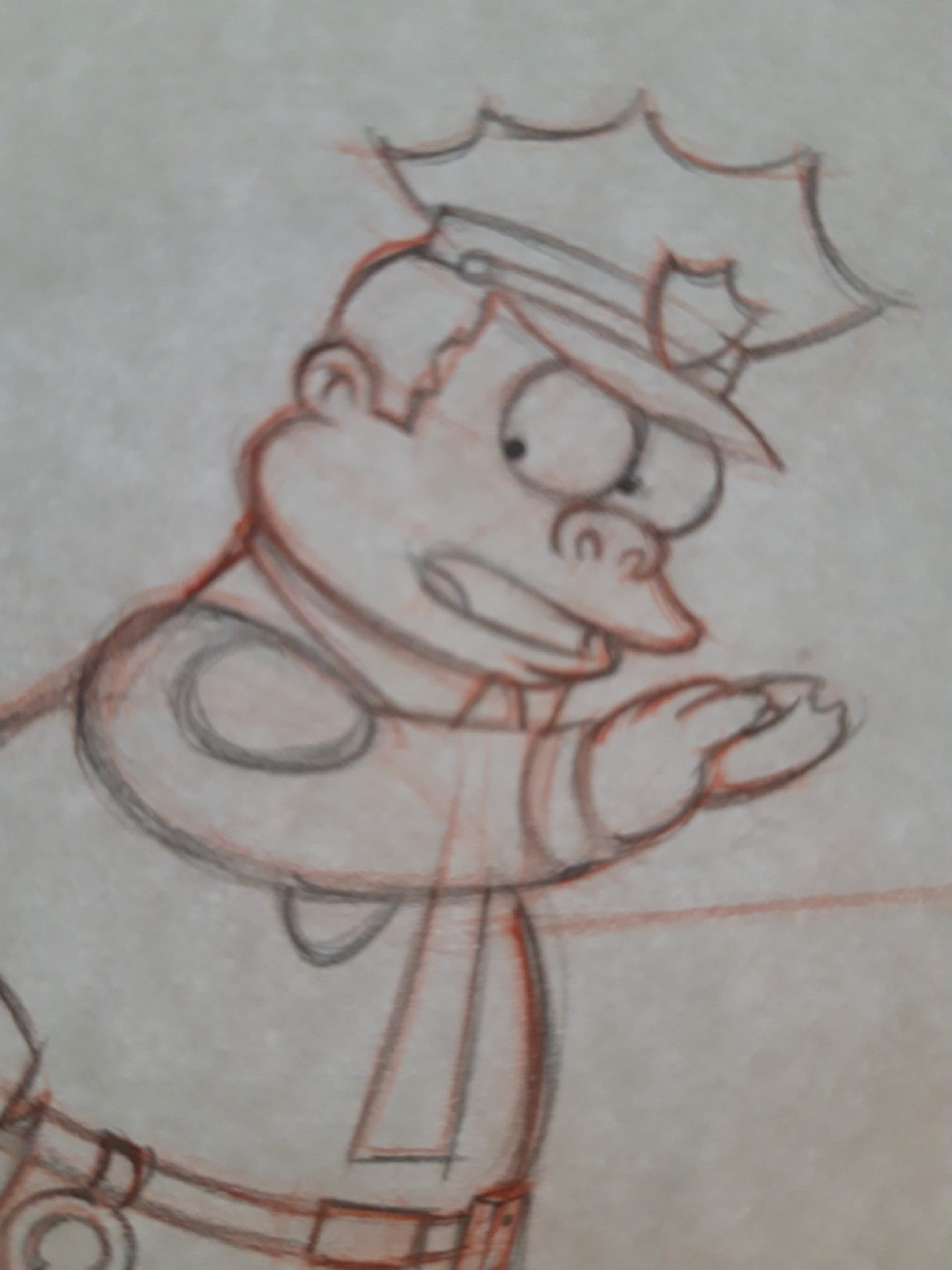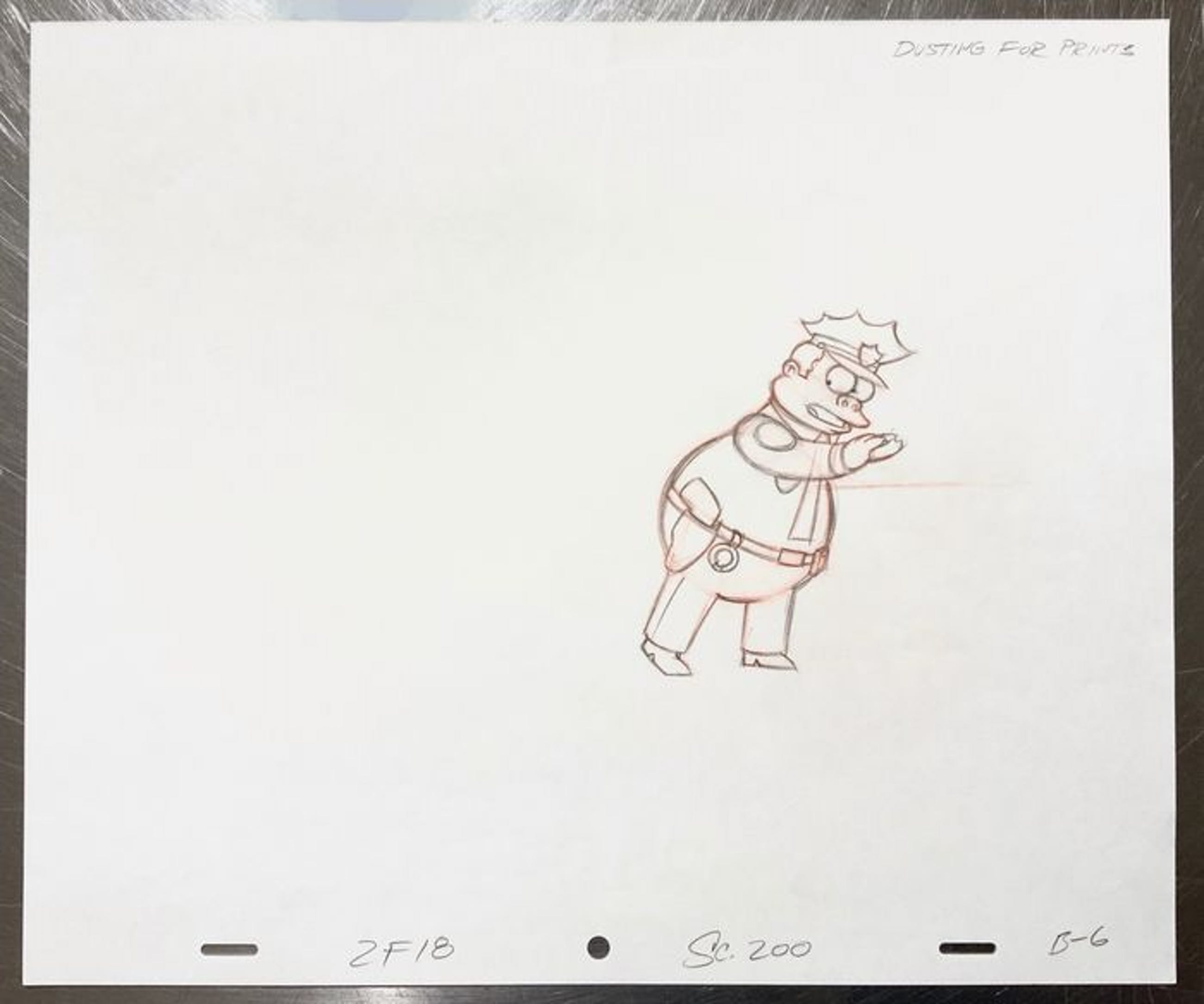Dit zijn originele tekeningen die werd gebruikt voor het maken van een aflevering van The Simpsons. Deze tekening is vervaardigd voor een aflevering begin jaren '90. De 2 tekening (laatste foto) is een schets waarmee de andere tekening kon gemaakt worden Titel: Chief Wiggum, dusting for prints