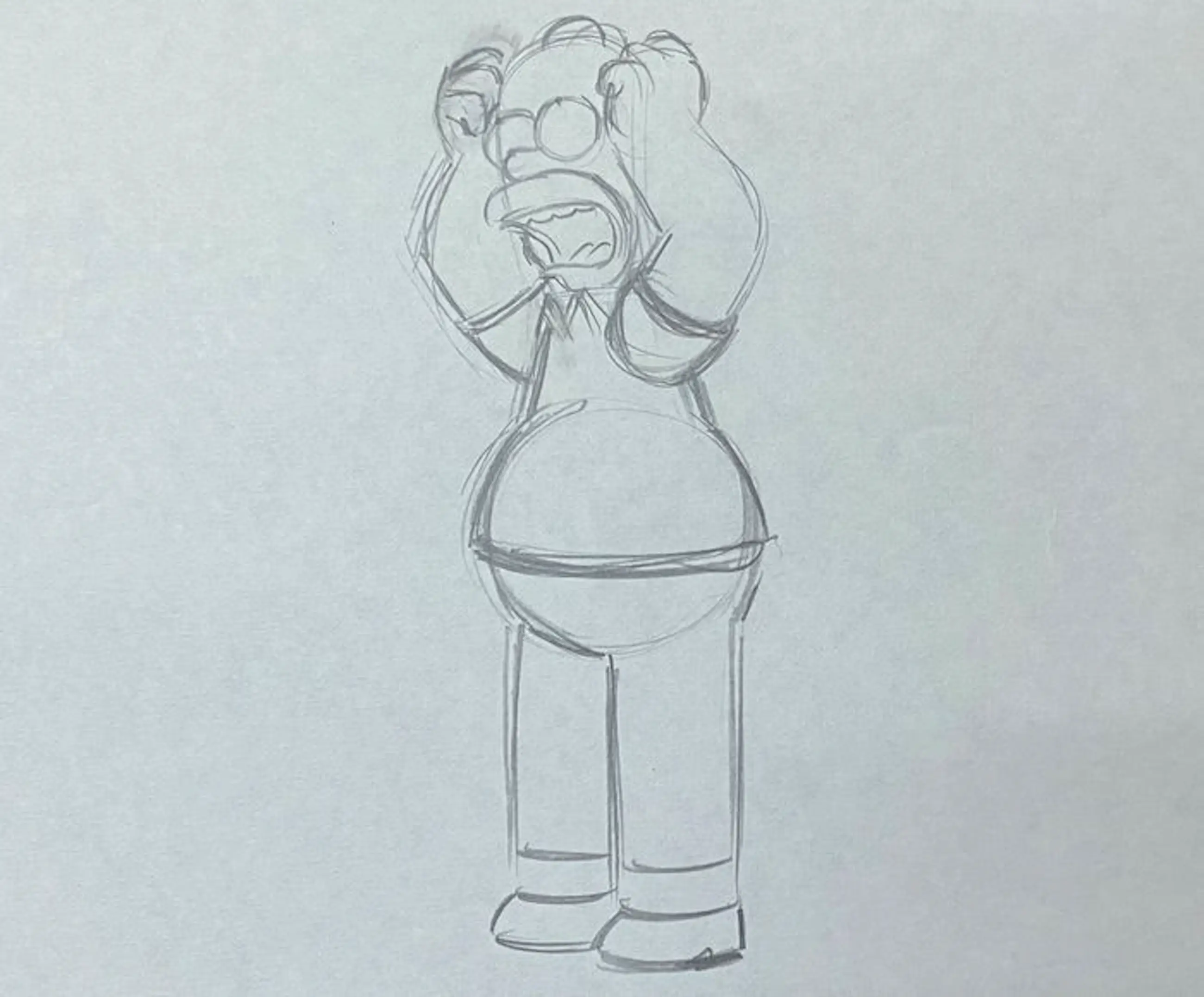 Dit is een originele tekening die werd gebruikt voor het maken van een aflevering van The Simpsons. Deze tekening is vervaardigd met potlood voor een aflevering die voor het eerst werd uitgezonden in 1995.