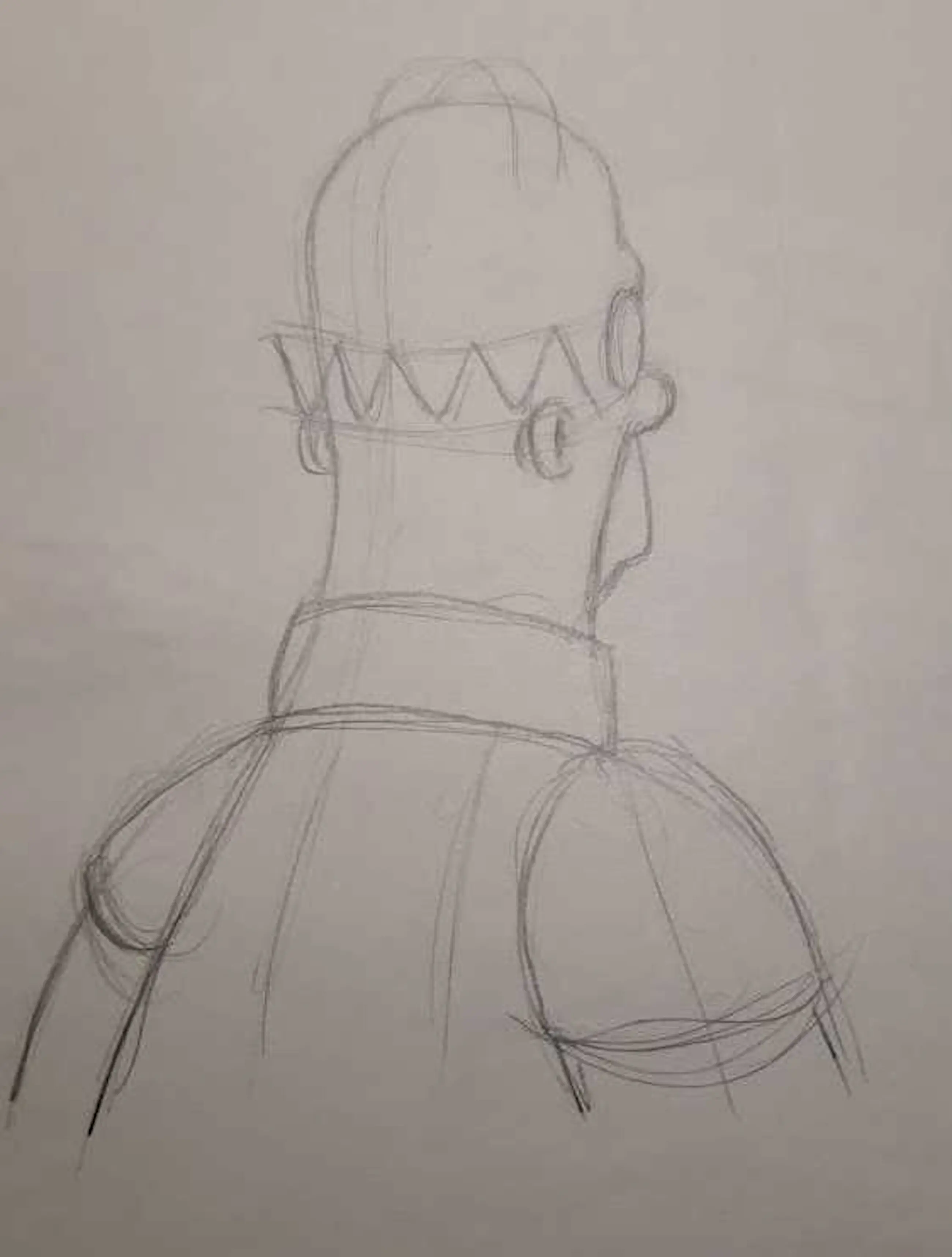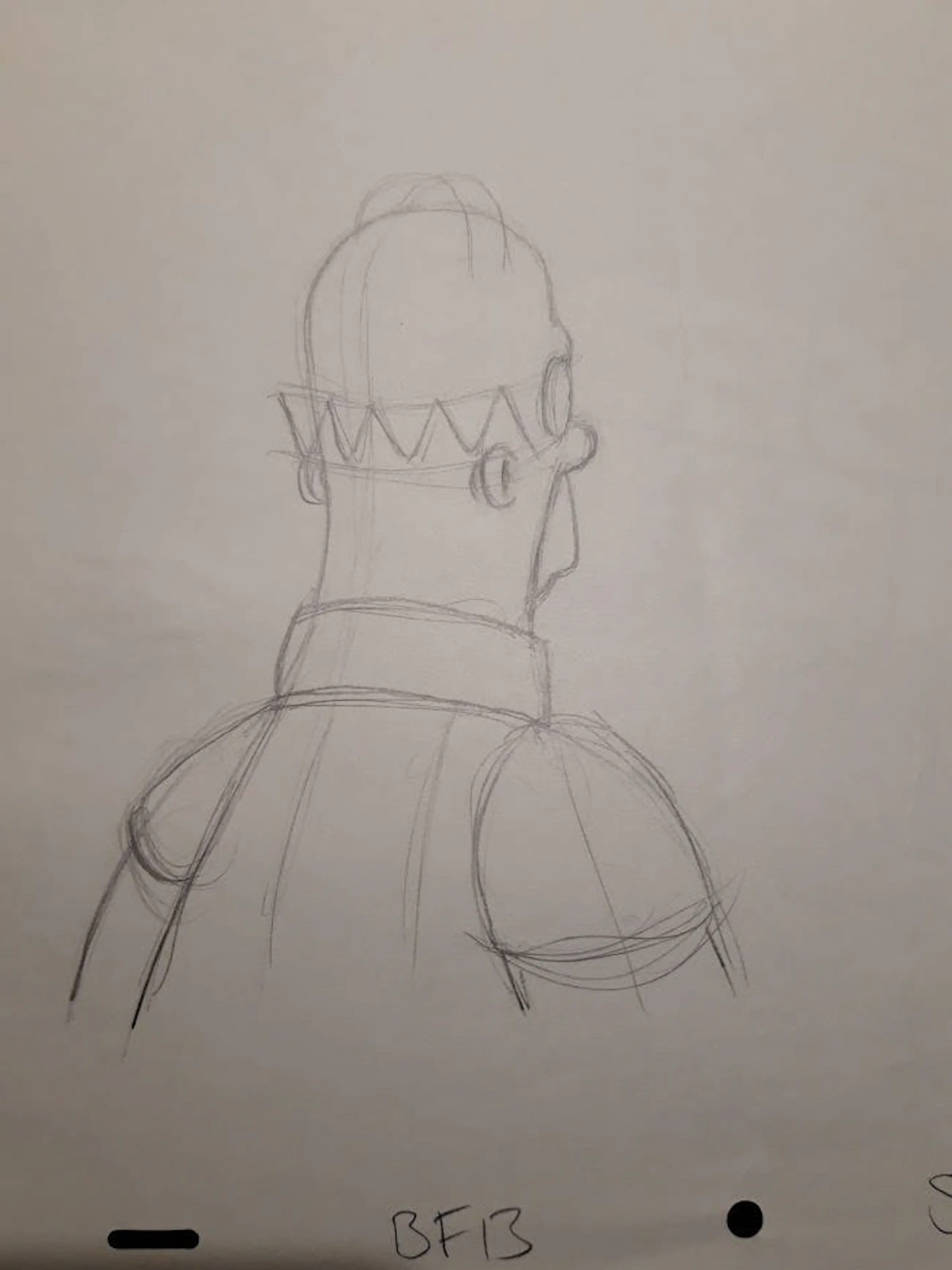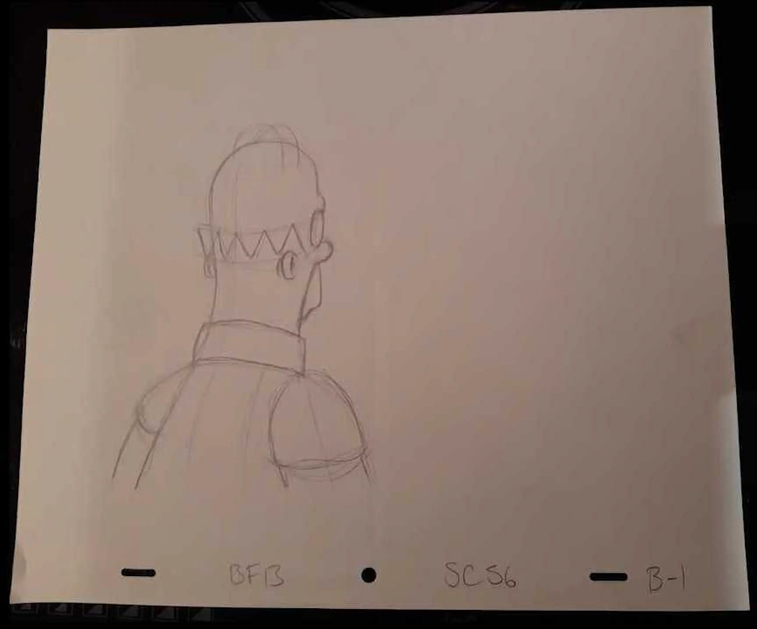 Dit is een originele tekening die werd gebruikt voor het maken van een aflevering van The Simpsons . Deze tekening is vervaardigd met potlood voor een aflevering begin jaren '90. Onderaan vind je nog referenties die linken naar de aflvering en het fragment waarvoor deze tekening werd gemaakt.