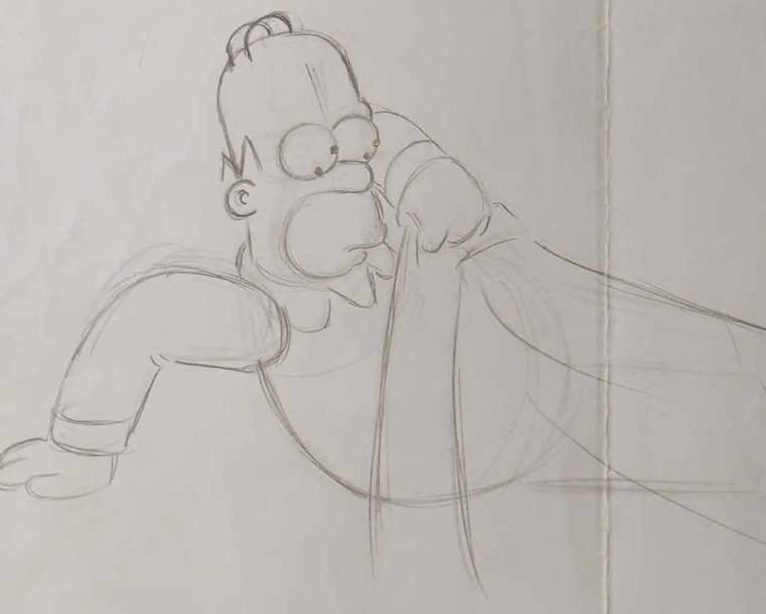 Dit is een originele tekening die werd gebruikt voor het maken van een aflevering van The Simpsons . Deze tekening is vervaardigd met potlood voor een aflevering begin jaren '90. Onderaan vind je nog referenties die linken naar de aflvering en het fragment waarvoor deze tekening werd gemaakt.