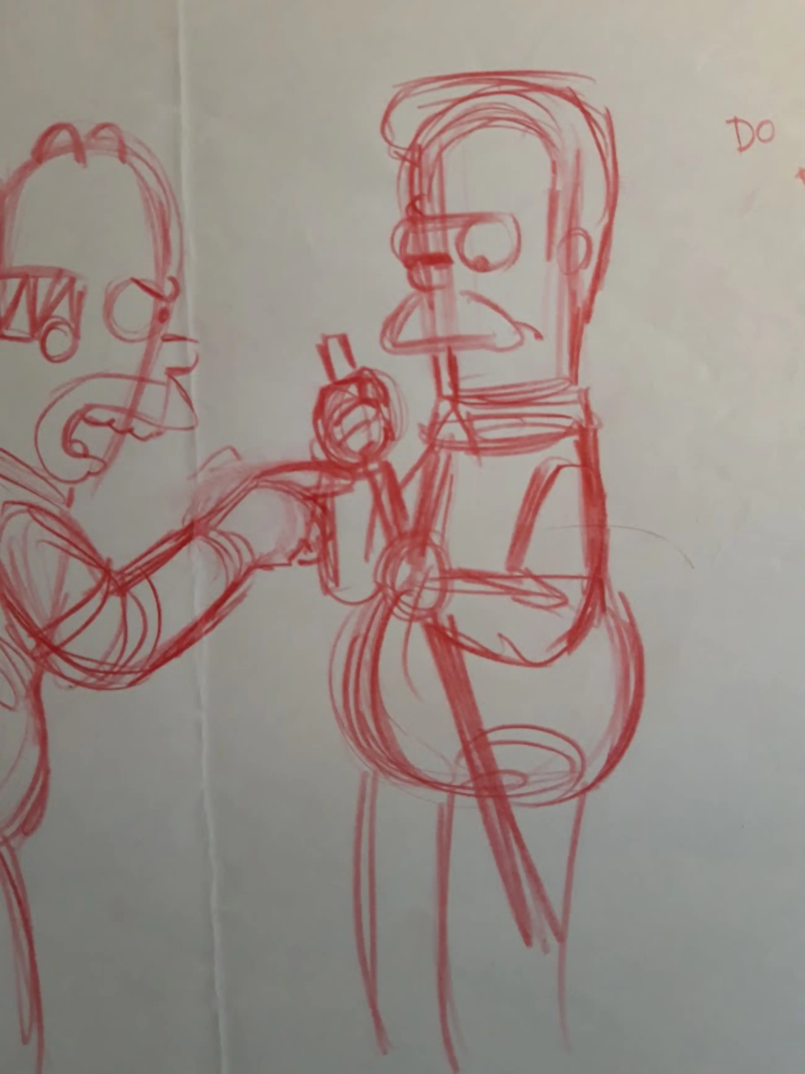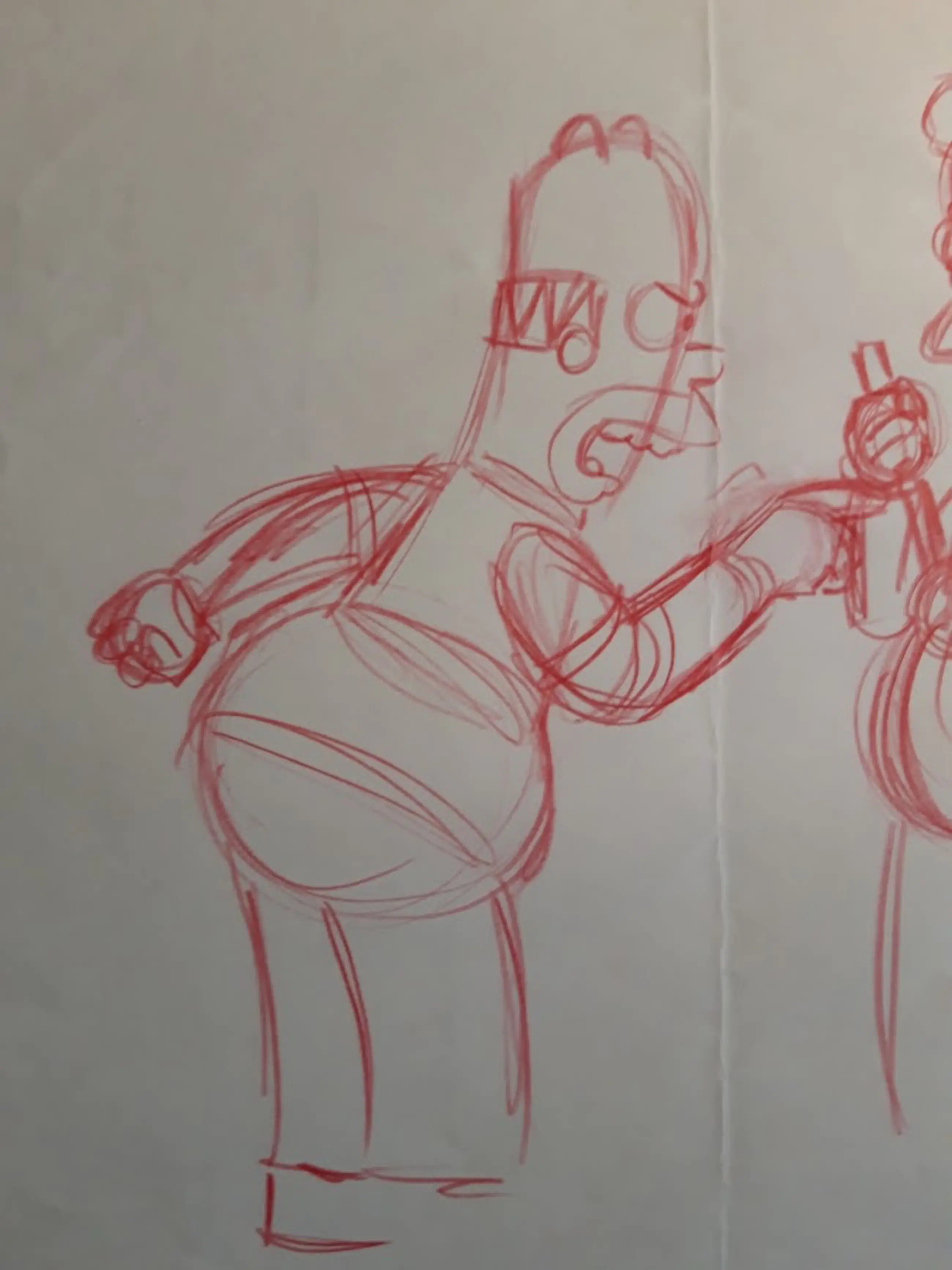 Dit is een originele tekening die werd gebruikt voor het maken van een aflevering van The Simpsons. Deze tekening is vervaardigd met potlood voor een aflevering begin jaren '90.