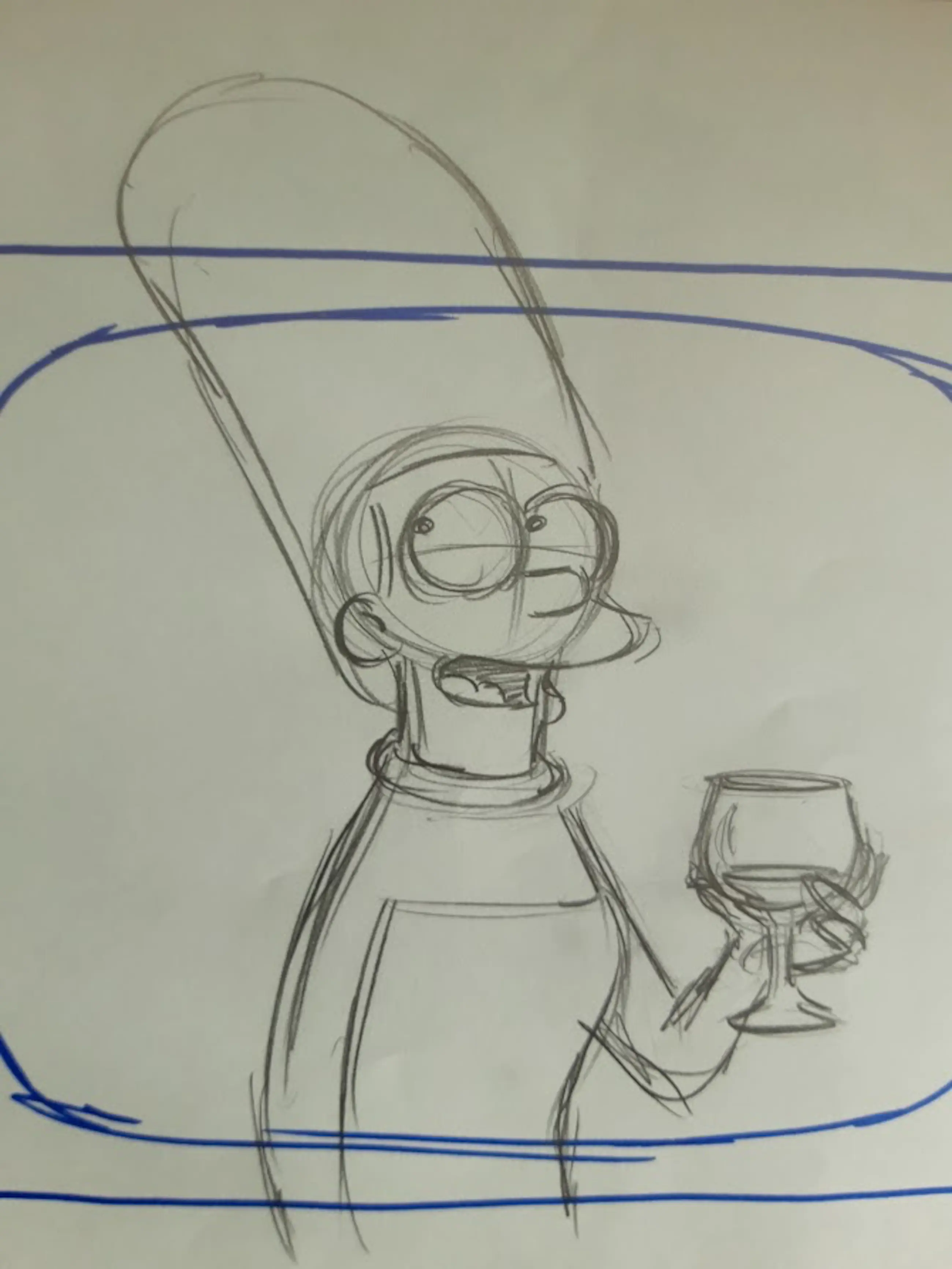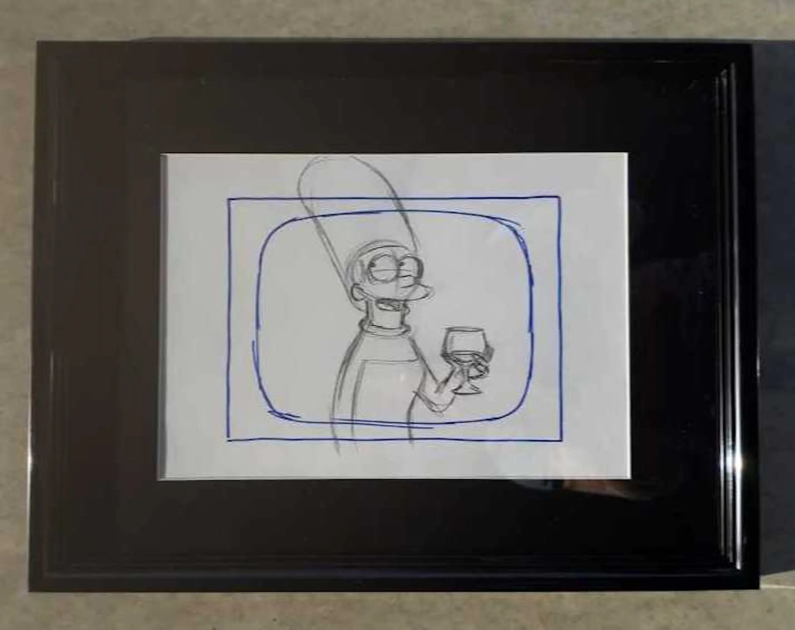 Dit is een originele tekening die werd gebruikt voor het maken van een aflevering van The Simpsons. Deze tekening is vervaardigd met potlood voor een aflevering begin jaren '90. Het is een uniek exemplaar en met de hand gemaakt.