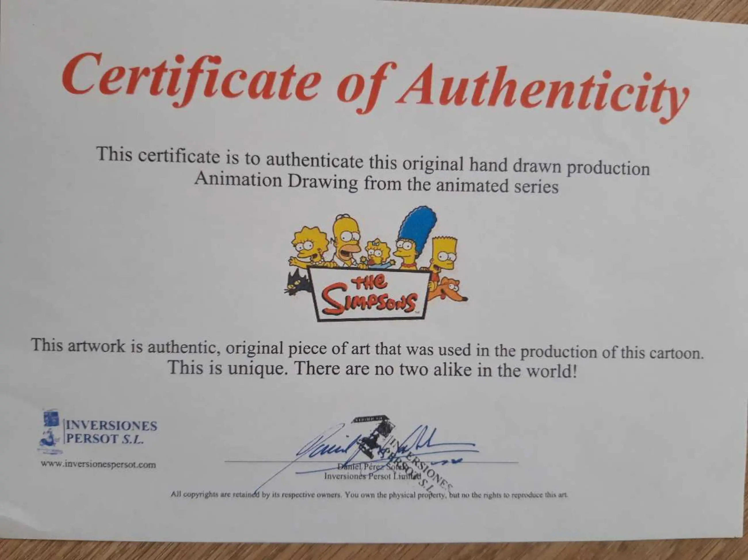 Echtheidscertificaat (laatste foto) en glazen lijst (2de foto) zijn inbegrepen.