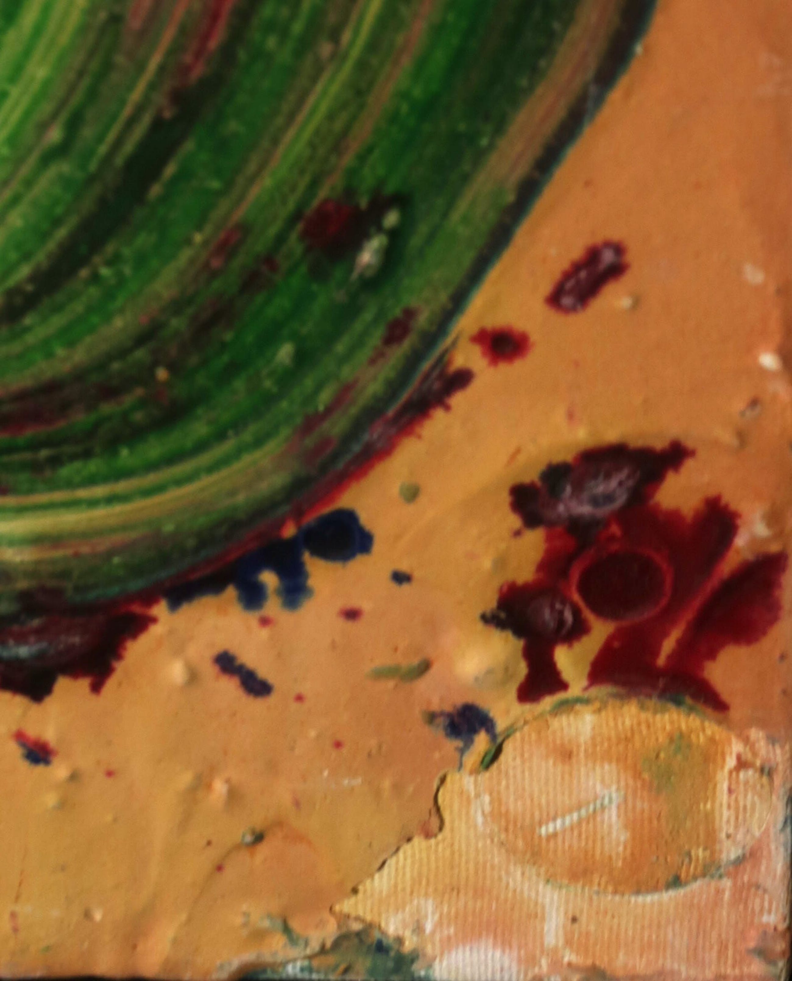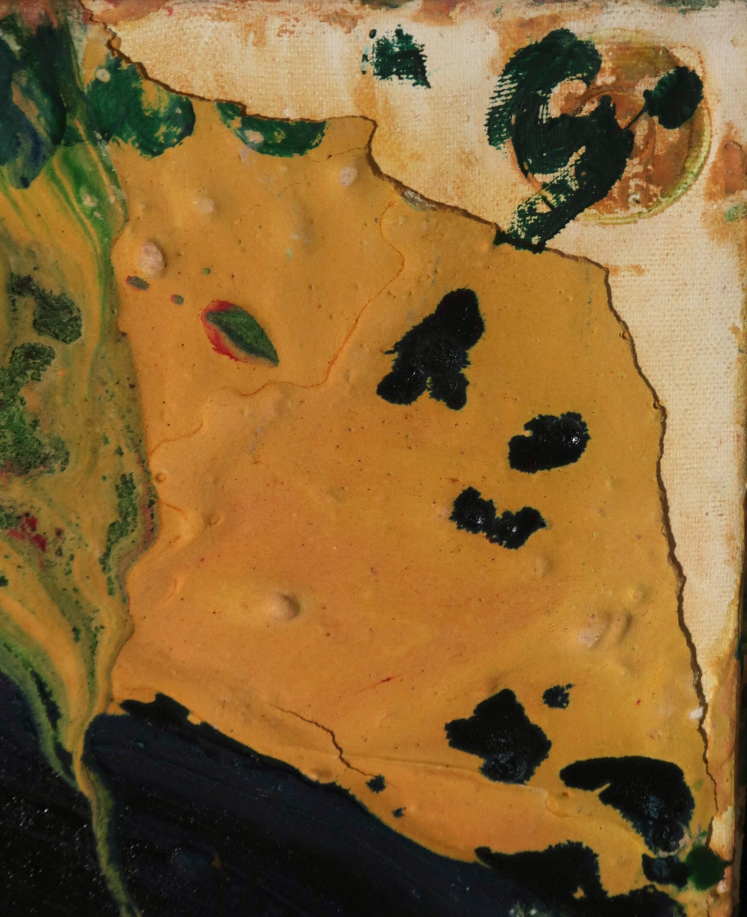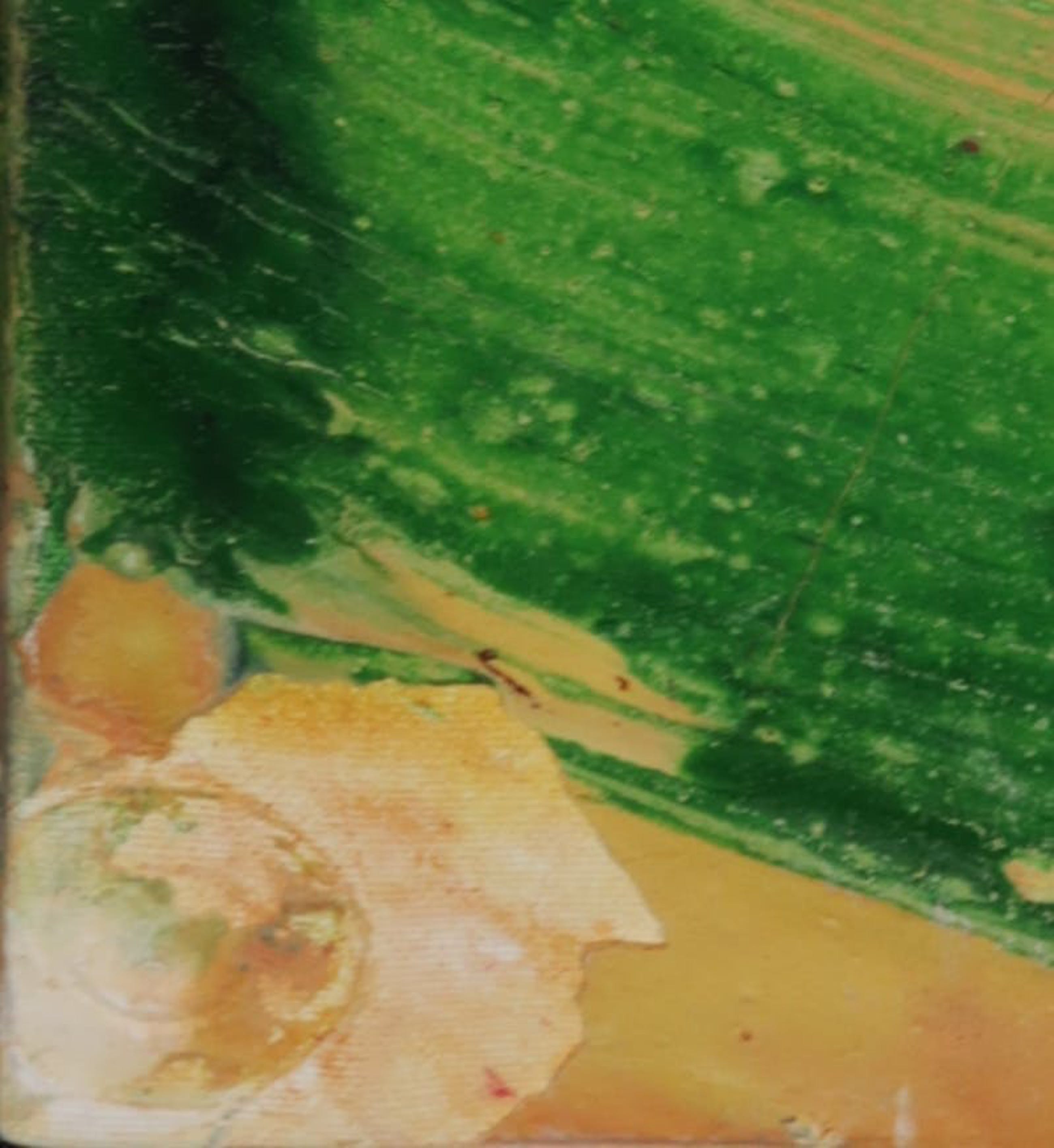 | Links, rechtsboven en linksonder in de hoek is er verf afgebroken. Bovenaan (groene verf) ontbreekt een stukje verf. Daarnaast is over het gehele doek een lichte vorm van craquelé zichtbaar (zie foto's). | |