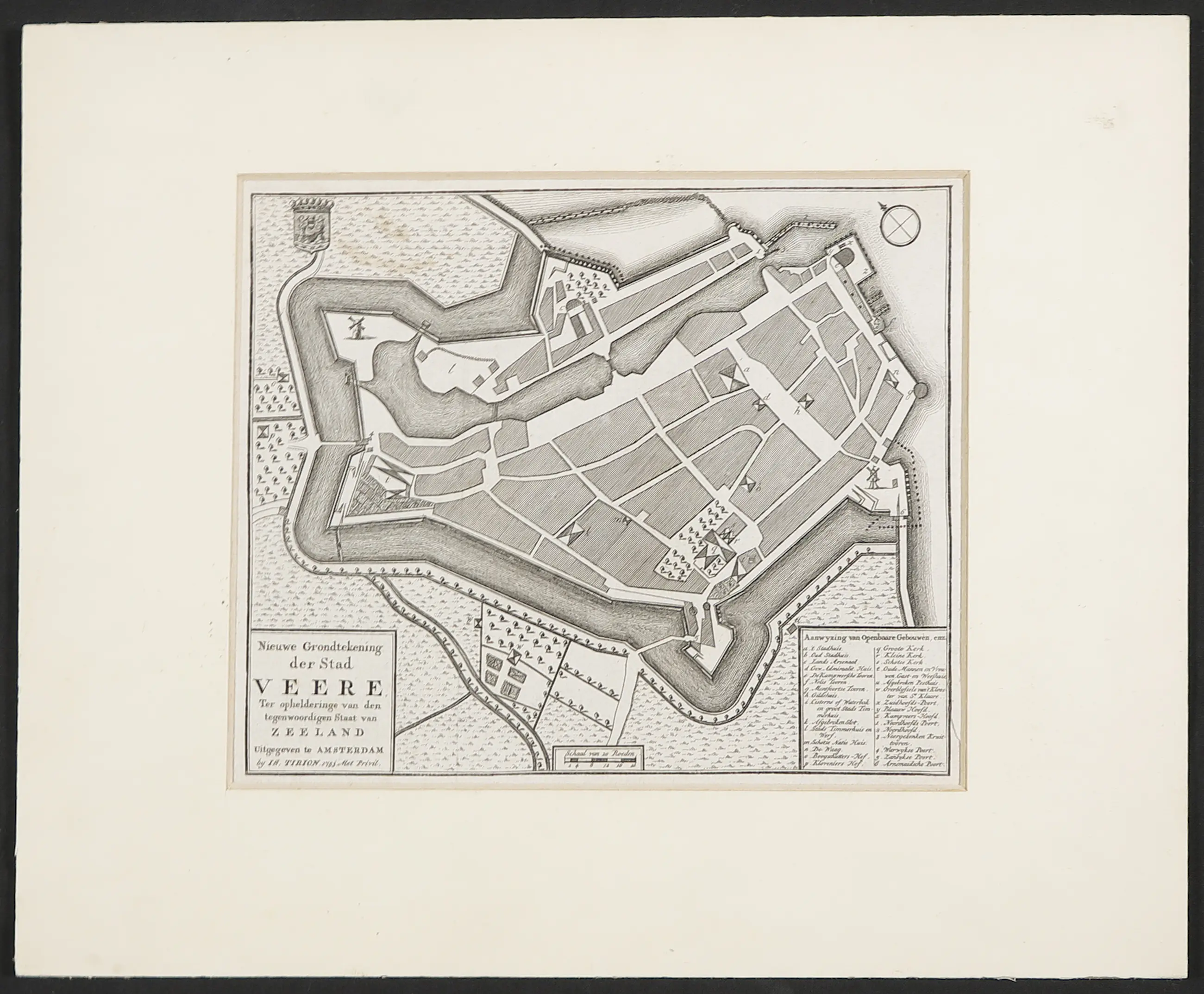 3) Isaac Tirion, Nieuwe Grondtekening der Stad Veere, 1753 (afmeting zonder passe-partout: 17,5 x 22 cm)