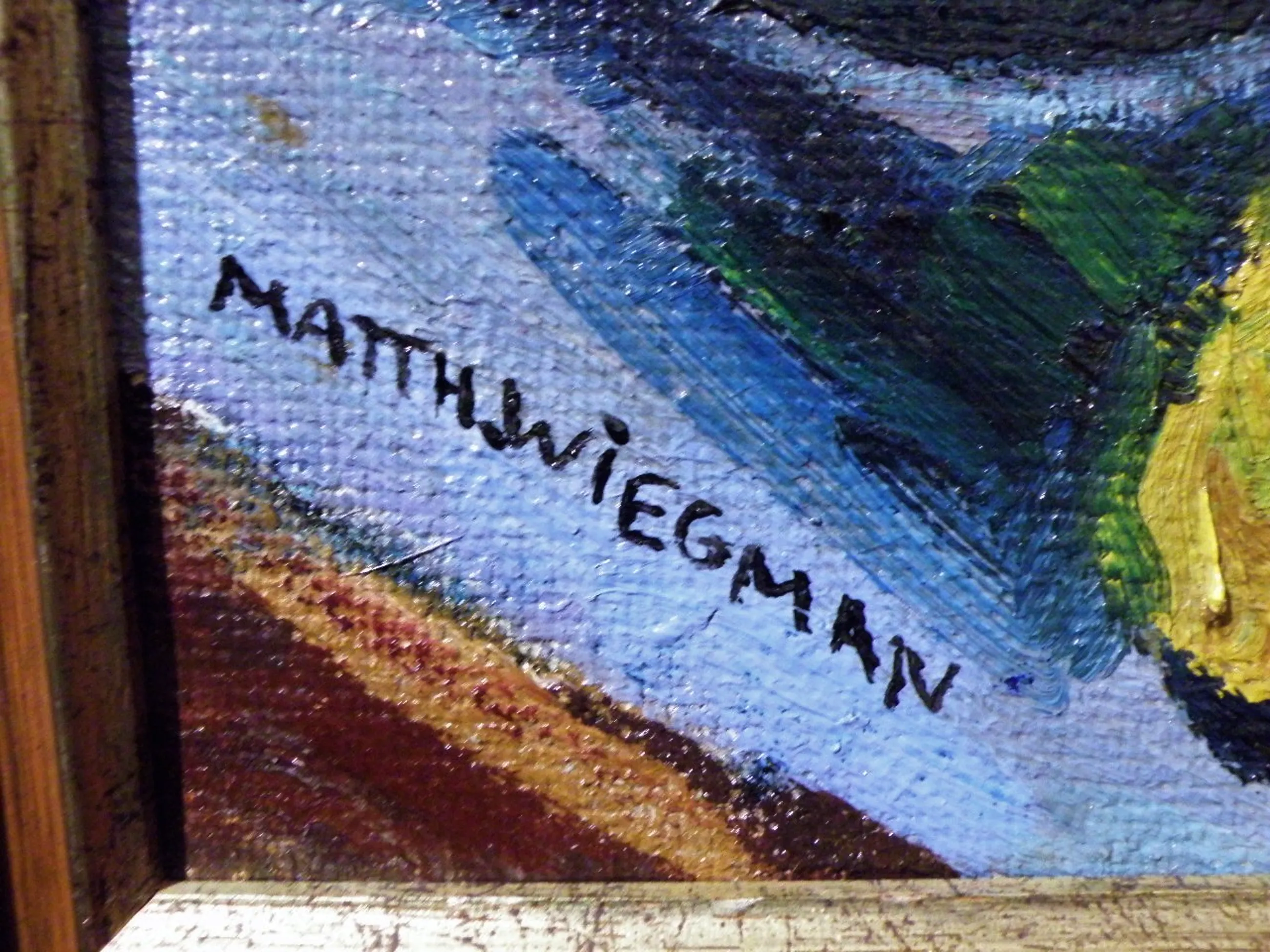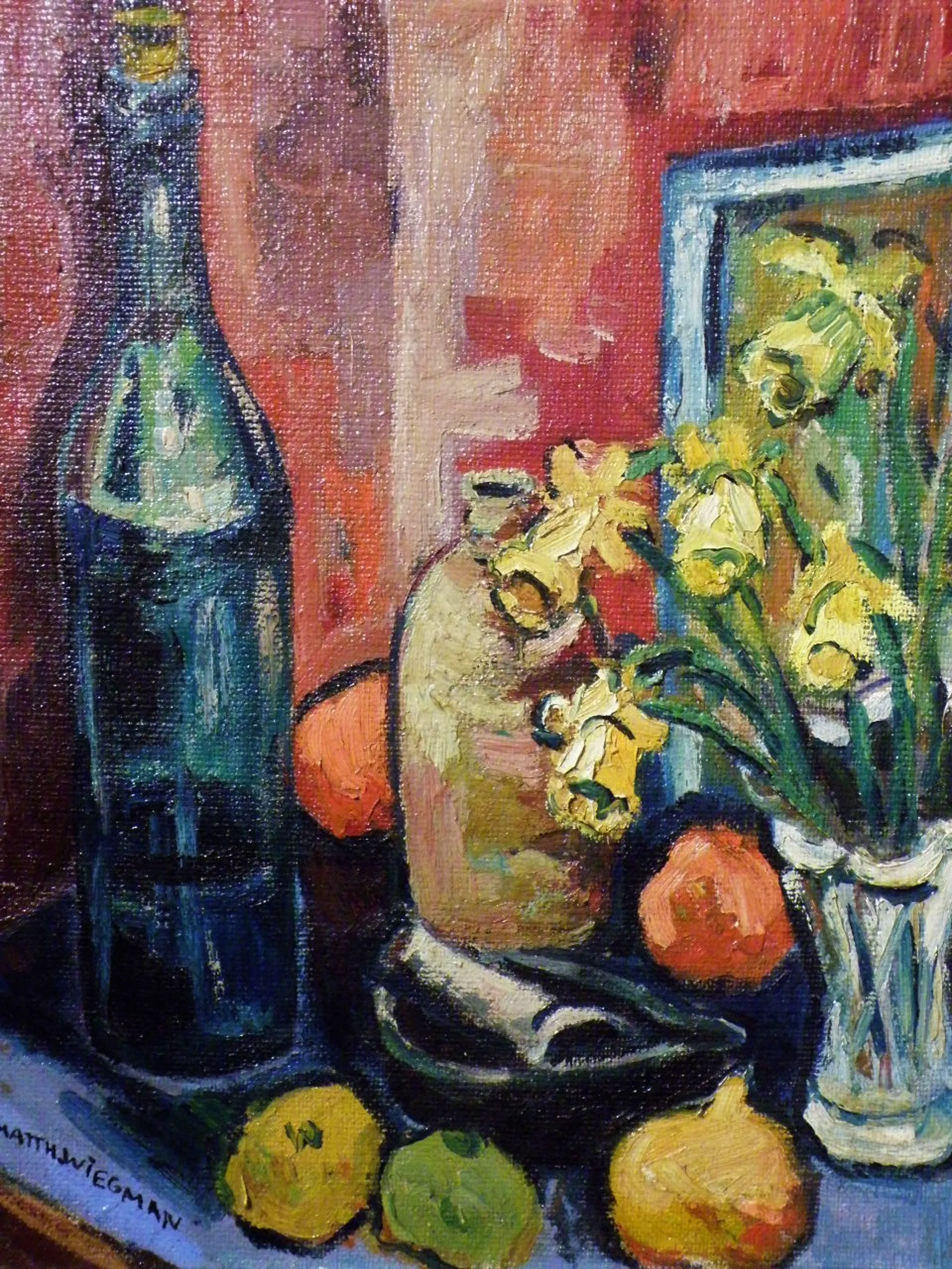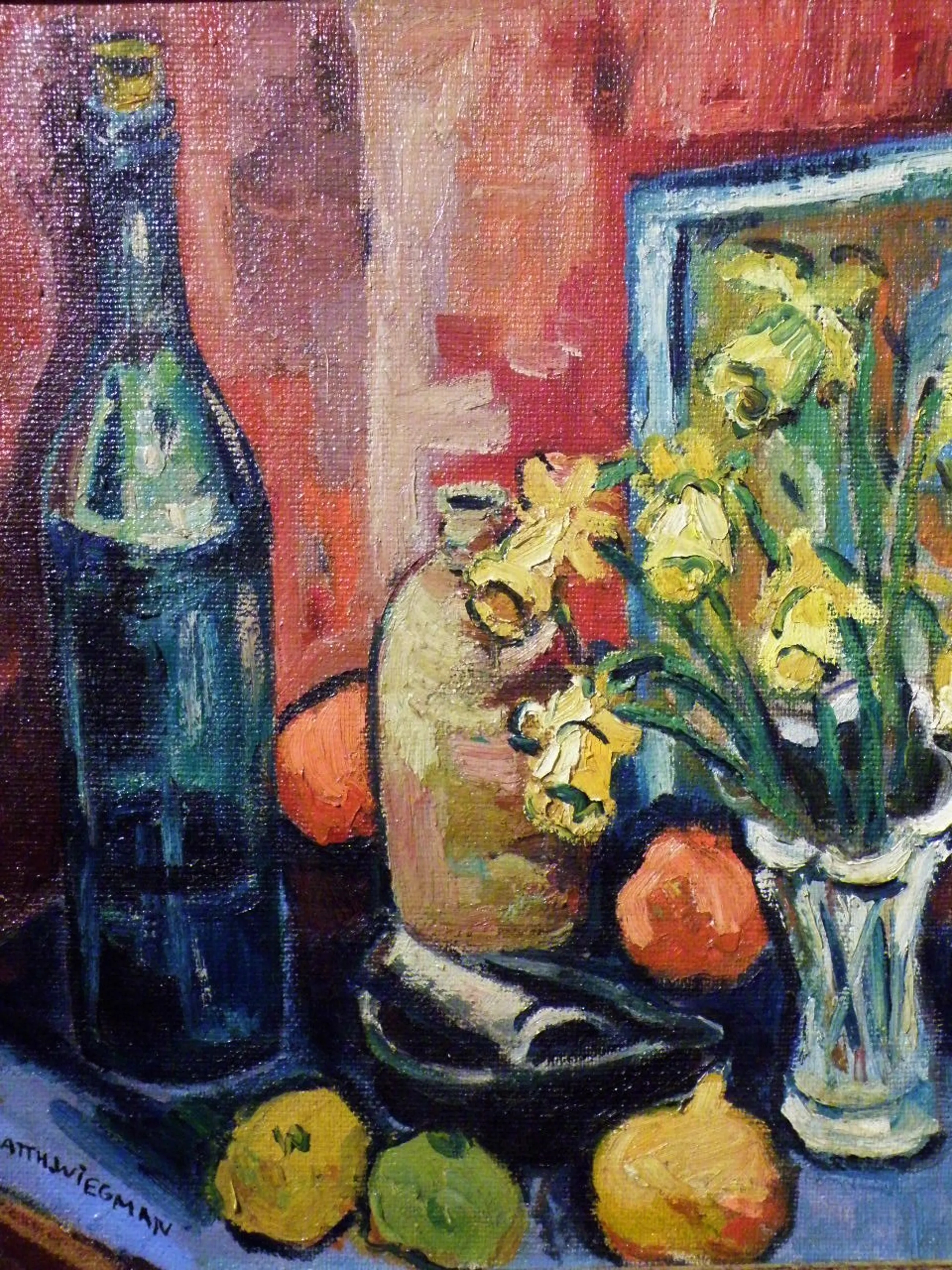 Matthieu Wiegman, broer van Piet Wiegman, was een belangrijk Nederlands expressionist. Hij kreeg zijn opleiding aan de Rijksacademie in Amsterdam en trok daarna in 1911 naar Bergen, waar hij zicht ontwikkelde tot een van de toonaangevende schilders van de Bergense School. Wiegman schilderde vooral figuren, landschappen en stillevens. Soms toont zijn werk in het gebruik van warme, bijna vrolijke kleuren invloed van de Franse schilder Cézanne. In zijn latere leven bracht Wiegman veel tijd in Frankrijk door. Hij maakte ook monumentale wandschilderingen, mozaïeken en glas-in-lood-ramen, dikwijls met religieuze onderwerpen.