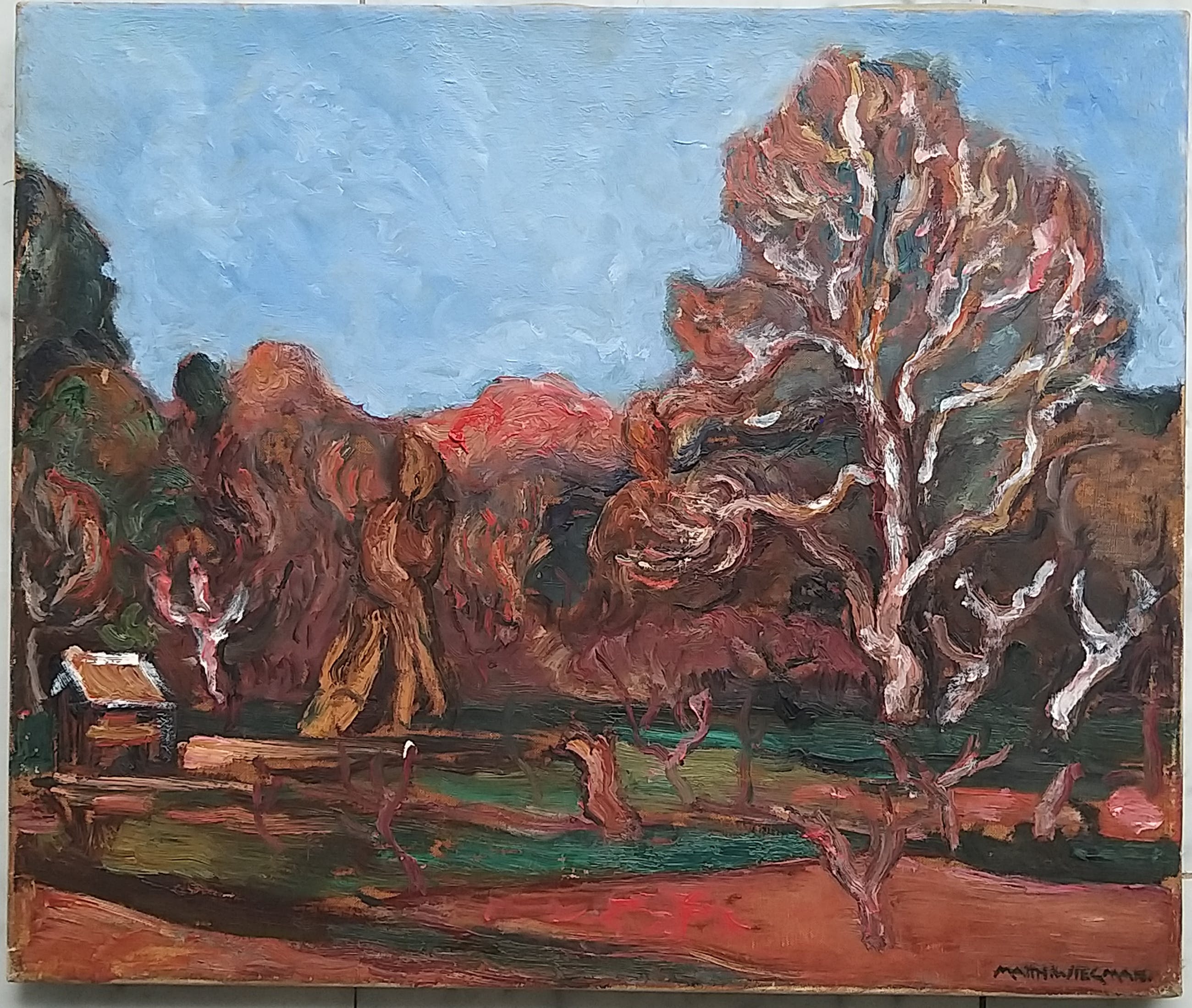 Matth .Wiegman een zeer kermerkend Bergensche school schilderij niet ingelijst. schilderij is pas schoongemaakt . voor eventuele verdere fotos kunt u mij mailen . schilderij is in een goede tot zeer goede conditie uiteraard naar leeftijd.