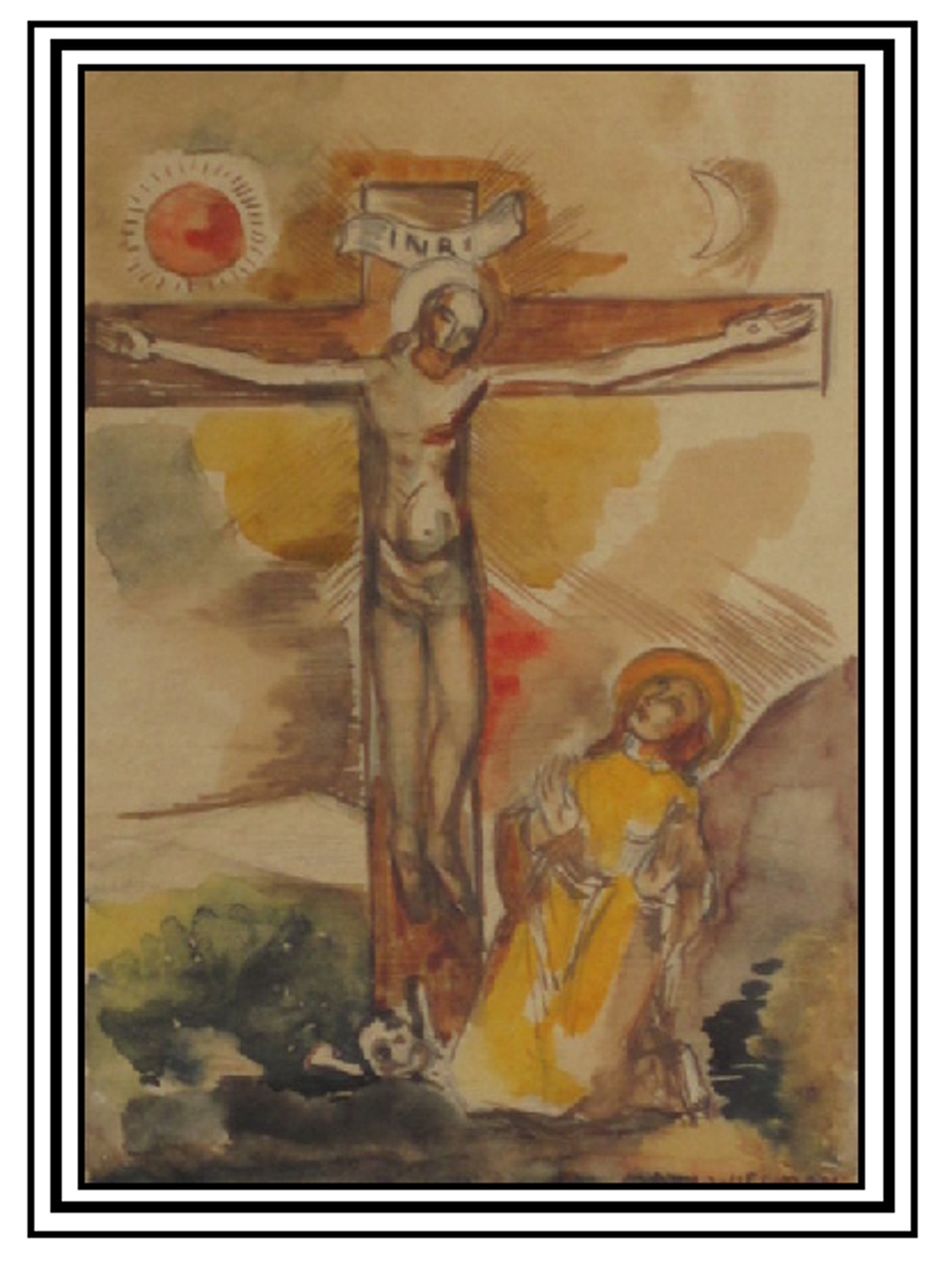 Kleine aquarel van de Bergense school schilder Matthieu Wiegman....