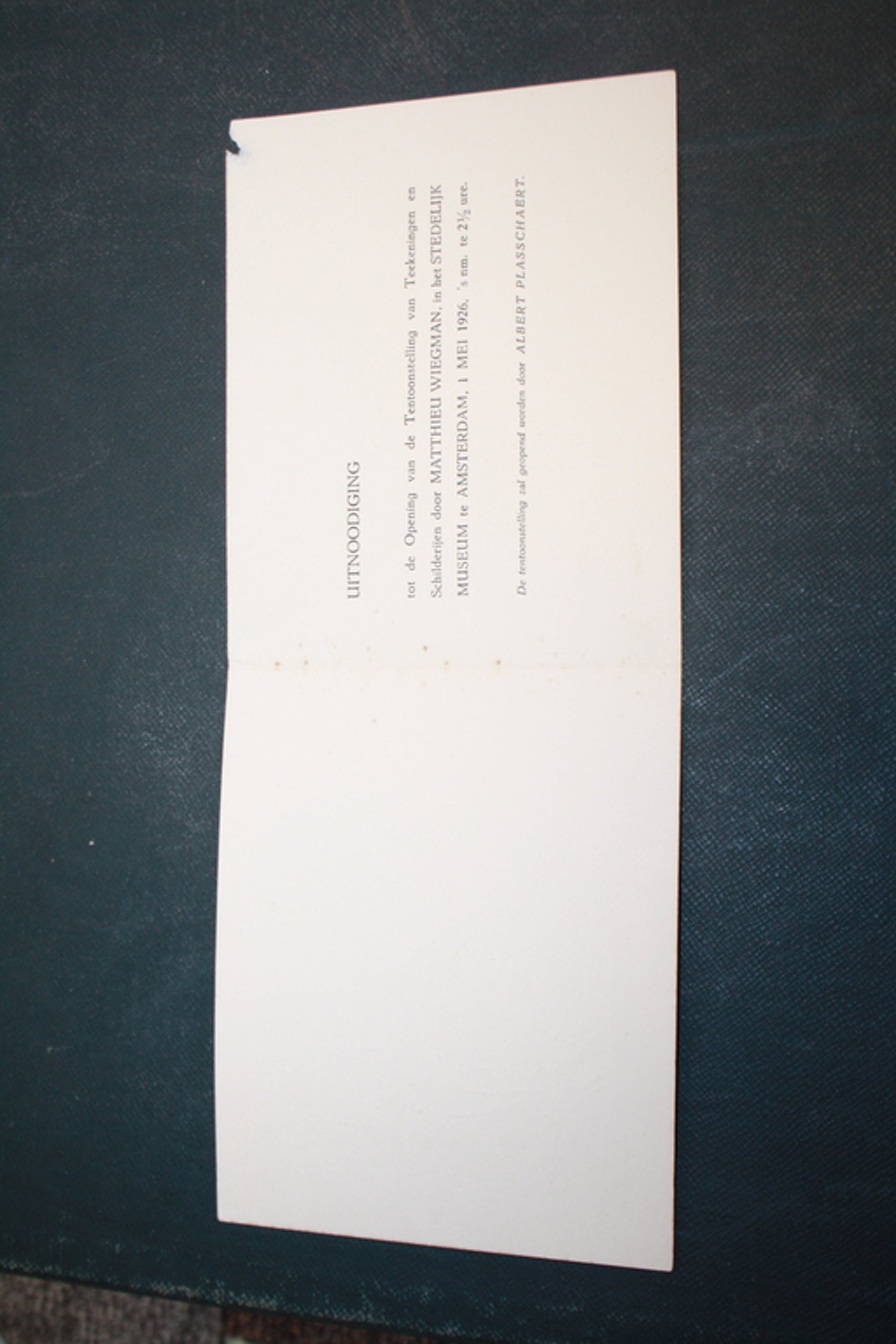 HOUTSNEDE OP EXPO UITNODIGINGSKAART STEDELIJK 1912