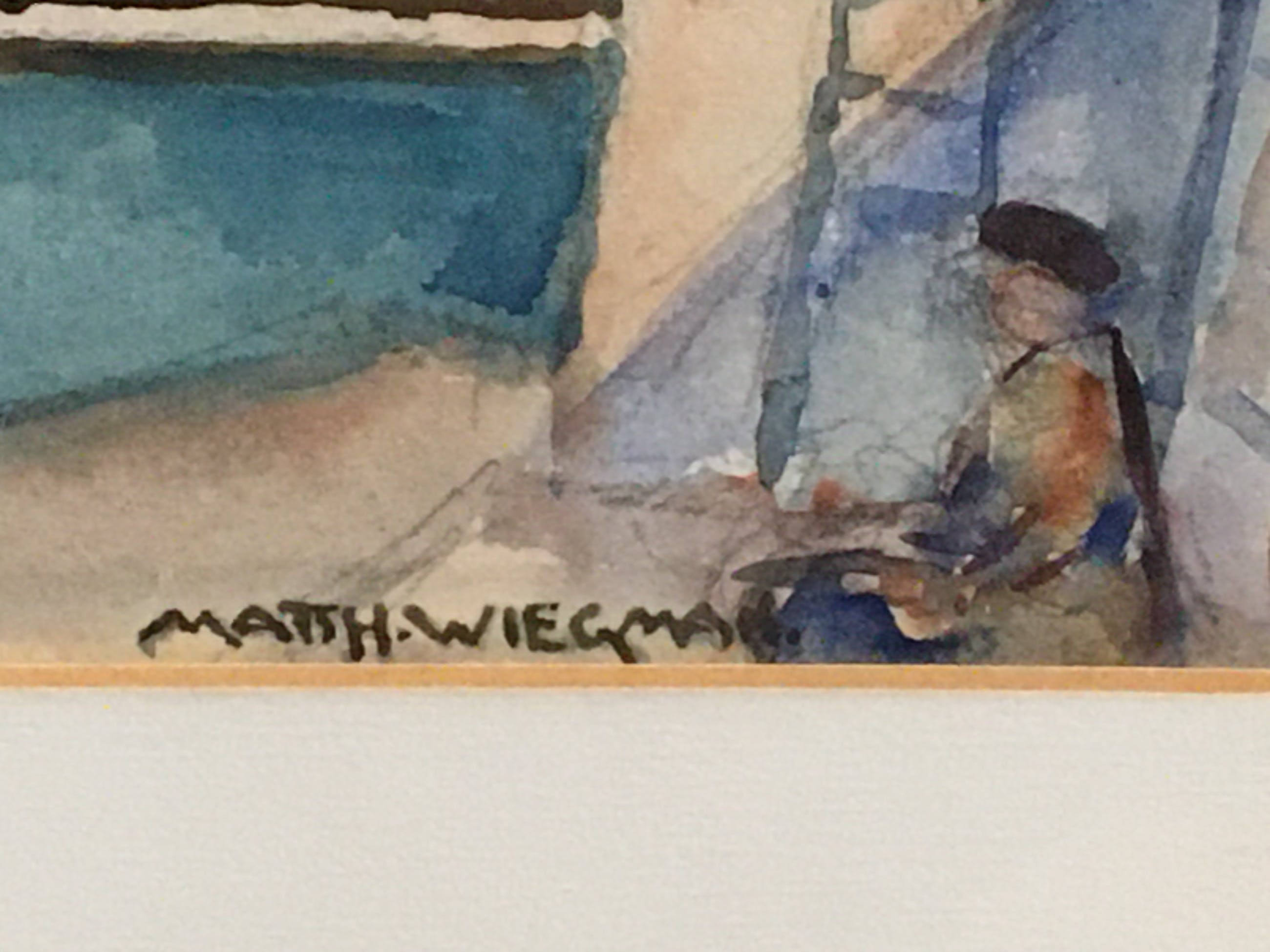 Een gelijksoortige grotere aquarel van Wiegman werd in 2003 bij Sotheby's Amsterdam voor E 1300 verkocht. Zie: https://www.sothebys.com/en/auctions/ecatalogue/lot.227.html/2003/arcade-auction-paintings-am0897