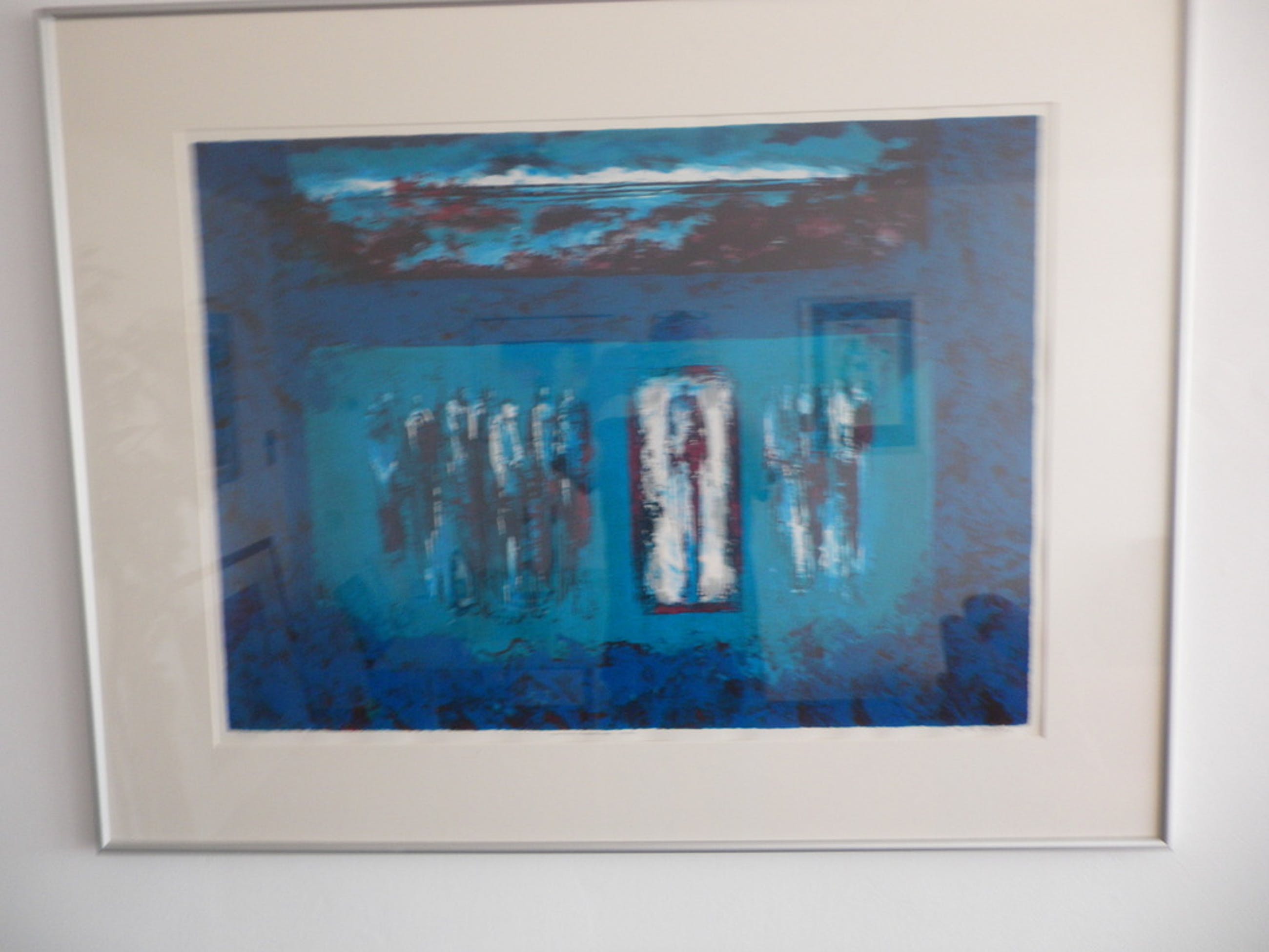 prachtige grote zeefdruk , getiteld ''de ochtendwandeling '' ingelijst maten 110x86 cm , genummerd en gesigneerd het werk is uit 2000.
