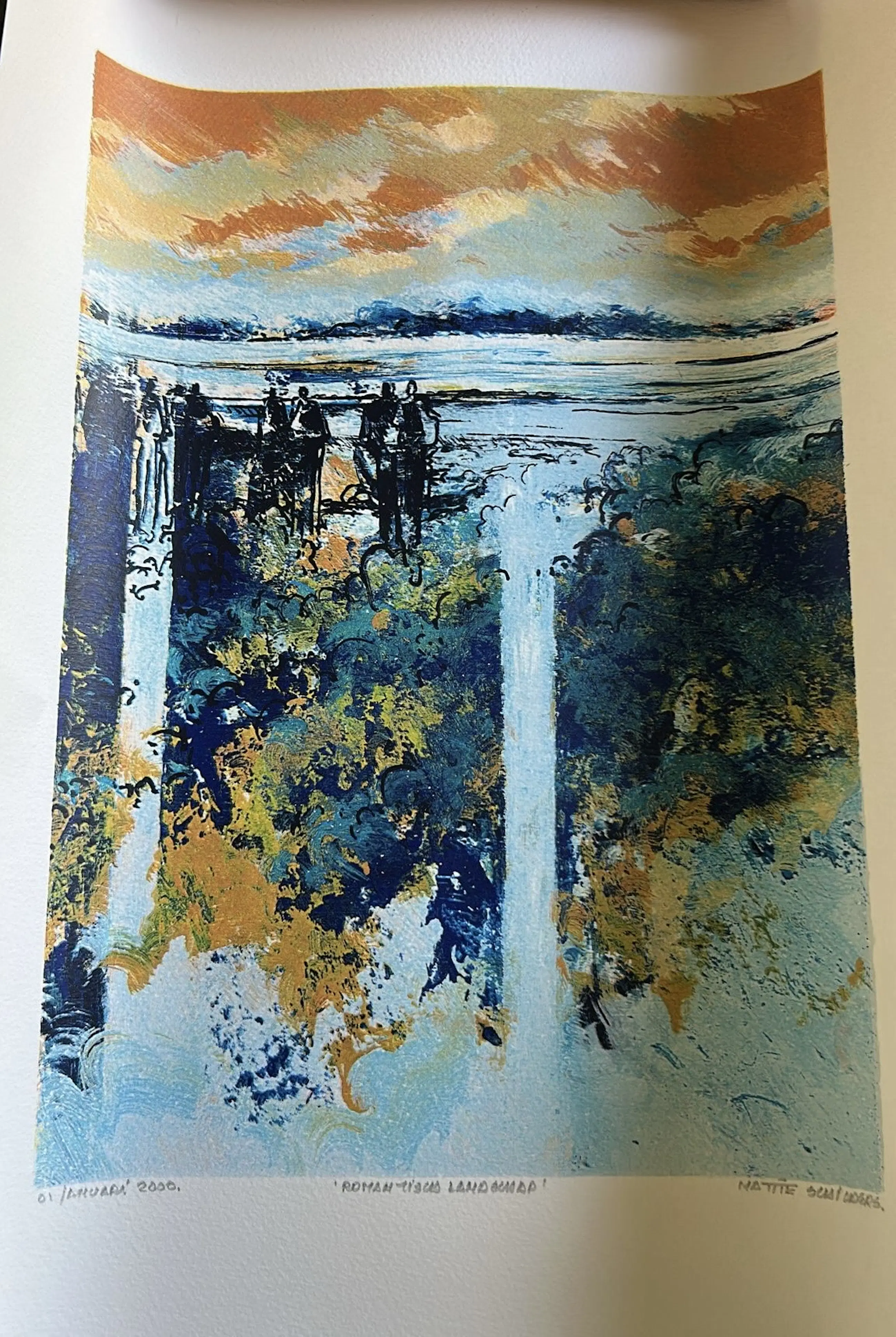 Romantisch landschap van Mattie Schilder. Is nog nooit opgehangen. Afbeelding is 35x25 cm.