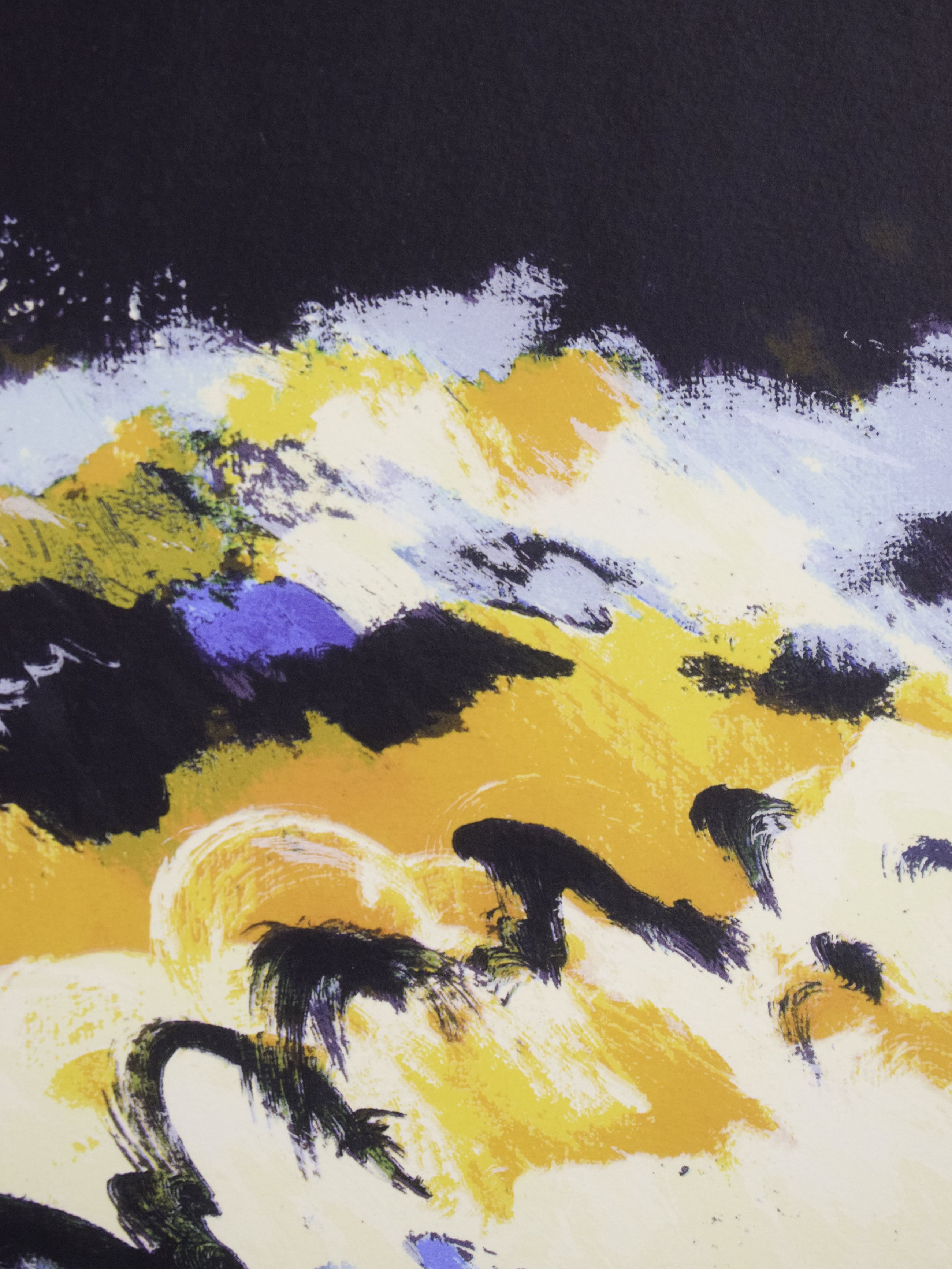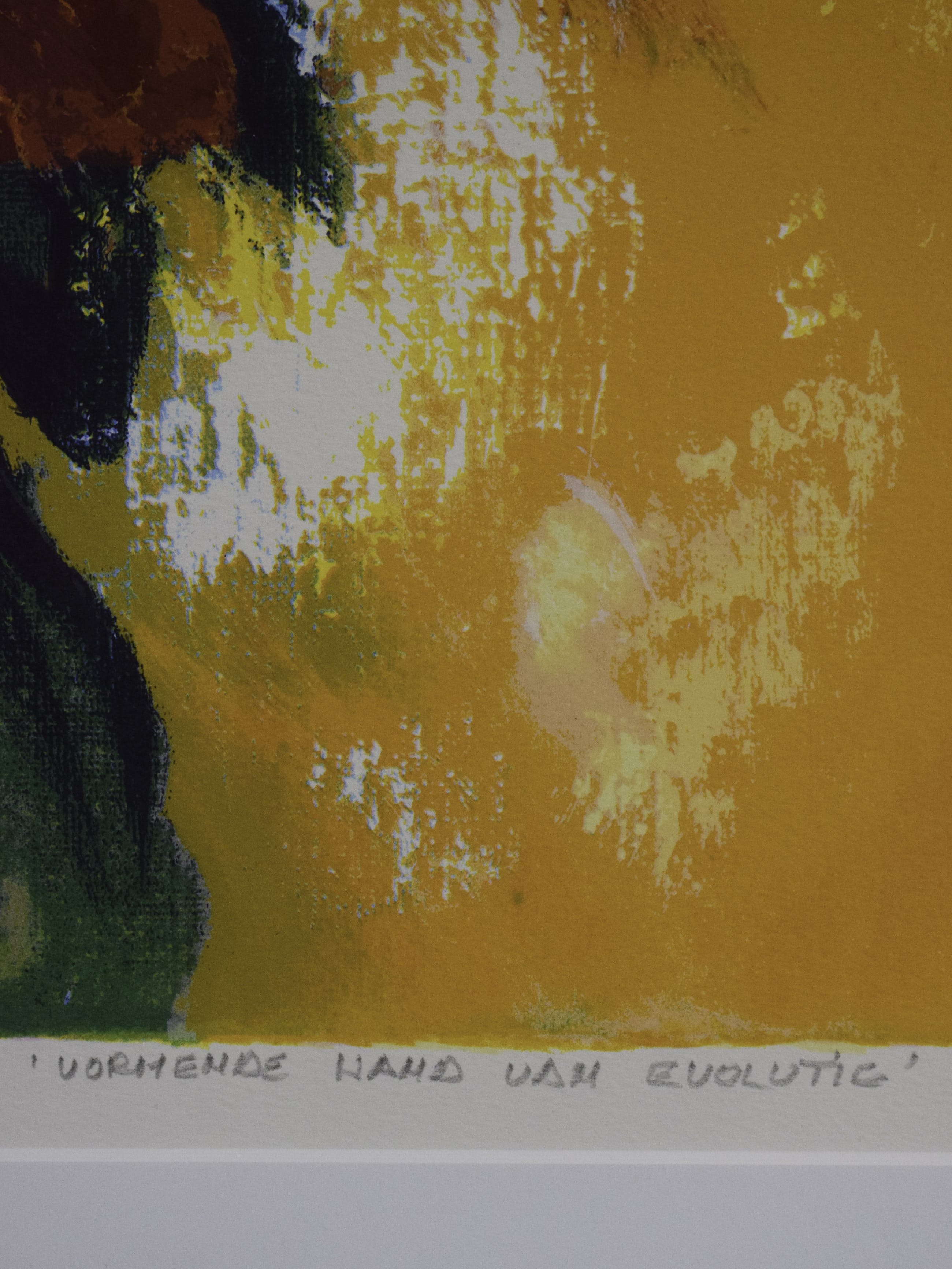 Aangezien het werk uit een bedrijfscollectie komt, kan de lijst wat gebruikssporen overeenkomstig met de leeftijd tonen, deze zijn eenvoudig te verwijderen door de houten lijst licht op te schuren