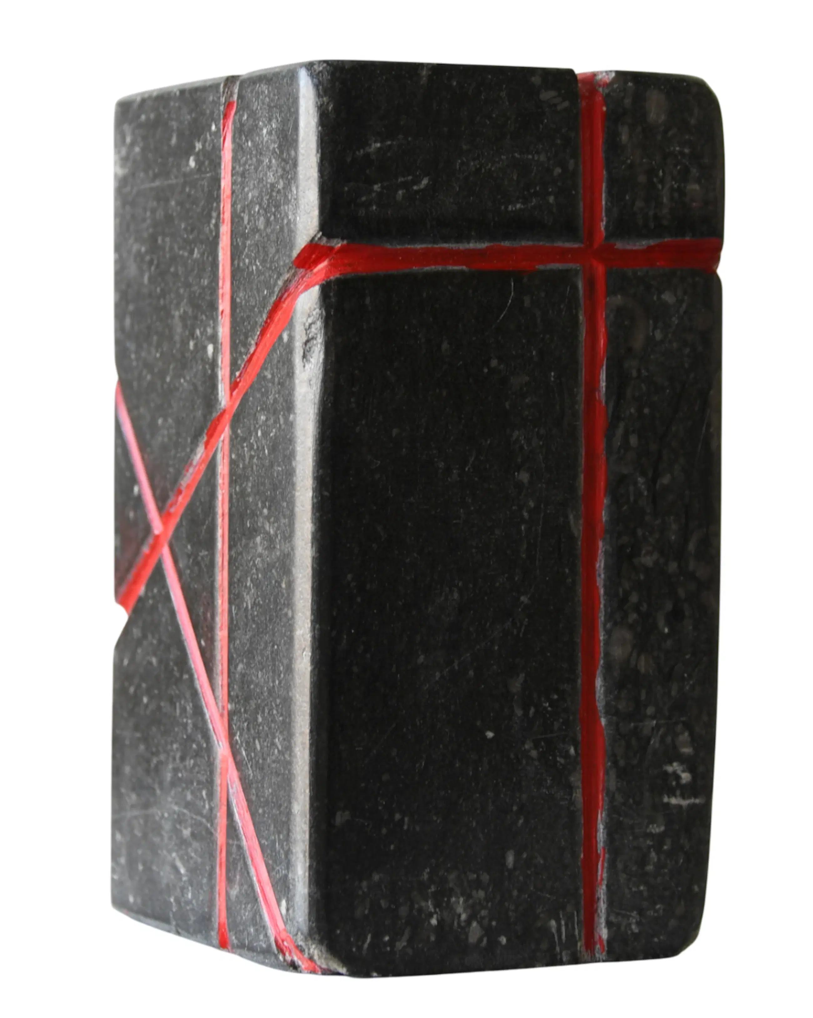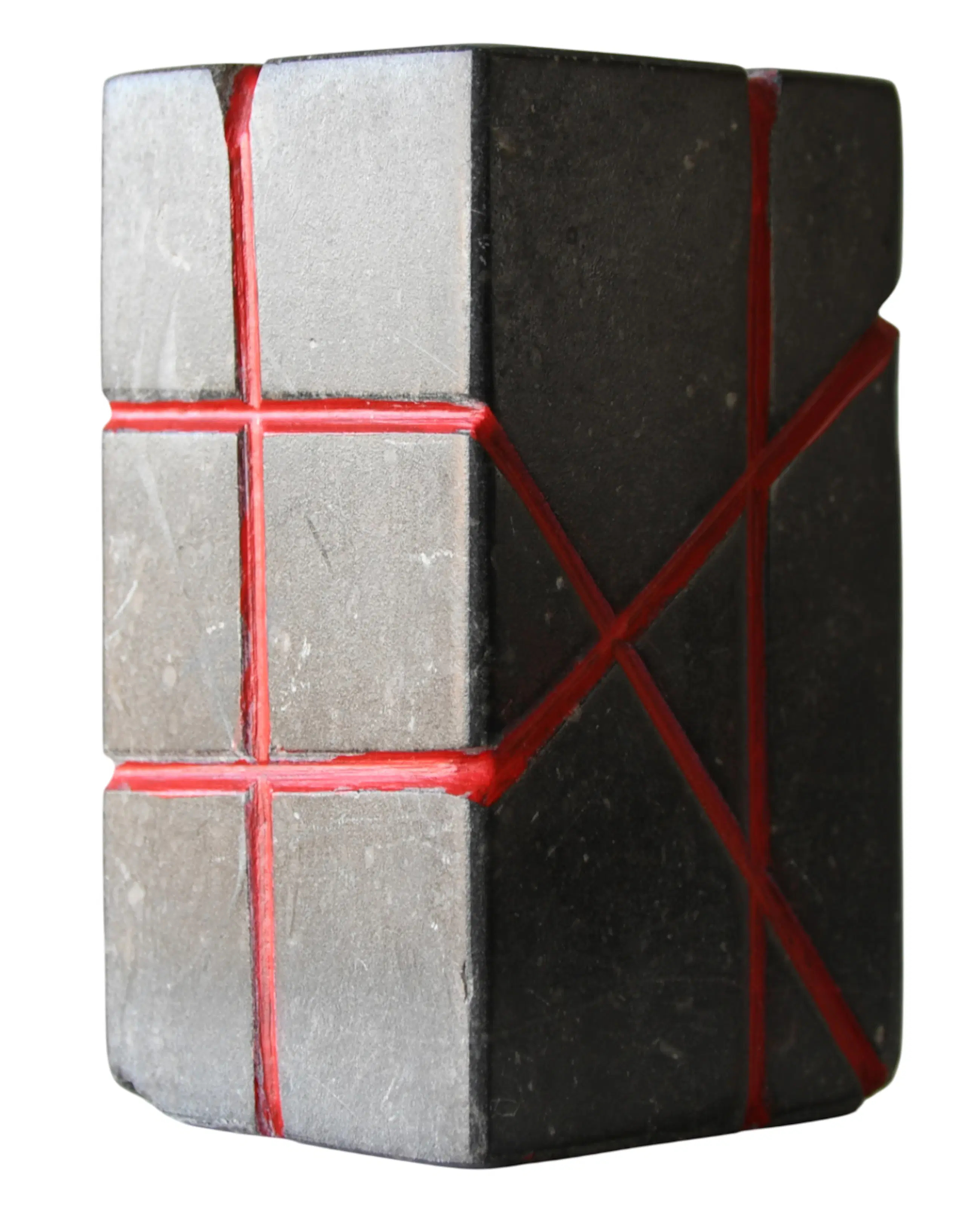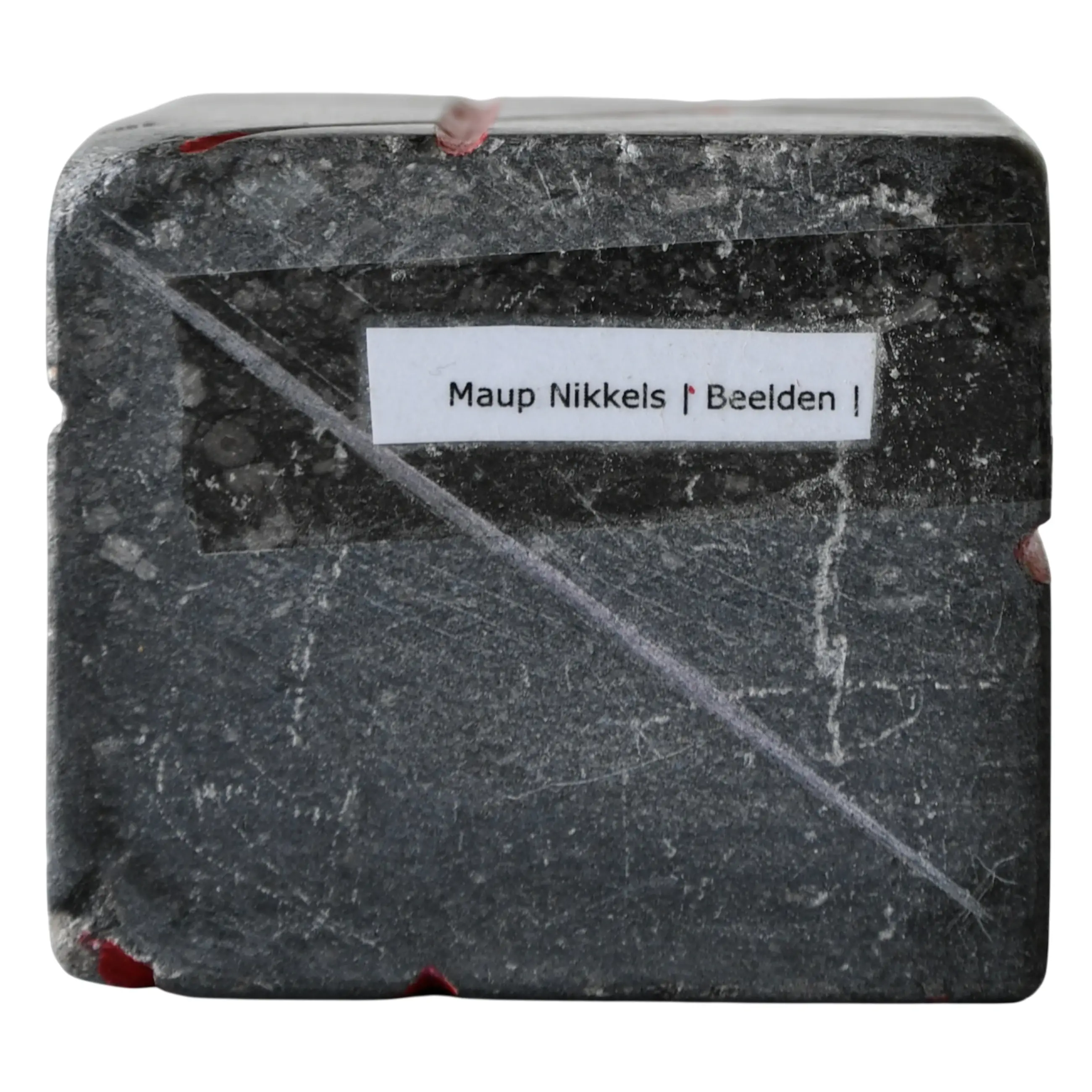 Een prachtig en uniek abstract lijnen structuur op een Belgisch hardstenen beeld van Nederlands beeldhouder en kunstenaar Maup Nikkels uit Amsterdam.