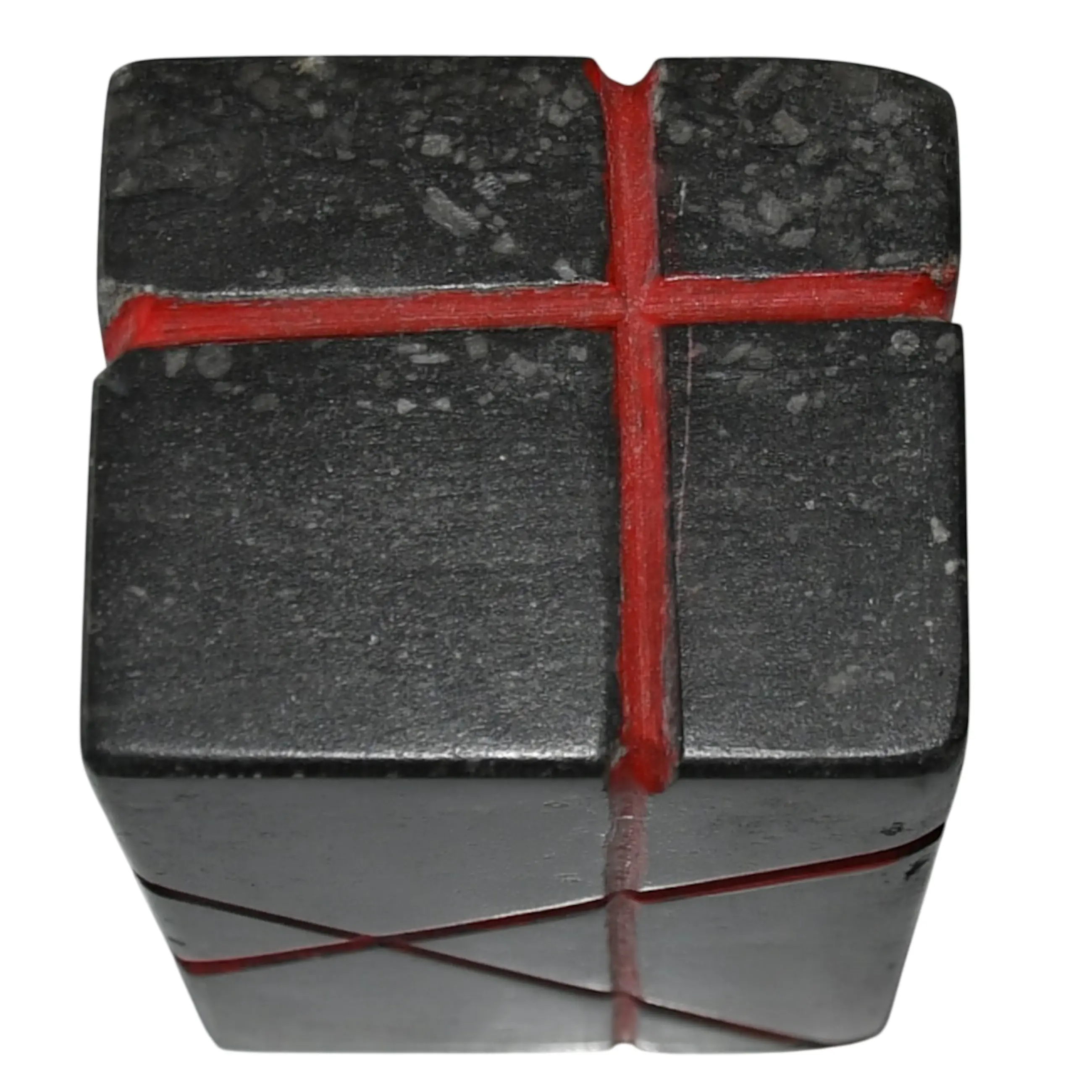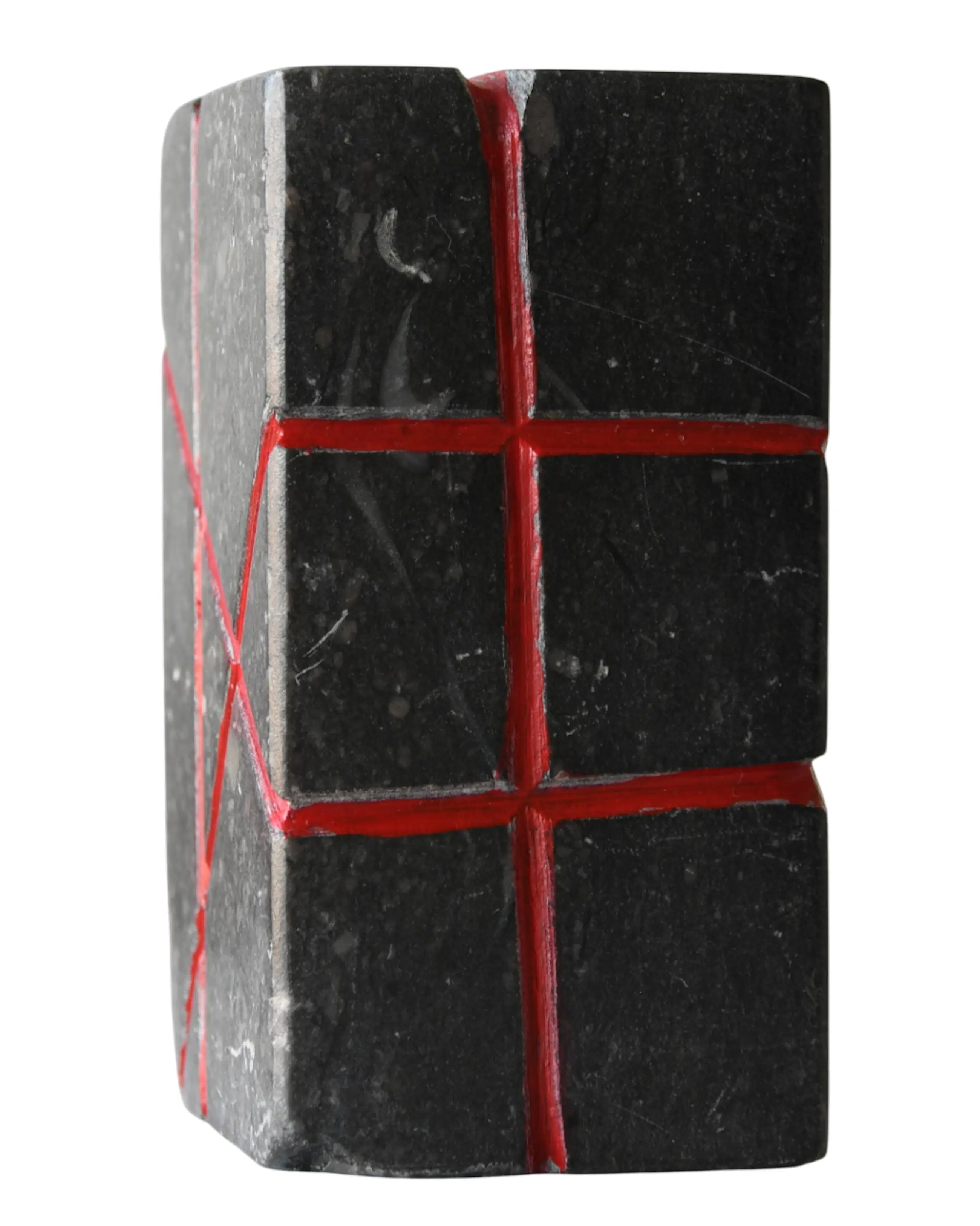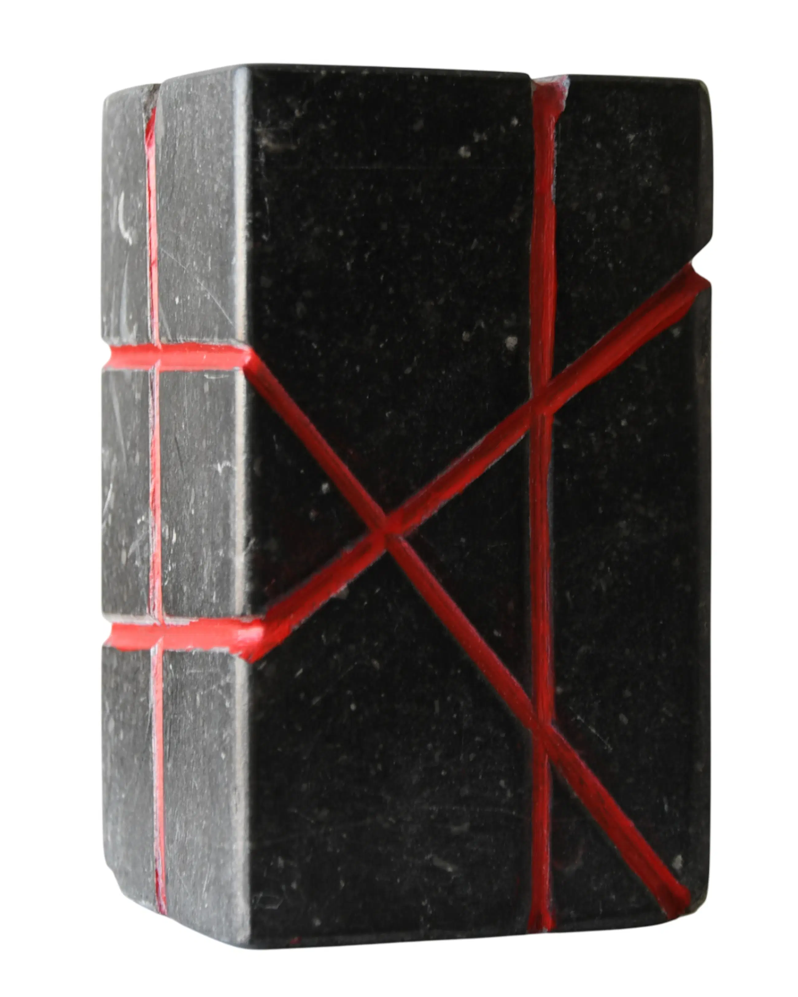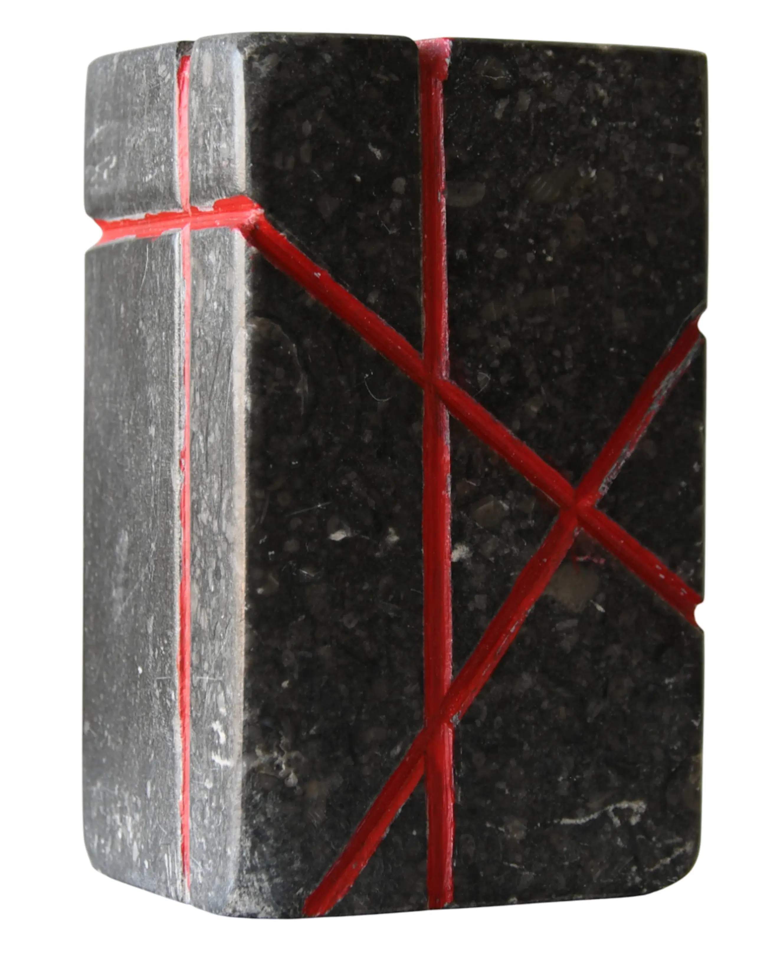 Een prachtig en uniek abstract lijnen structuur op een Belgisch hardstenen beeld van Nederlands beeldhouder en kunstenaar Maup Nikkels uit Amsterdam.