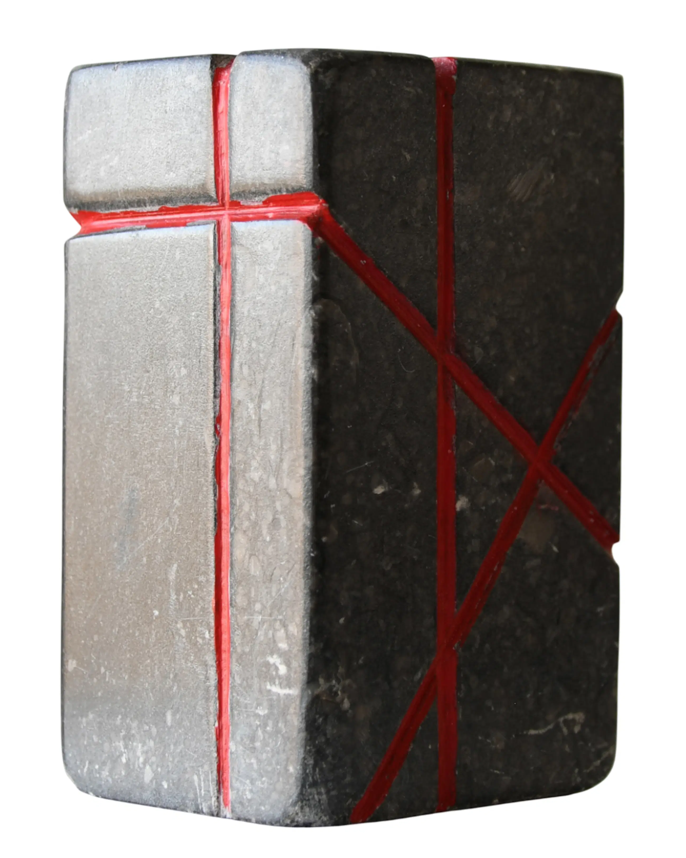 De abstracte en rechthoekige werken kenmerken zich ook door hun heldere en wiskundige vorm en een robuuste afwerking die de gereedschappen, het vakmanschap en de hand van de maker duidelijk laat zien.